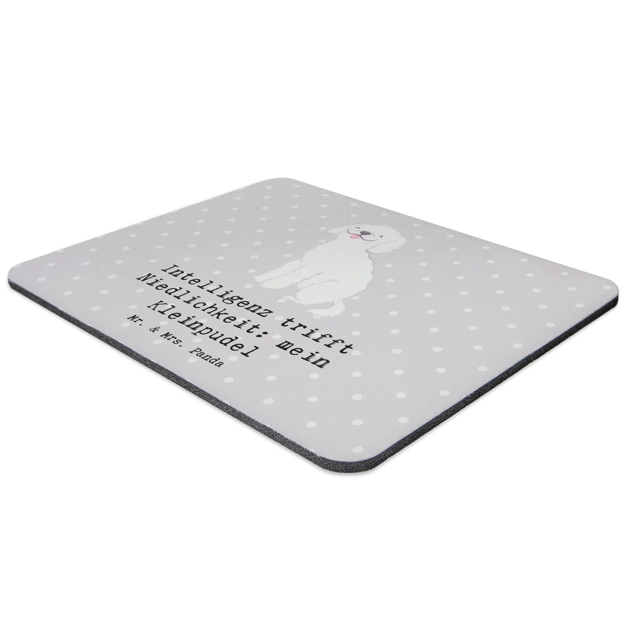Du bist auf der Suche nach einem ganz besonderen Geschenk für einen Hundefan? Dann ist das Mauspad "Kleinpudel" aus der wundervollen Hunderassen-Kollektion von Mr. & Mrs. Panda genau das Richtige! Mit dem charmanten und niedlichen Design bringt es nicht nur Freude in den Arbeitsalltag, sondern ist auch ein echter Eyecatcher auf jedem Schreibtisch. Egal ob im Homeoffice oder im Büro, dieses einzigartige Mauspad wird schnell zum Lieblingszubehör, denn hier trifft "Intelligenz auf Niedlichkeit: mein Kleinpudel"!