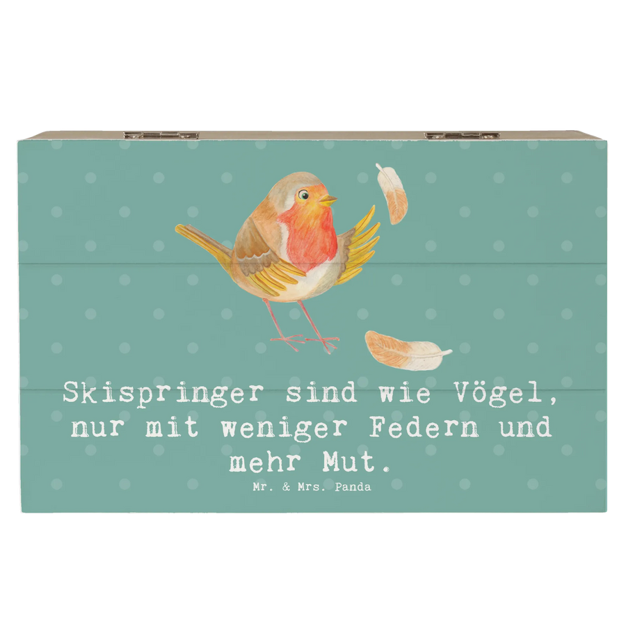 Diese Kiste mit dem liebevollen Motiv "Skispringen" und dem Spruch "Skispringer sind wie Vögel, nur mit weniger Federn und mehr Mut" ist perfekt für alle Sportbegeisterten, die ihren Schatz an Erinnerungen stilvoll aufbewahren möchten.