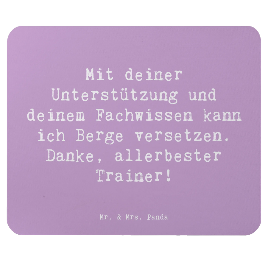 Mit dem einzigartigen Mauspad "Trainer" aus der Danke-Kollektion von Mr. & Mrs. Panda bringst Du nicht nur Farbe an Deinen Arbeitsplatz, sondern zeigst auch Deine Wertschätzung gegenüber den Menschen, die Dich im Alltag unterstützen. Es ist das perfekte Geschenk für Trainer, Lehrer oder Mentoren, die Dir helfen, Deine Ziele zu erreichen. Das Mauspad ziert der inspirierende Spruch: "Mit deiner Unterstützung und deinem Fachwissen kann ich Berge versetzen. Danke, allerbester Trainer!" und ist damit eine liebevolle Geste, die in Erinnerung bleibt.