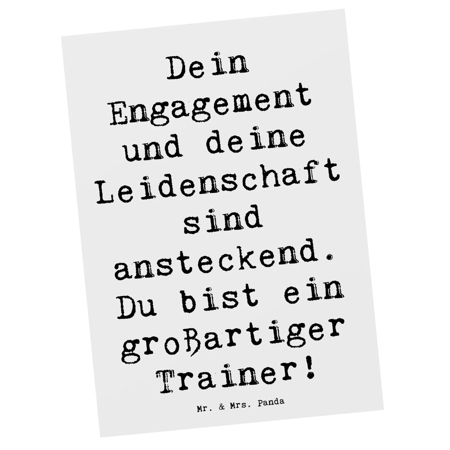 Zeig Deinem Trainer, wie sehr Du ihn schätzt! Mit unserer liebevoll gestalteten Postkarte aus der Mr. & Mrs. Panda "Danke"-Kollektion sagst Du auf elegante und persönliche Weise Danke. Der zentrale Spruch „Dein Engagement und deine Leidenschaft sind ansteckend. Du bist ein großartiger Trainer!“ bringt auf den Punkt, was viele im Herzen fühlen.