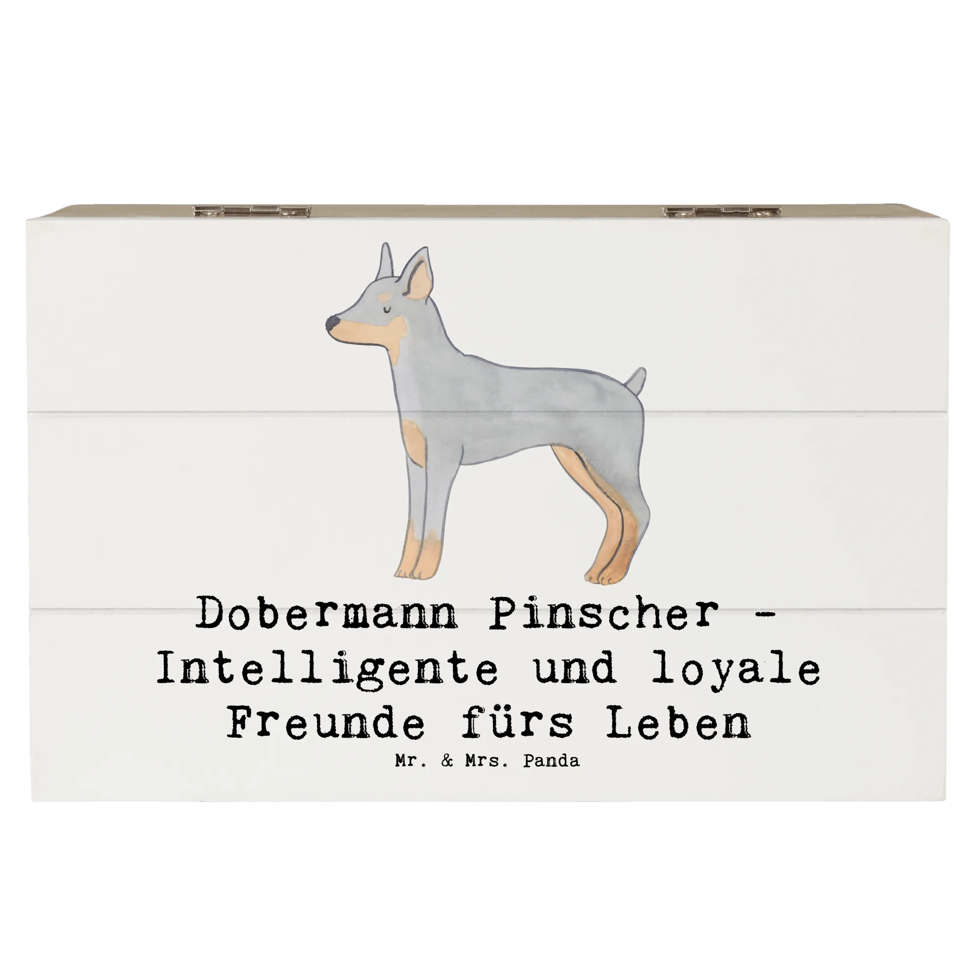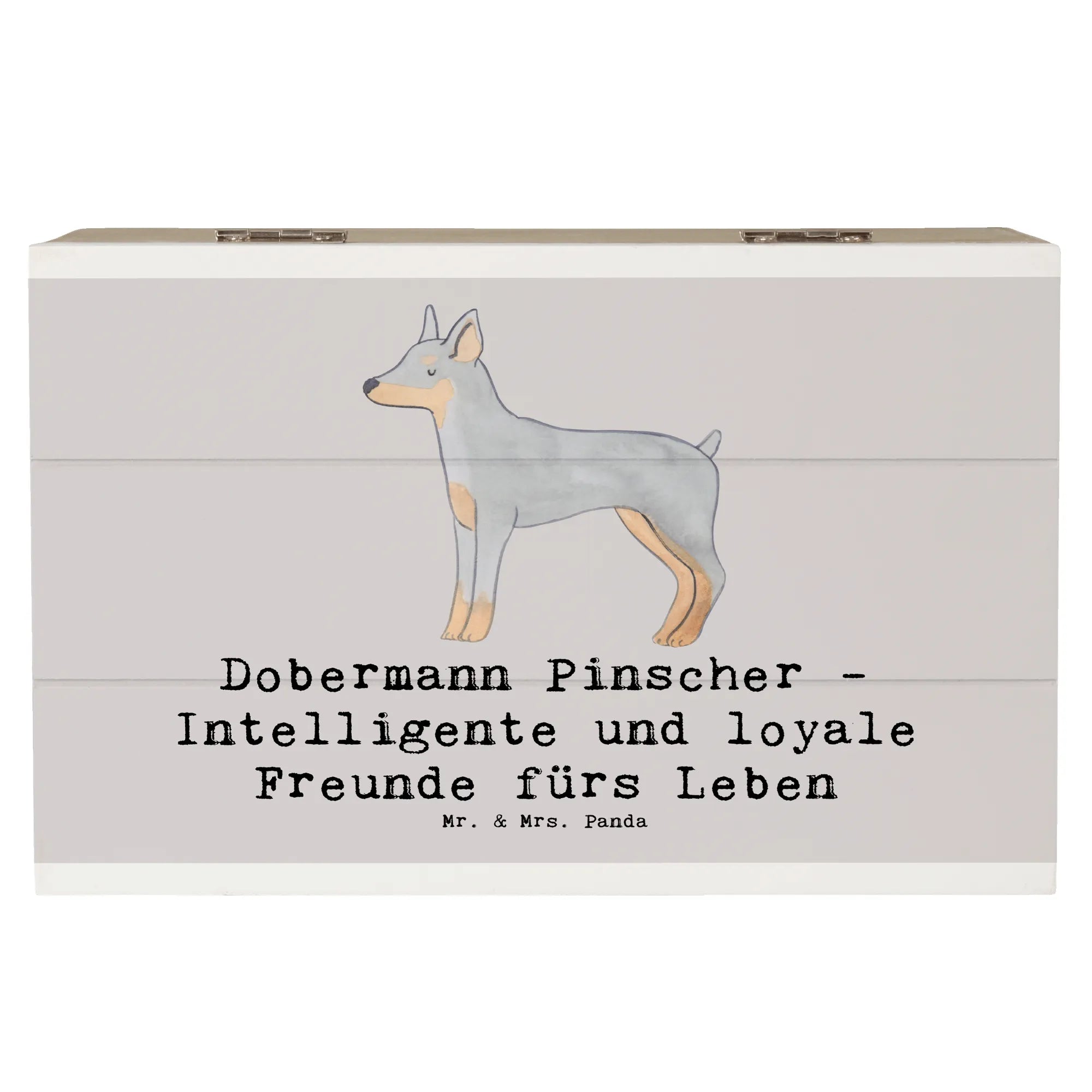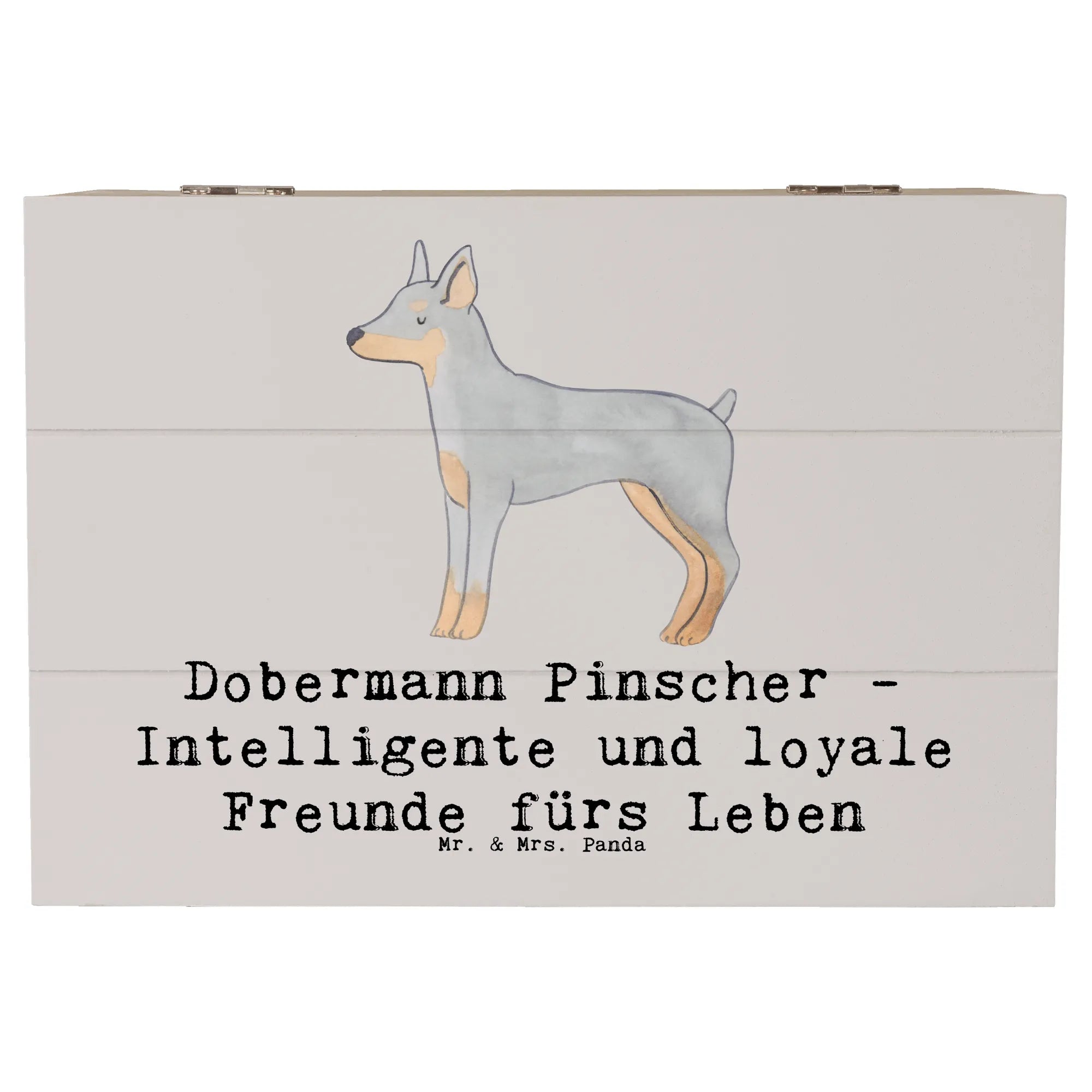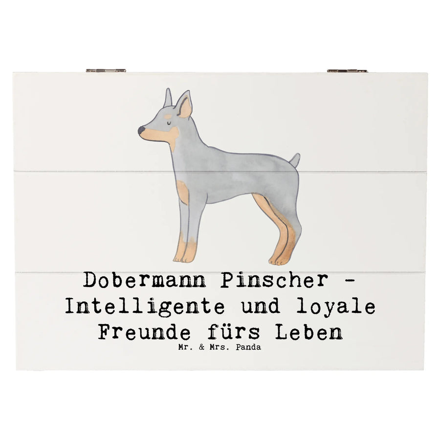 Die wunderschöne Holzkiste mit dem Motiv des Dobermann Pinschers von Mr. & Mrs. Panda ist das ideale Geschenk für Hundefreunde und Tierliebhaber.