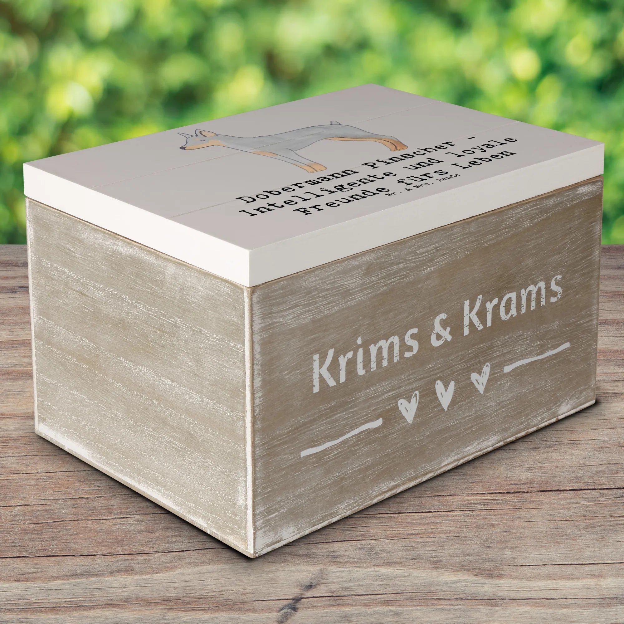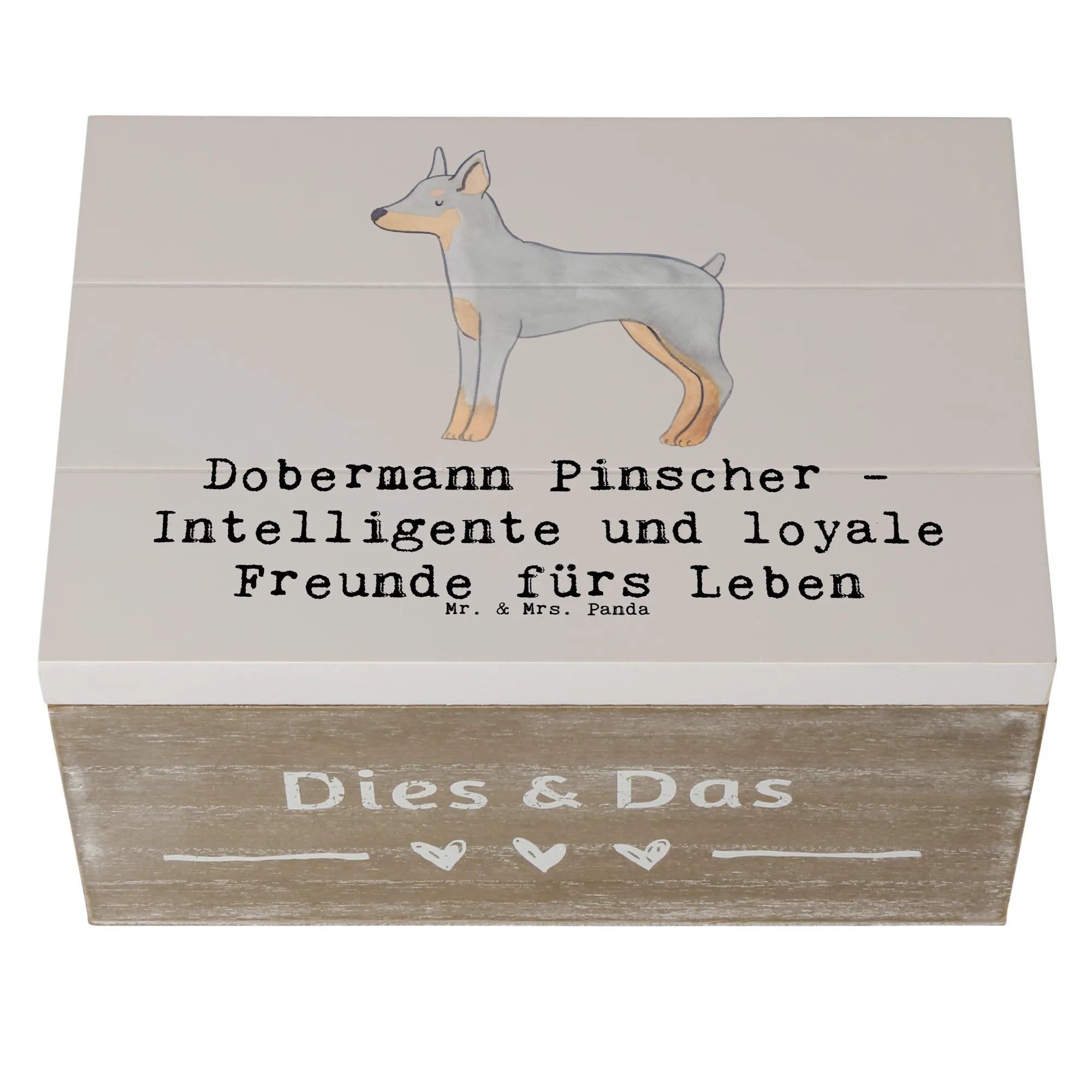 Die wunderschöne Holzkiste von Mr. & Mrs. Panda ist das perfekte Geschenk für alle Hundeliebhaber, insbesondere für Fans der edlen Hunderasse Dobermann Pinscher! 🐾