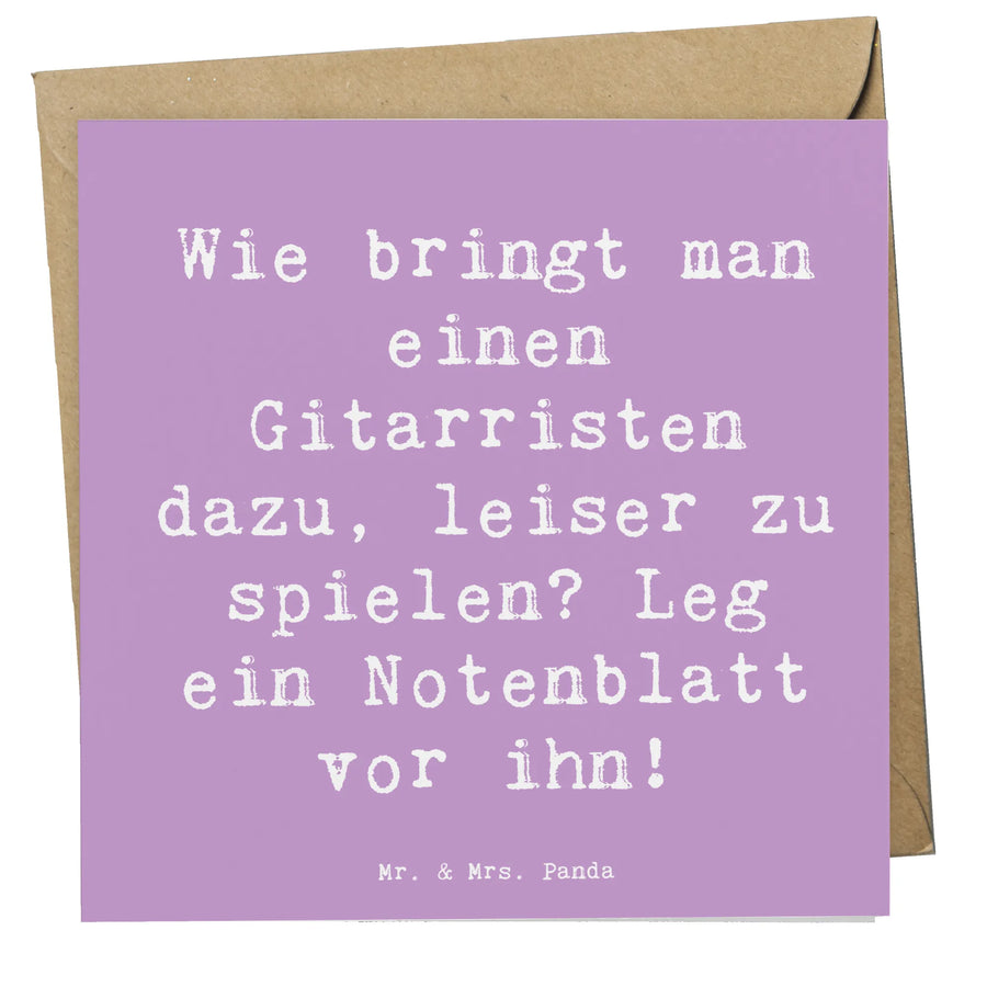 Das farbenfrohe Lavendeltraum-Design und der Spruch „Wie bringt man einen Gitarristen dazu, leiser zu spielen? Leg ein Notenblatt vor ihn!“ sorgen für ein Schmunzeln und machen die Karte zu einem wahren Hingucker. Die Karte hat die perfekte Größe von 140 mm x 140 mm und wird mit einem edlen Umschlag geliefert, der das Gesamtbild abrundet.