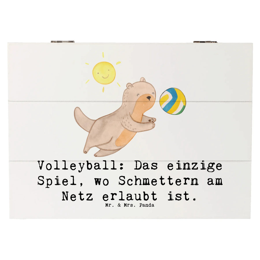Die wunderschöne Holzkiste von Mr. & Mrs. Panda ist das perfekte Geschenk für jeden Volleyball-Liebhaber! Mit ihrem eleganten Design und dem einzigartigen Slogan 'Volleyball: Das einzige Spiel, wo Schmettern am Netz erlaubt ist.' ist sie nicht nur eine praktische Aufbewahrungsbox, sondern auch ein kleines Kunstwerk für jeden Sportbegeisterten.