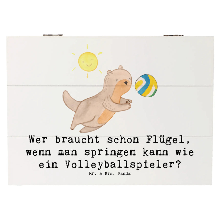 Die Holzkiste Volleyball von Mr. & Mrs. Panda ist das perfekte Geschenk für alle Sportbegeisterten, die den Volleyballspiel lieben! Mit einem mit viel Liebe gestalteten Motiv und dem inspirierenden Spruch "Wer braucht schon Flügel, wenn man springen kann wie ein Volleyballspieler?" bietet diese robuste Holzkiste den idealen Platz für besondere Erinnerungen.