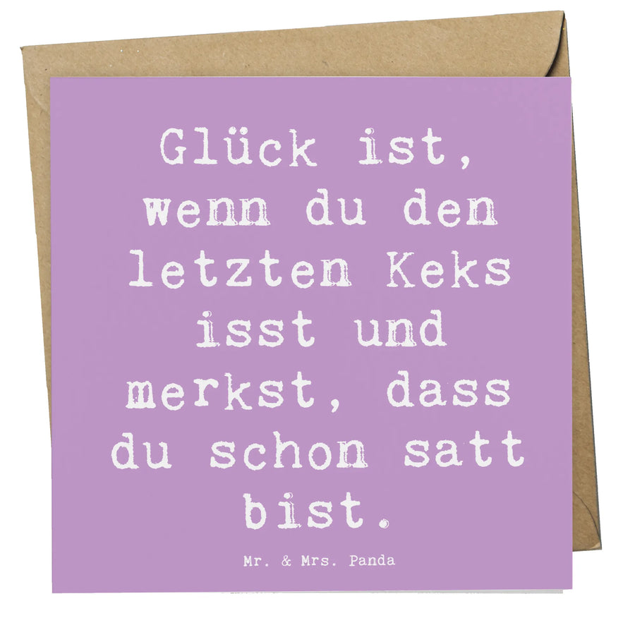 Mit ihrem liebevollen Design und dem inspirierenden Spruch "Glück ist, wenn du den letzten Keks isst und merkst, dass du schon satt bist", ist sie eine wunderbare Art, um deine herzlichsten Glückwünsche auszudrücken.
