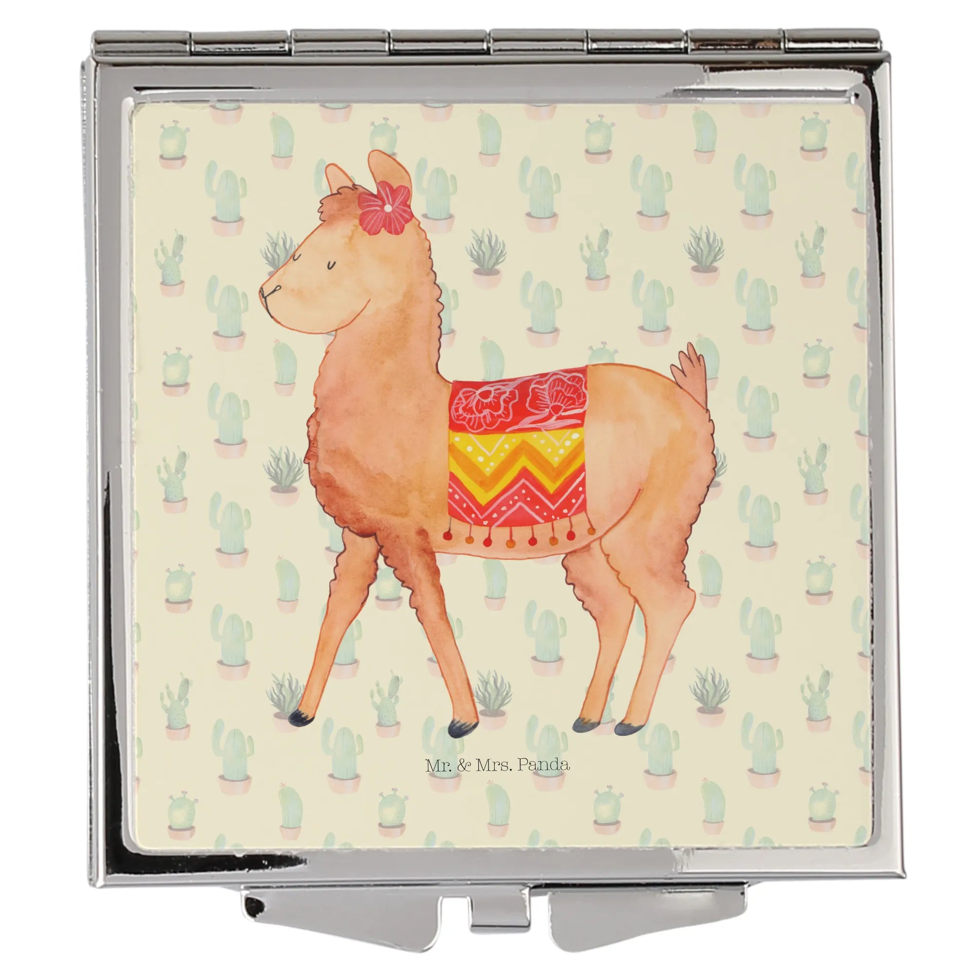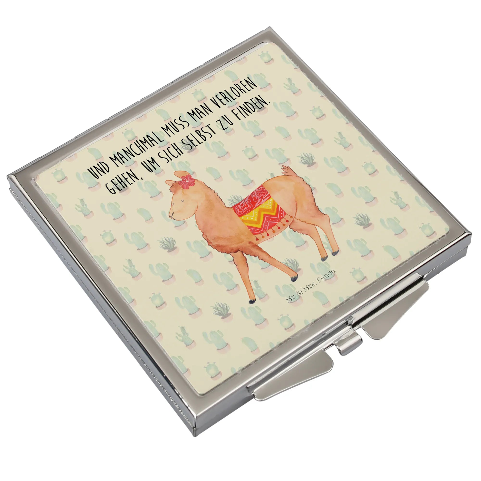 Kwadratowe lusterko do torebki alpaka Dumny - z napisem - Zielony kaktus