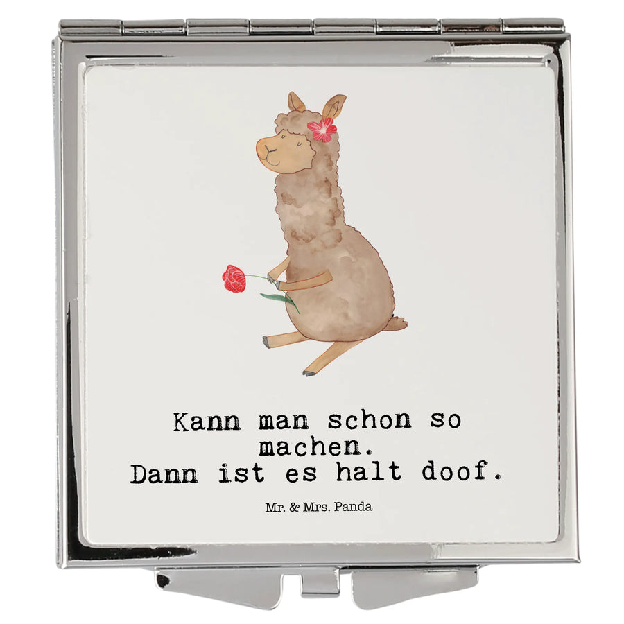 Kwadratowe lusterko do torebki alpaka kwiat - z napisem - Biały