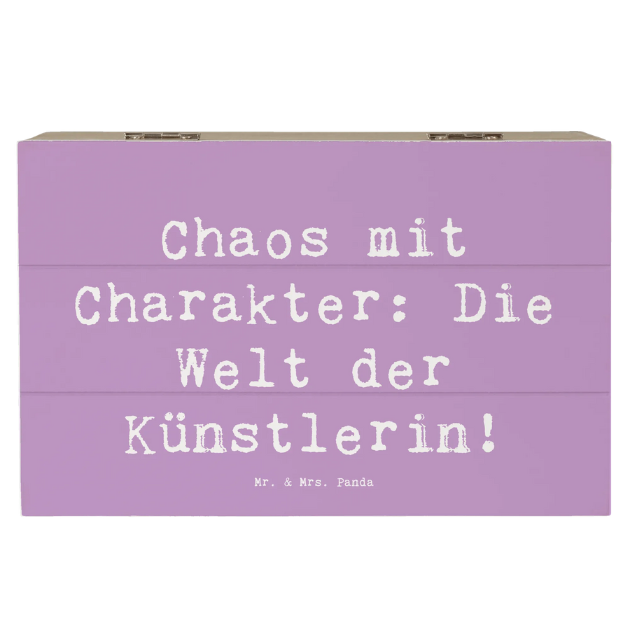Die Holzkiste 'Künstlerin' von Mr. & Mrs. Panda ist der perfekte Begleiter für alle kreativen Köpfe und Kunstliebhaber. Mit ihrem liebevollen Design und dem inspirierenden Spruch 'Chaos mit Charakter: Die Welt der Künstlerin!' bringt diese Kiste nicht nur Ordnung in dein kreatives Chaos, sondern ist auch ein wunderschöner Hingucker in deinem Atelier oder Zuhause.