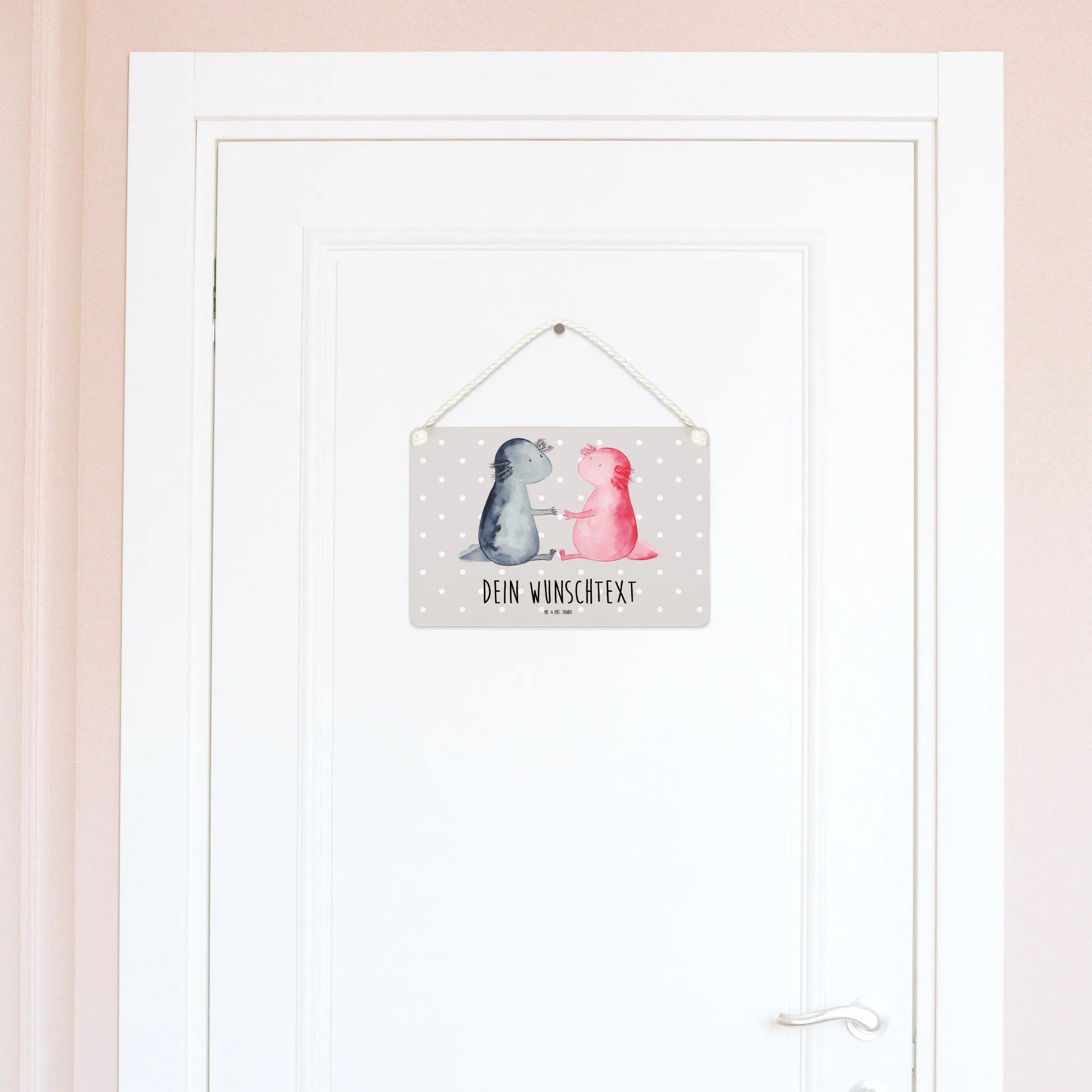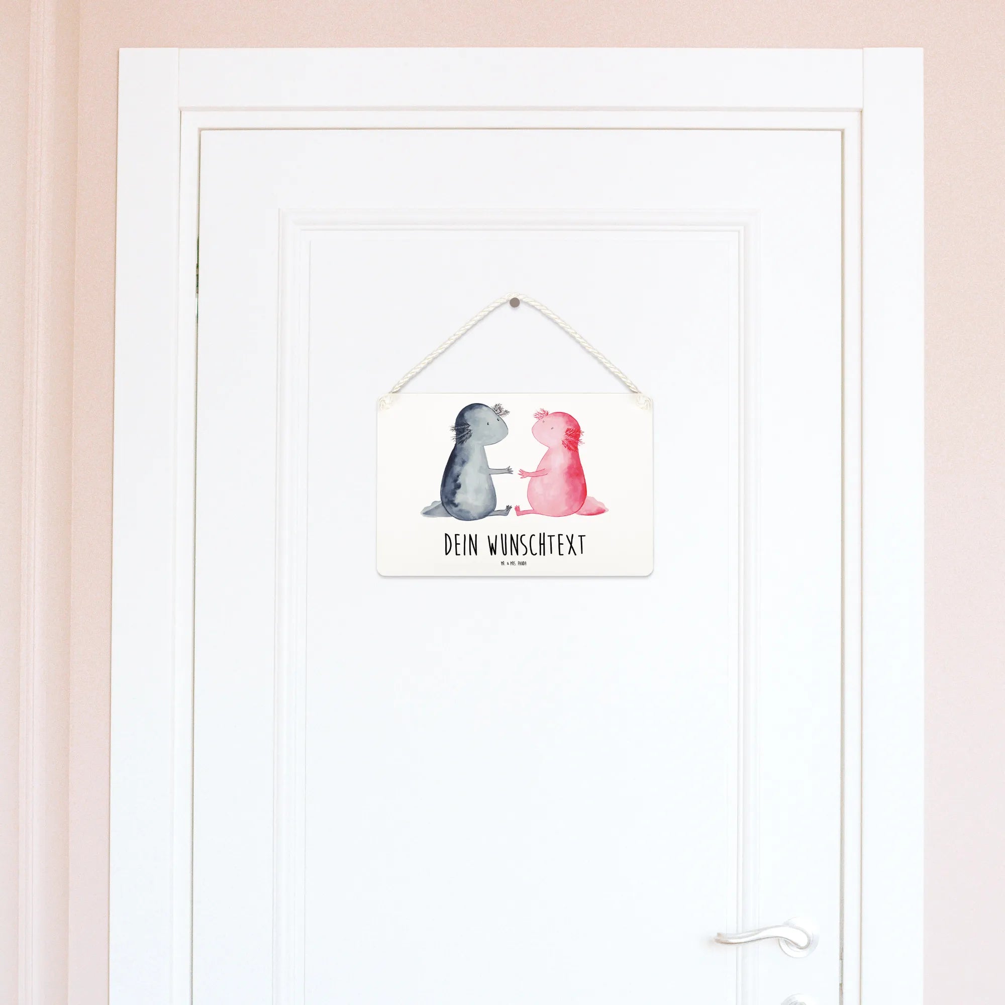 Spersonalizowany szyld dekoracyjny Axolotl miłość - DIN A6 - biały