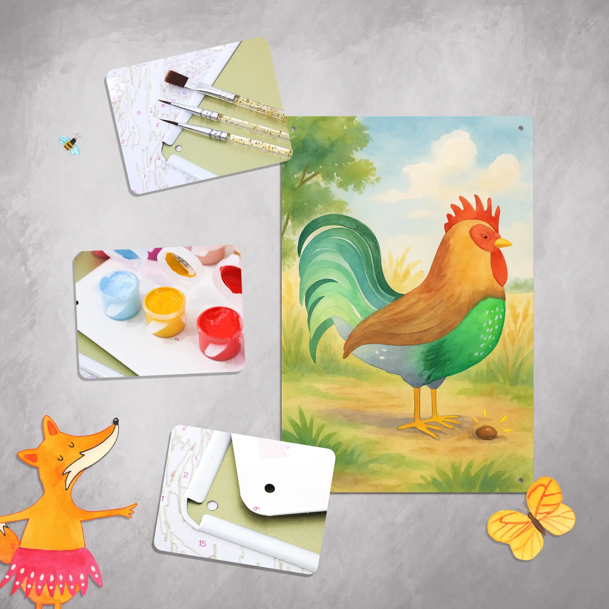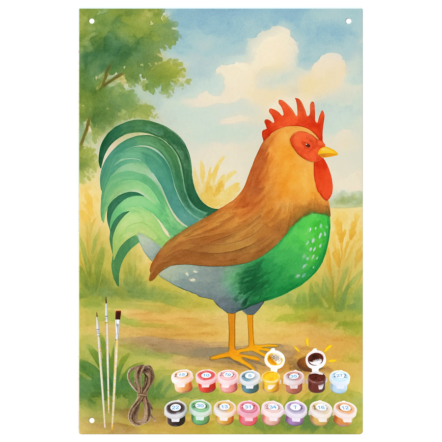 Metalowy szyld do malowania po numerach kogut ziarno Design