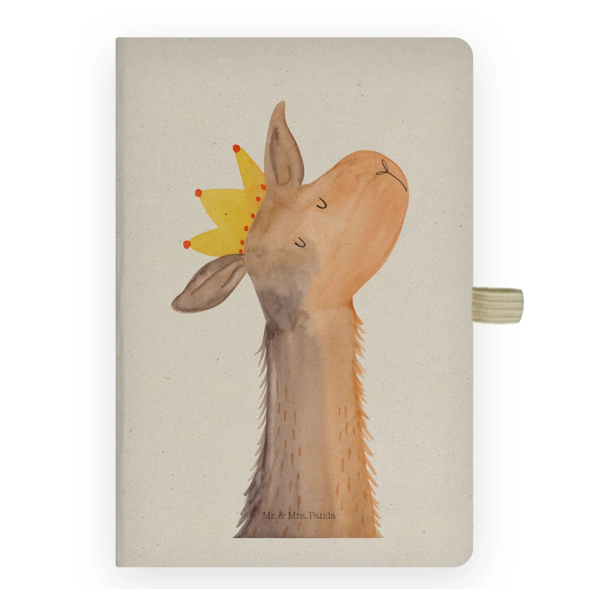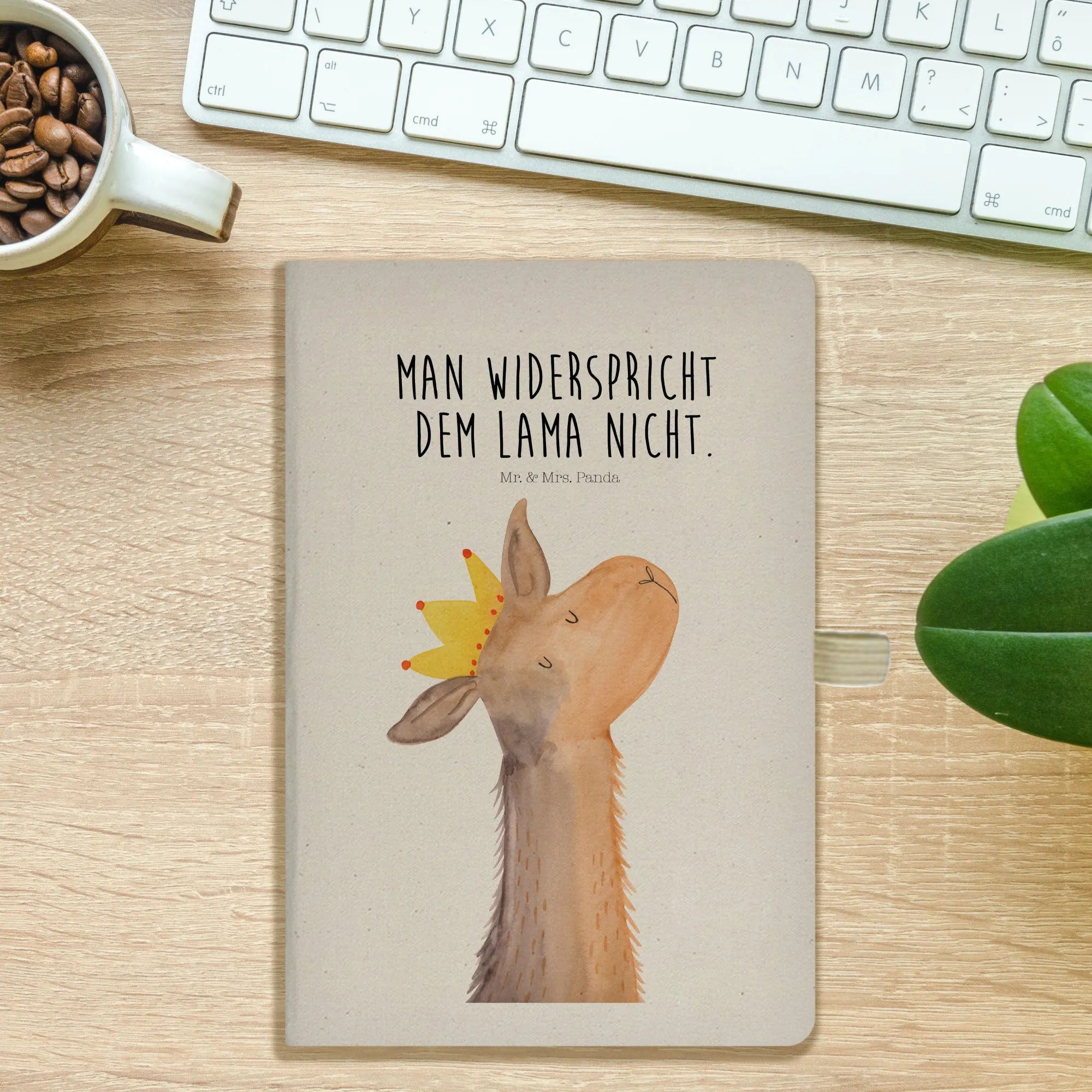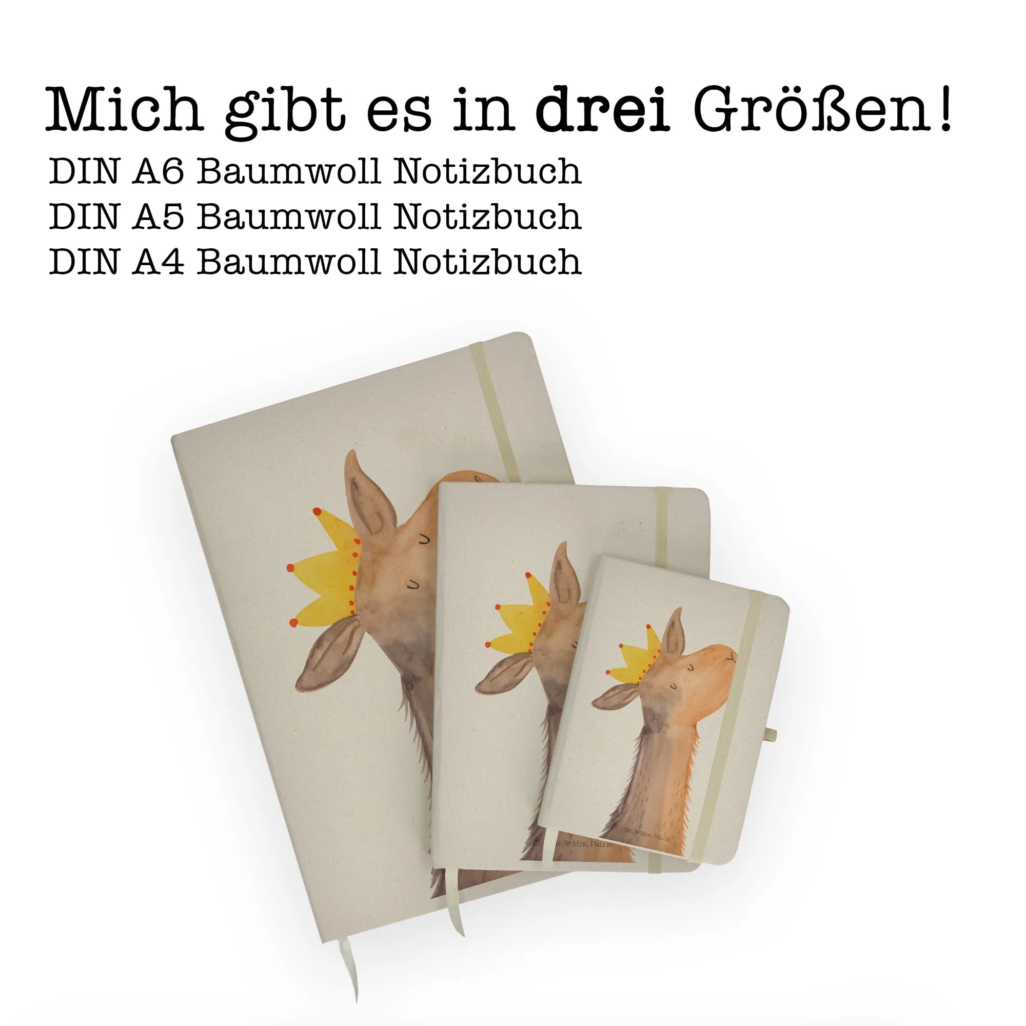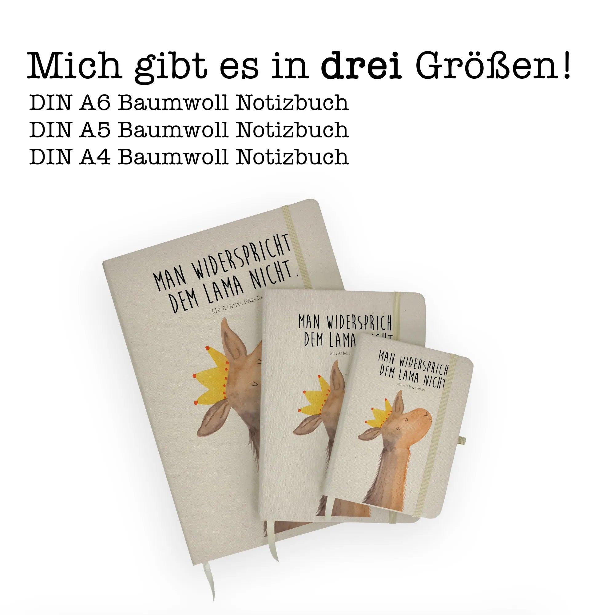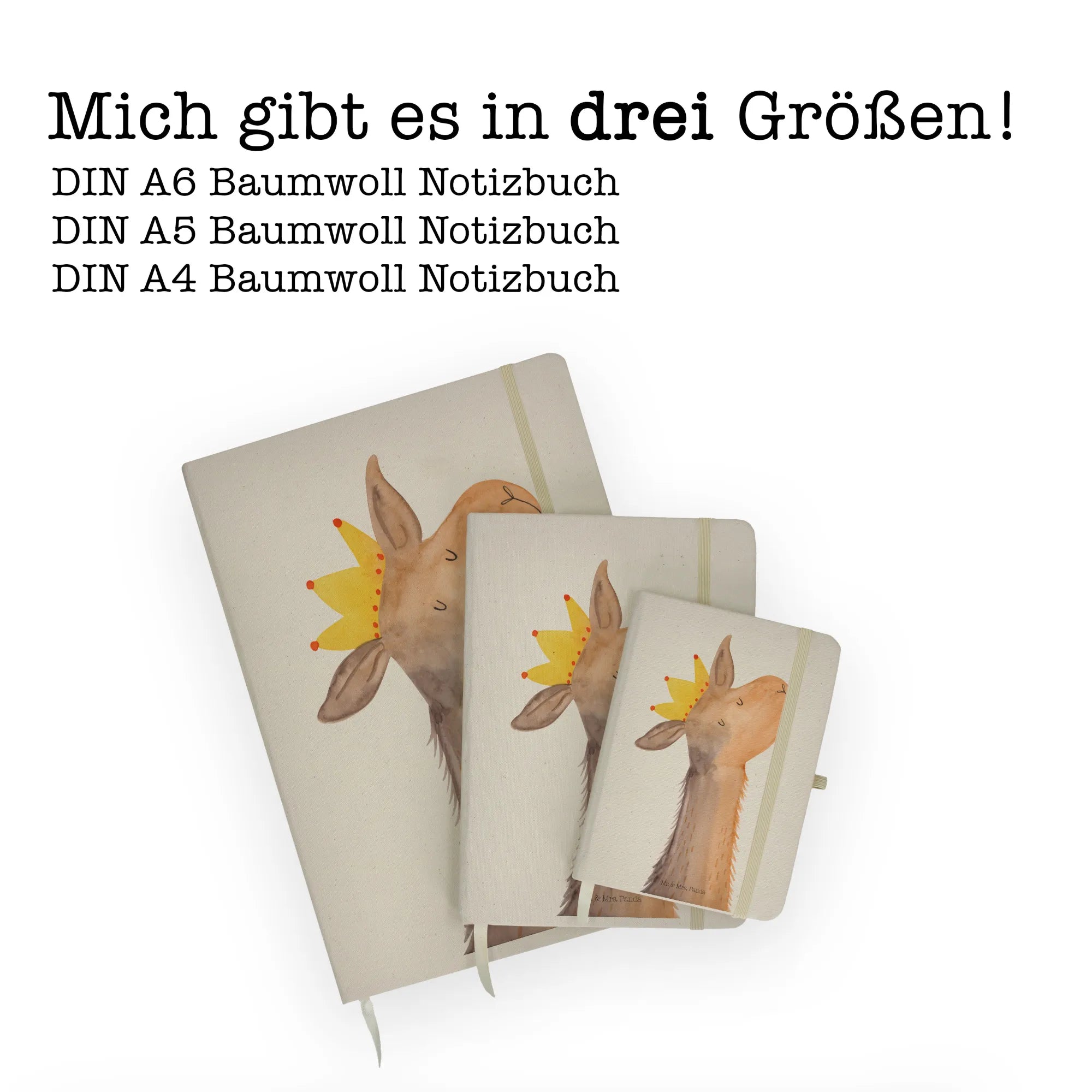 Suchst Du ein stilvolles und nachhaltiges Notizbuch? Unser DIN A4 Baumwoll Notizbuch „Lamakopf König“ aus der Lama - Kollektion von Mr. & Mrs. Panda vereint handgezeichneten Charme mit praktischen Details. Das niedliche Lama mit Krönchen wirkt verspielt und königlich zugleich und begleitet Dich beim Schreiben, Skizzieren und Planen.