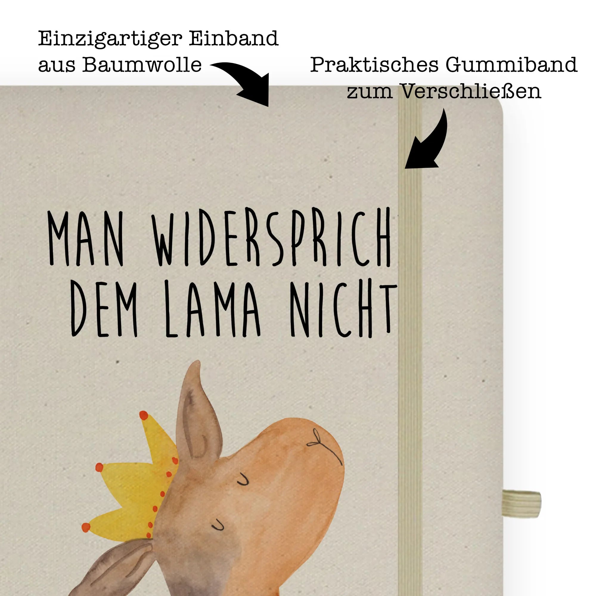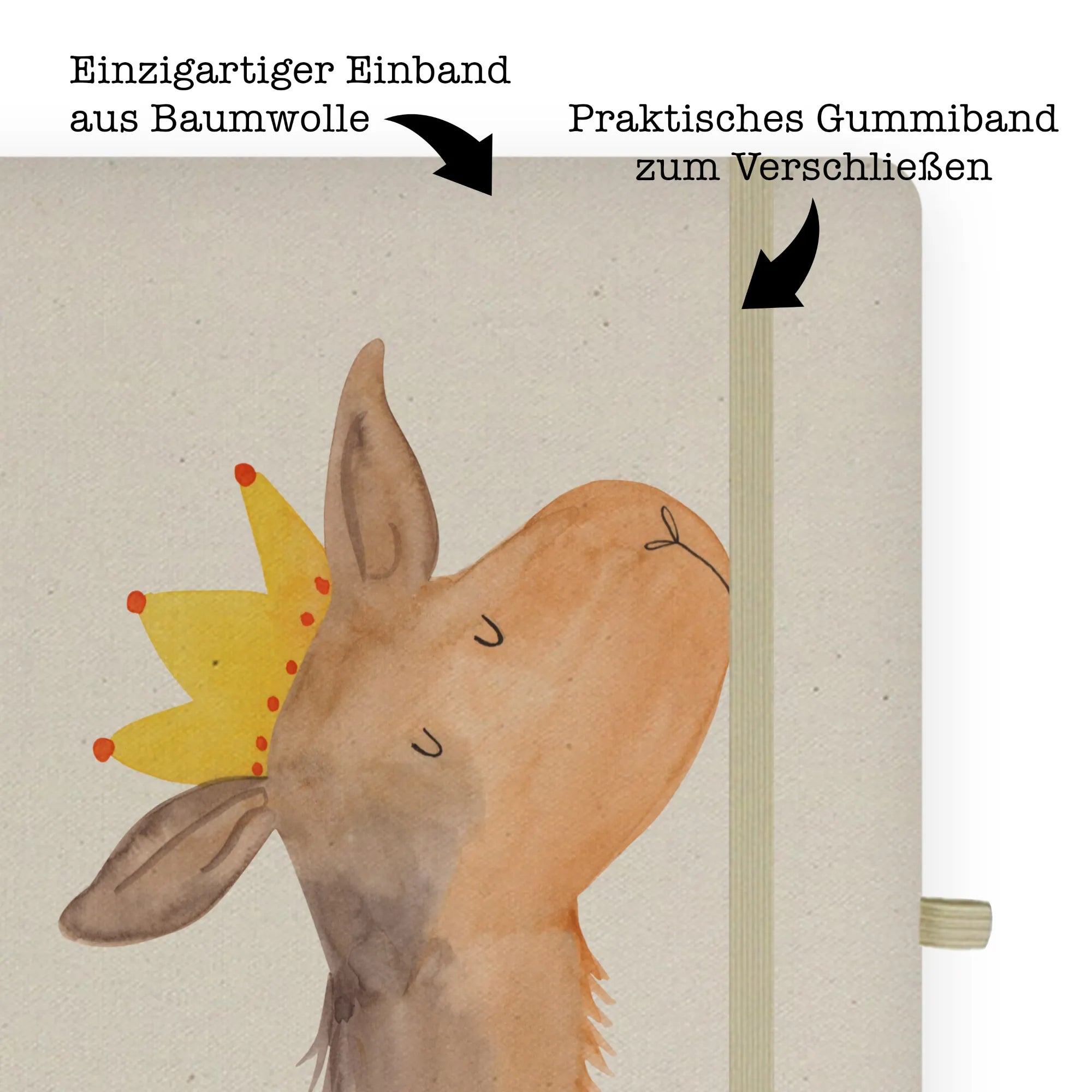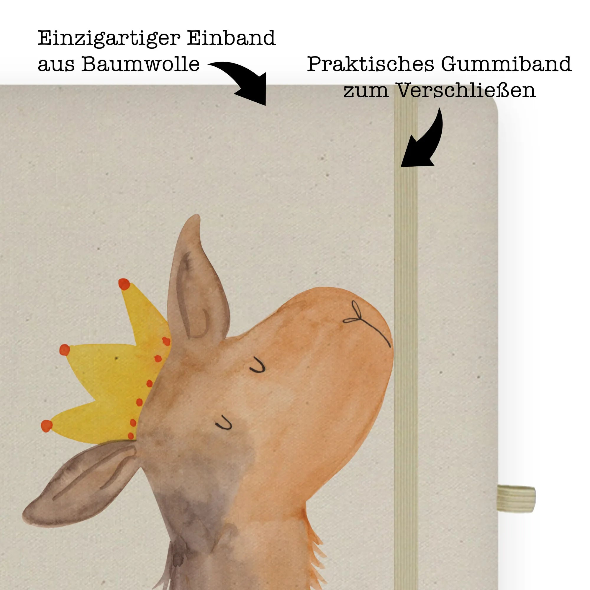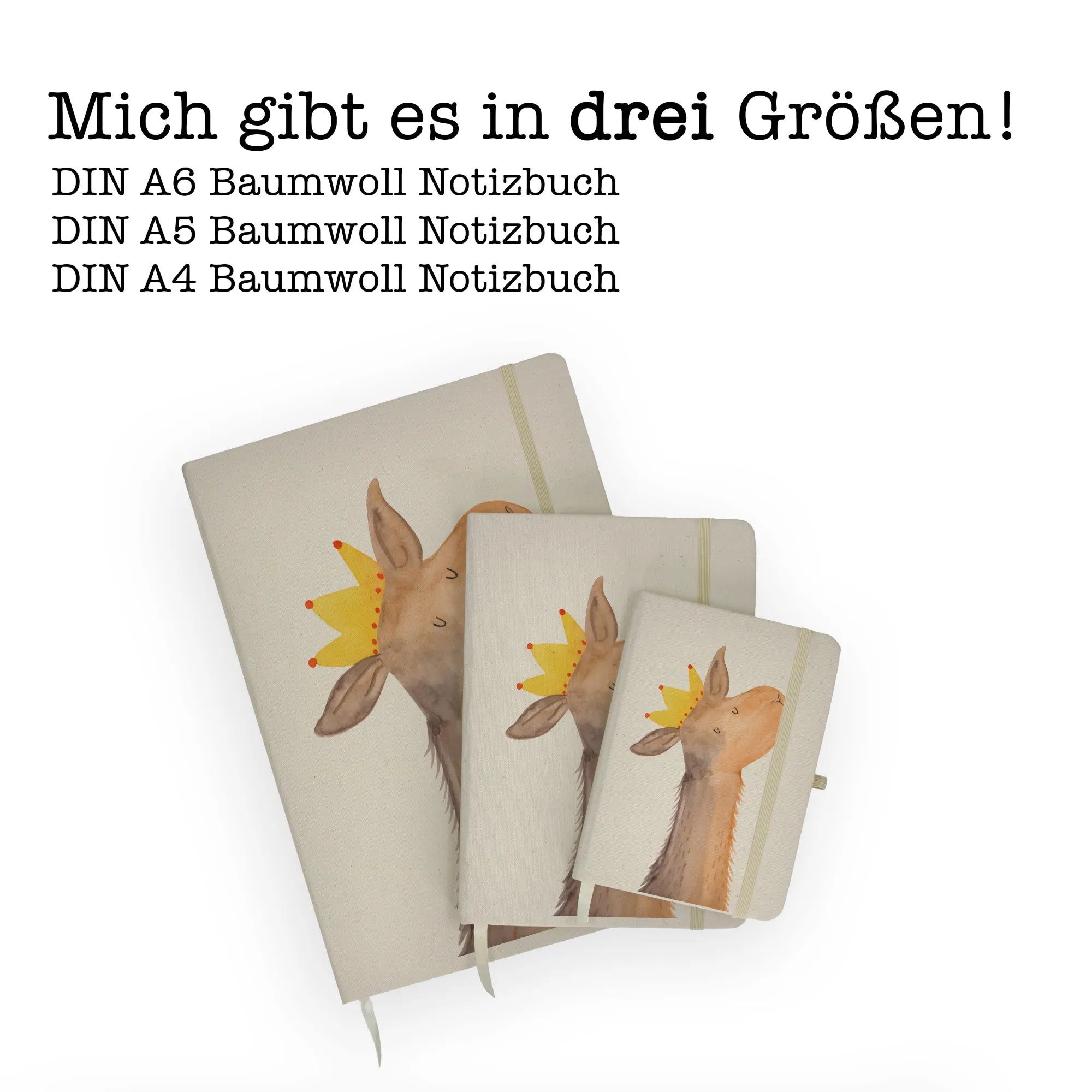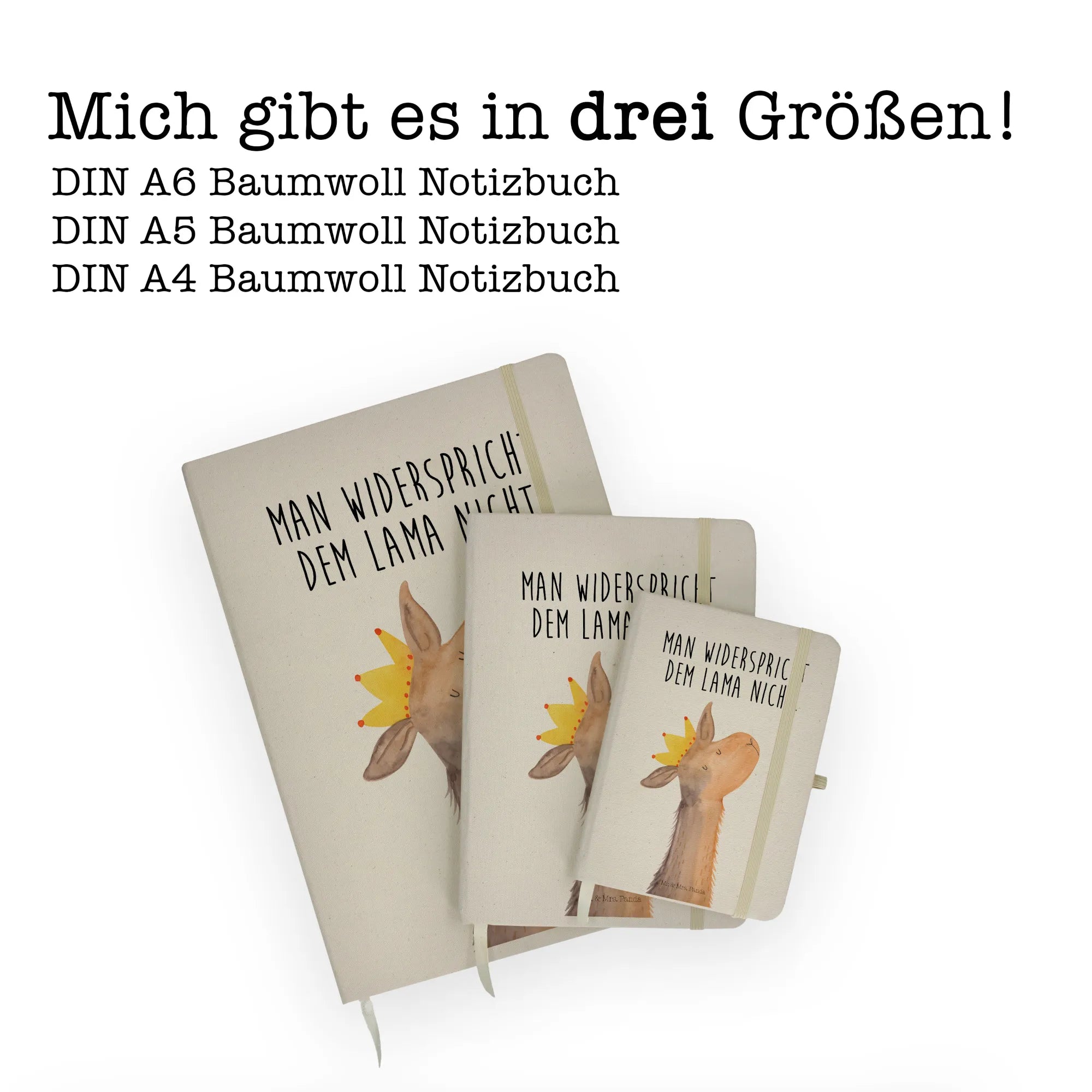 Suchst Du ein stilvolles und nachhaltiges Notizbuch? Unser DIN A4 Baumwoll Notizbuch „Lamakopf König“ aus der Lama - Kollektion von Mr. & Mrs. Panda vereint handgezeichneten Charme mit praktischen Details. Das niedliche Lama mit Krönchen wirkt verspielt und königlich zugleich und begleitet Dich beim Schreiben, Skizzieren und Planen.