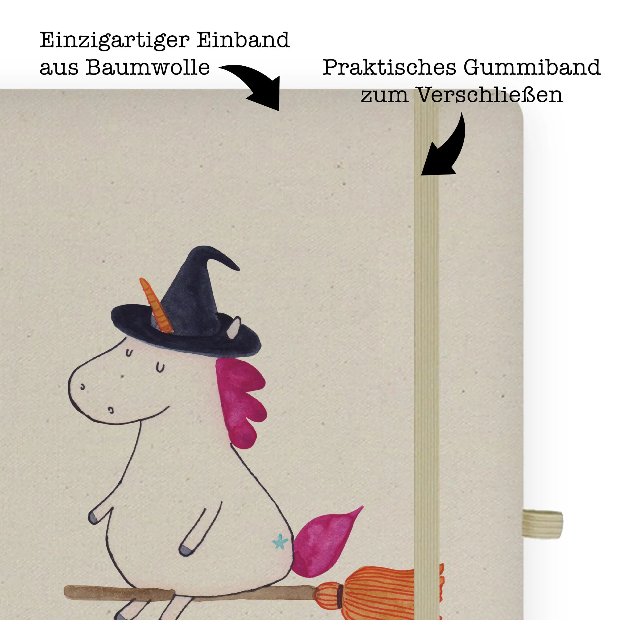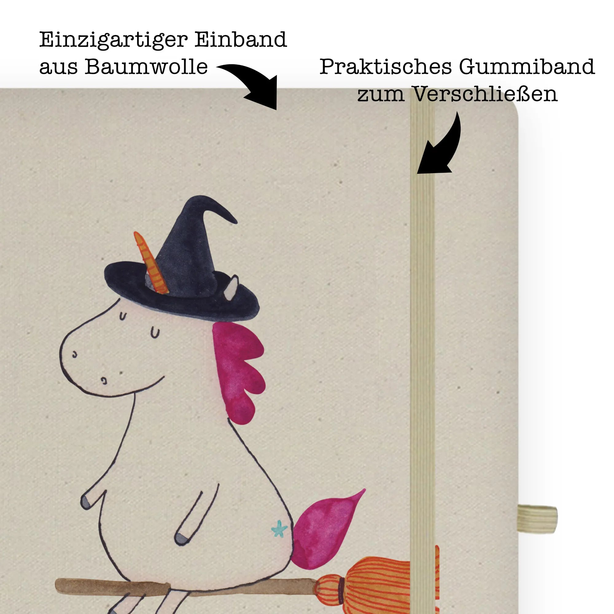 Bawełniany notatnik DIN A4 jednorożec Czarownica - DIN A4 Baumwoll Notizbuch - z napisem