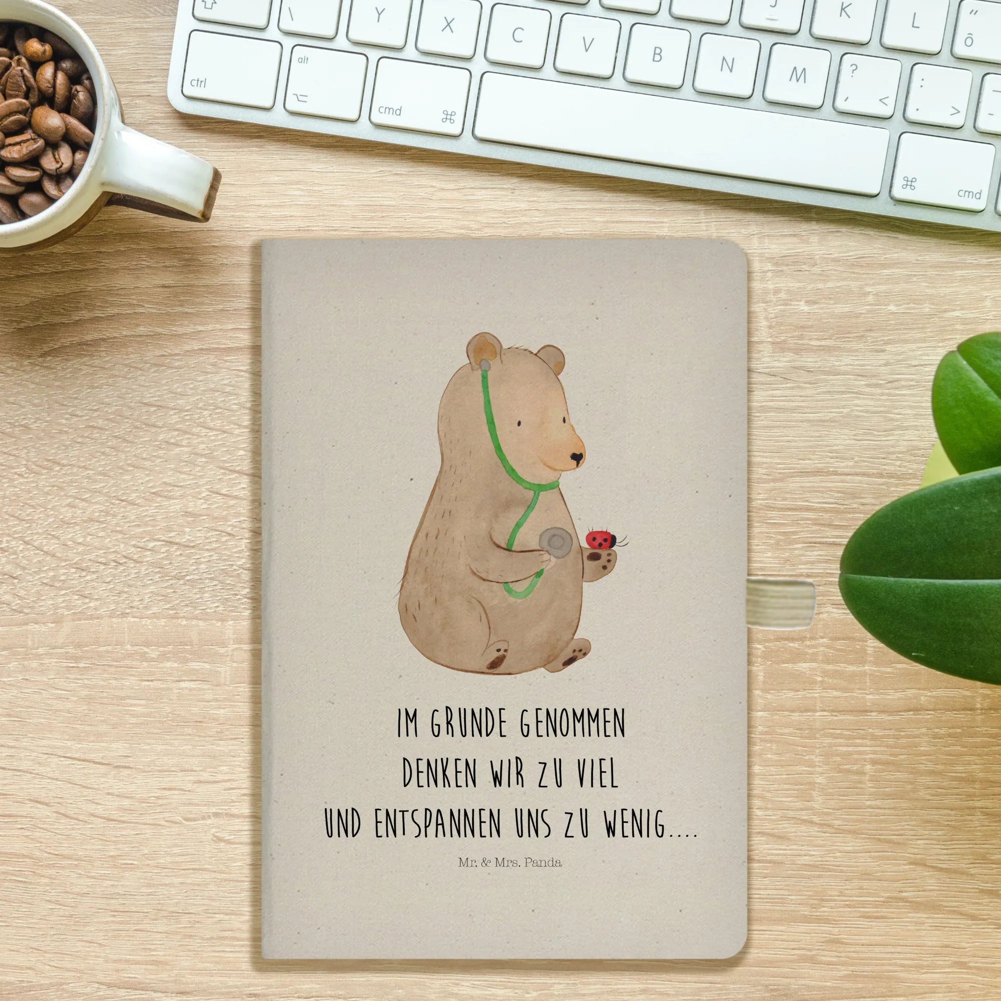 Bawełniany notatnik DIN A4 niedźwiedź lekarz - Bawełniany notatnik DIN A5 - z napisem