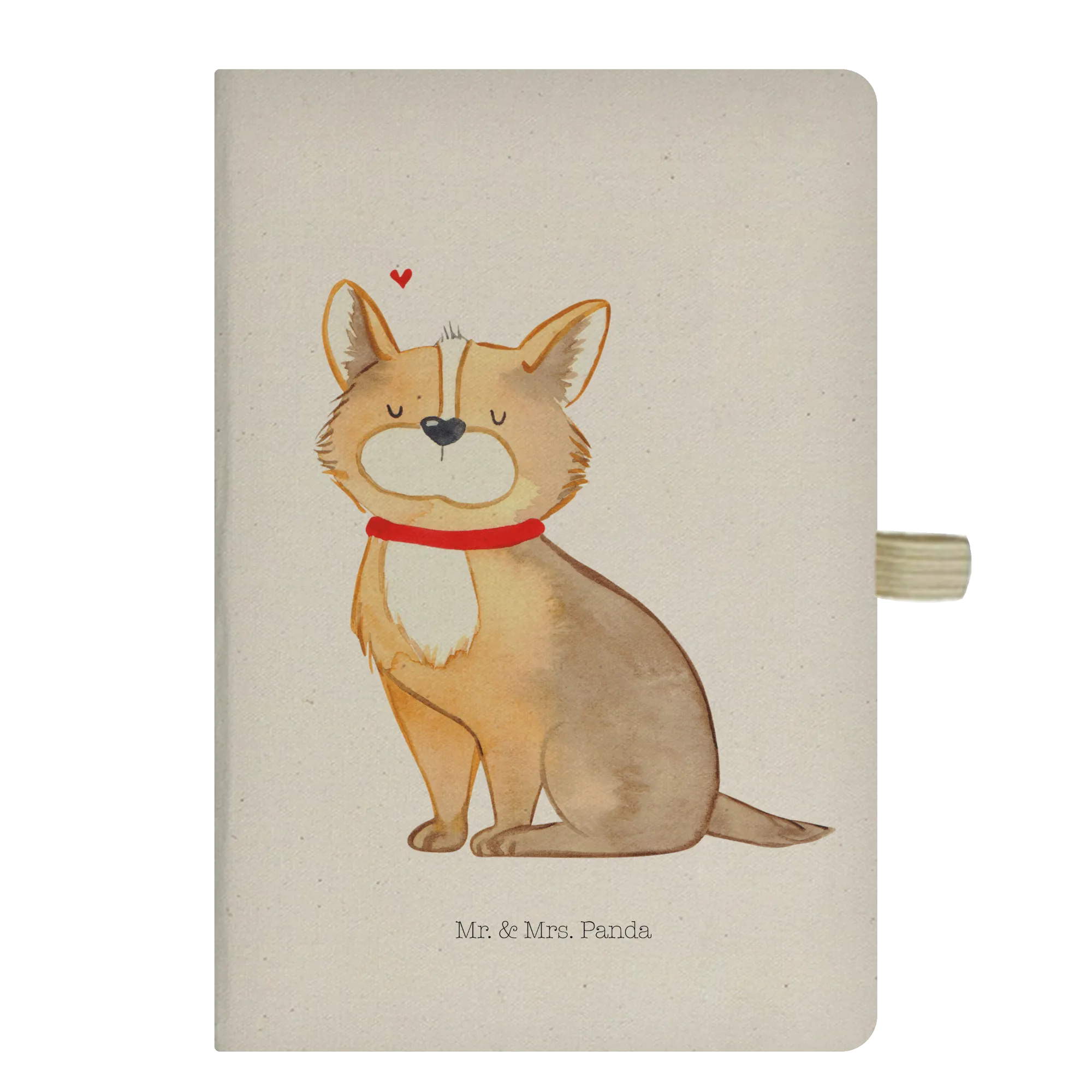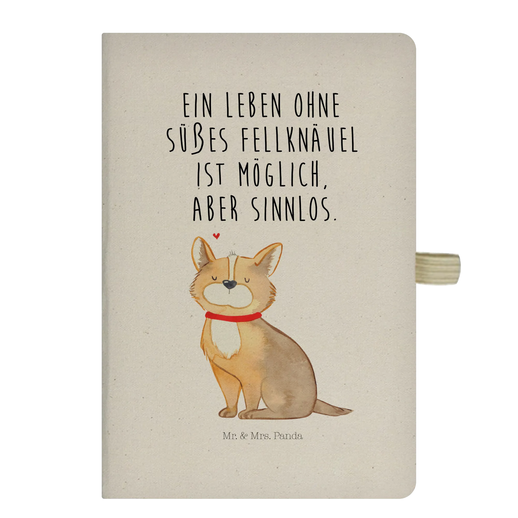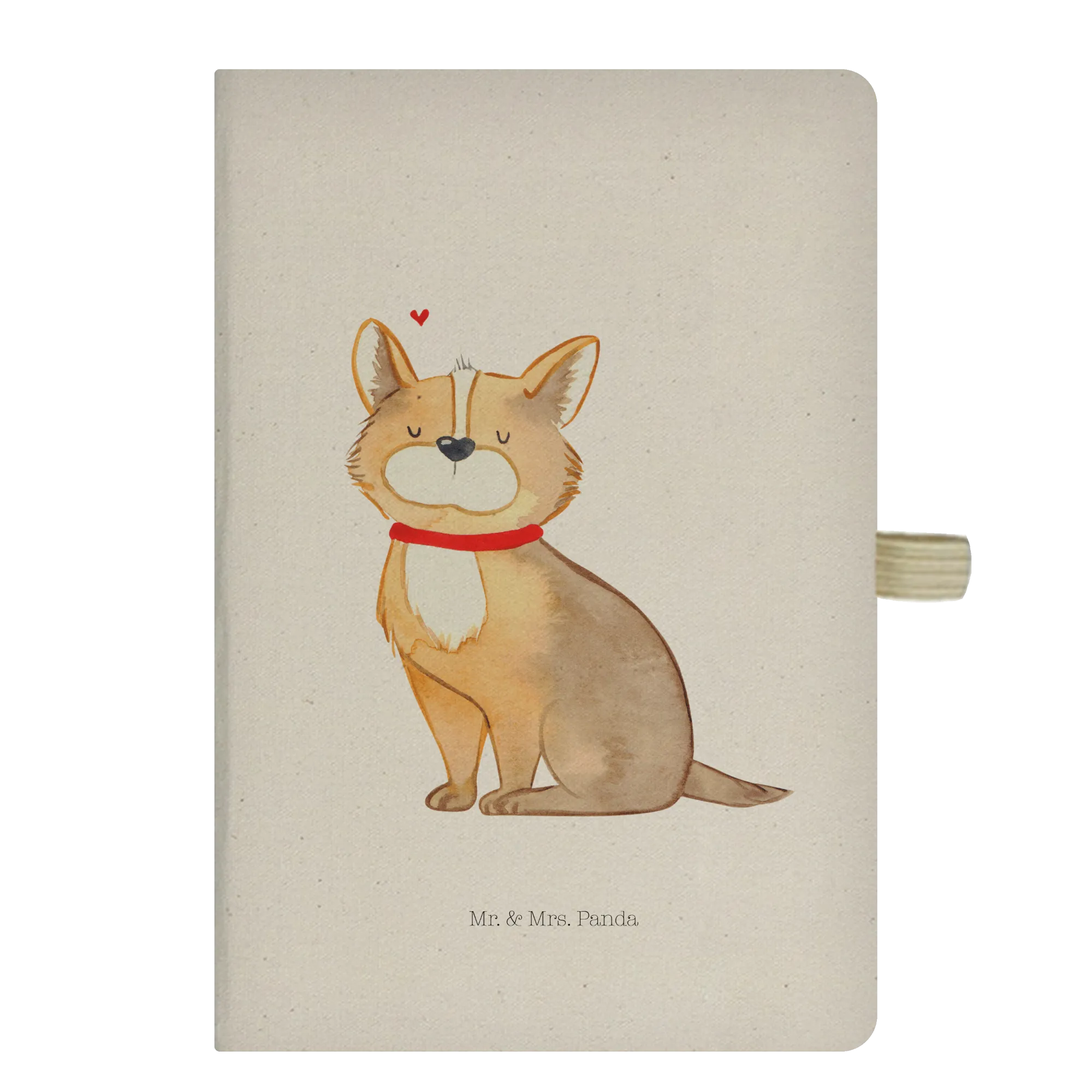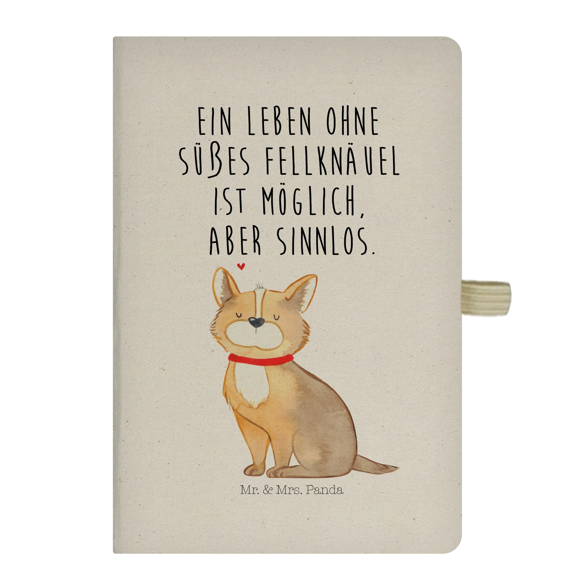 Bawełniany notatnik DIN A4 Pies szczęście - DIN A4 Baumwoll Notizbuch - z napisem