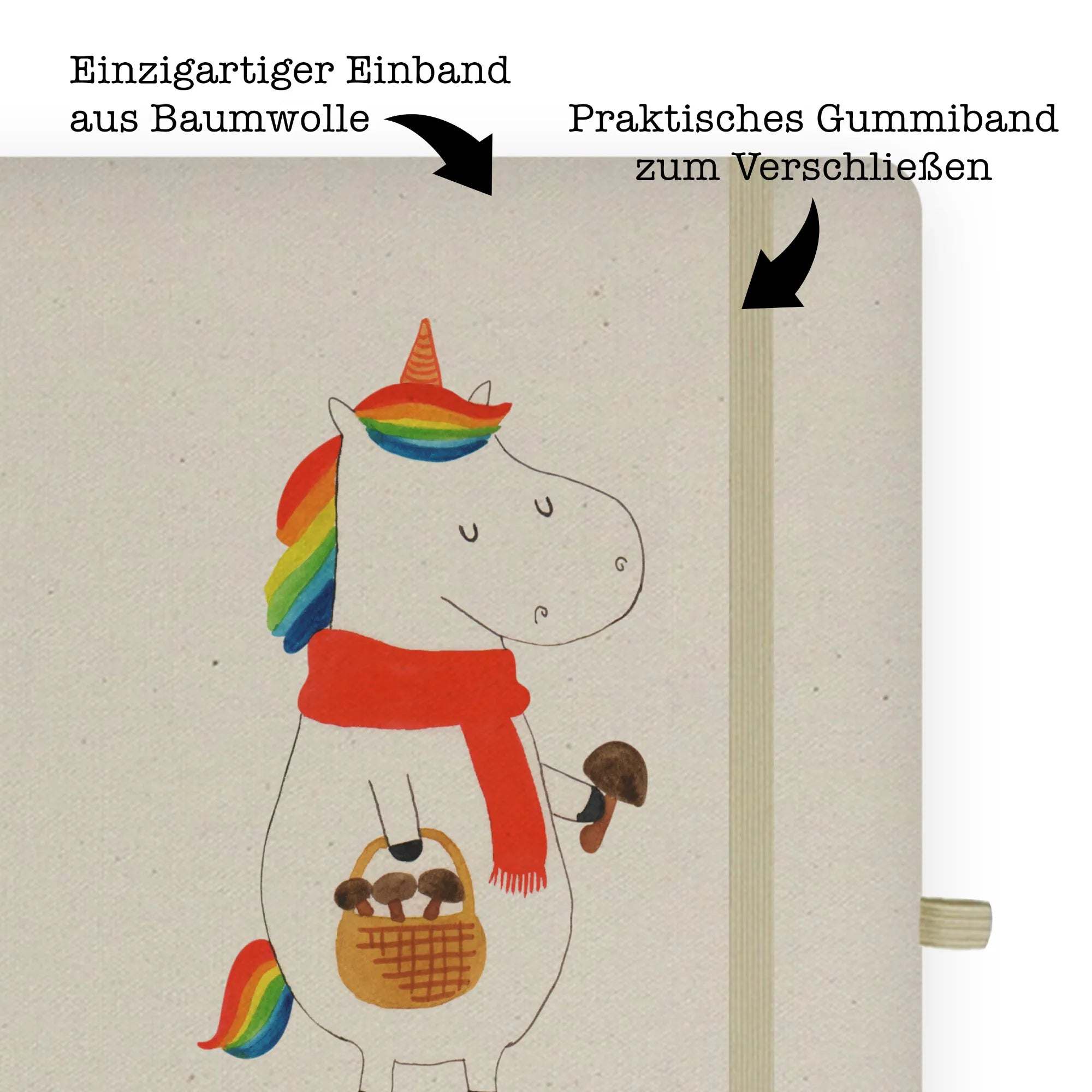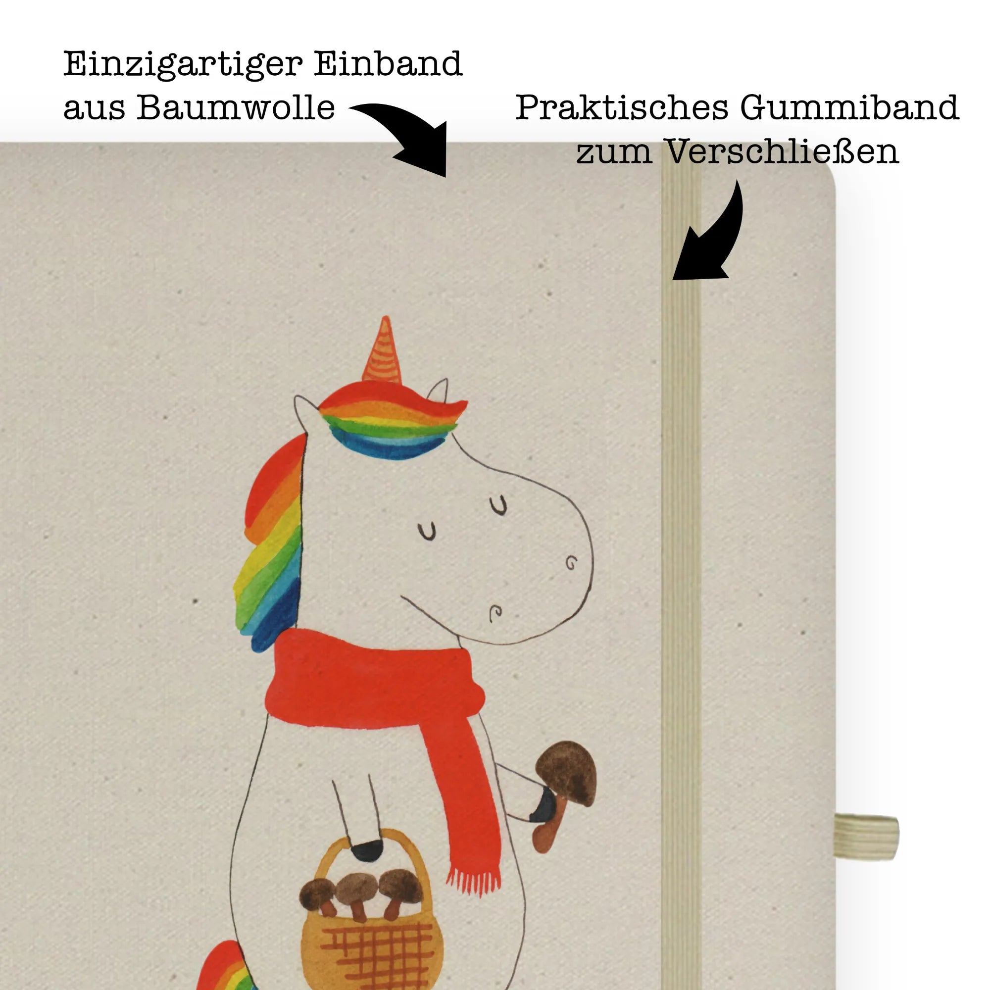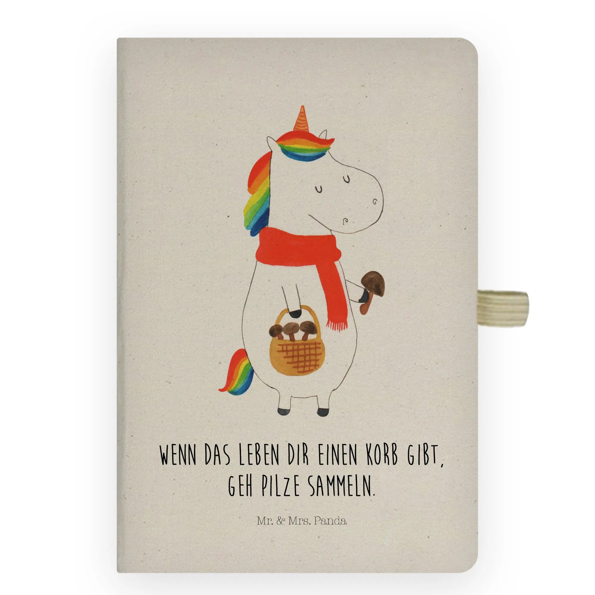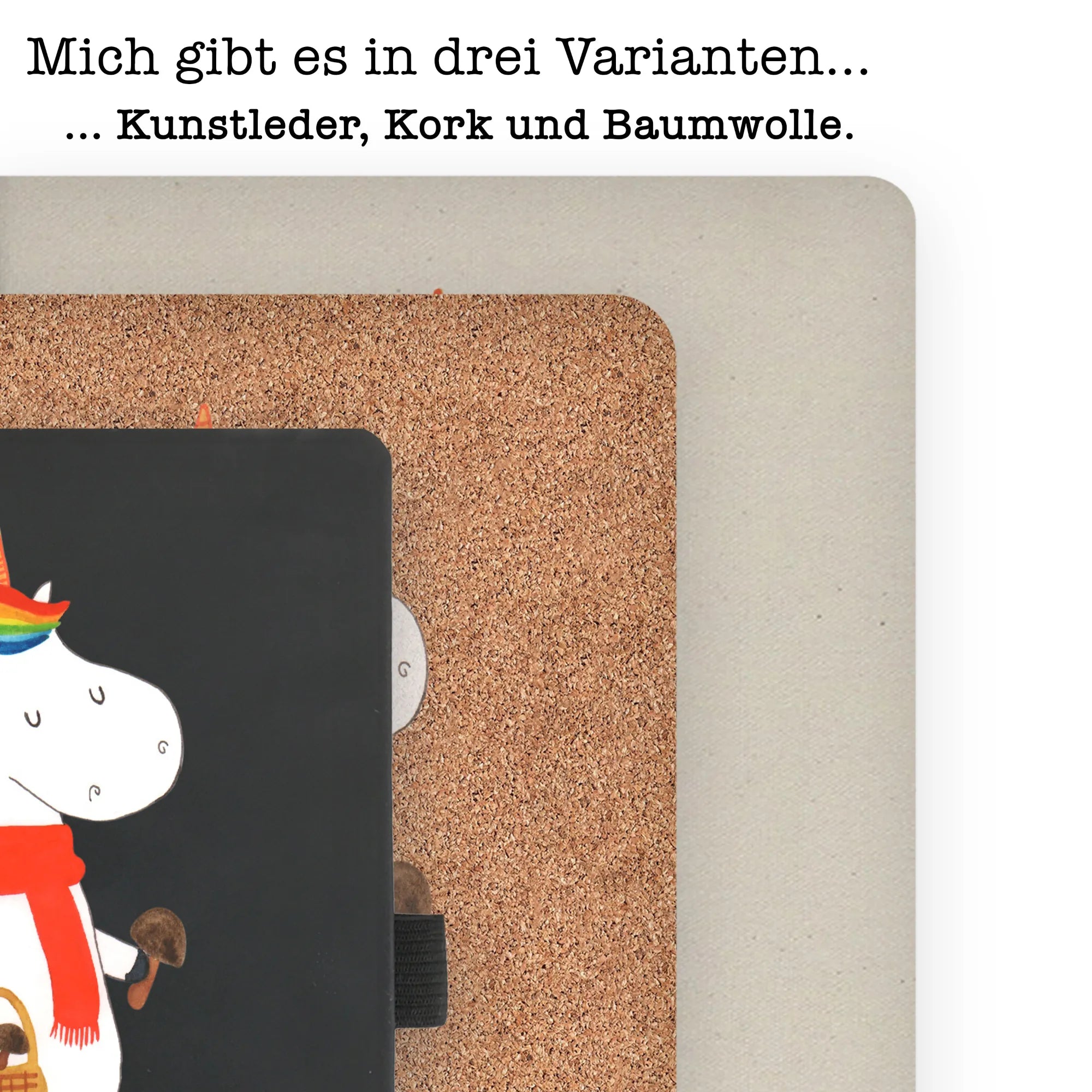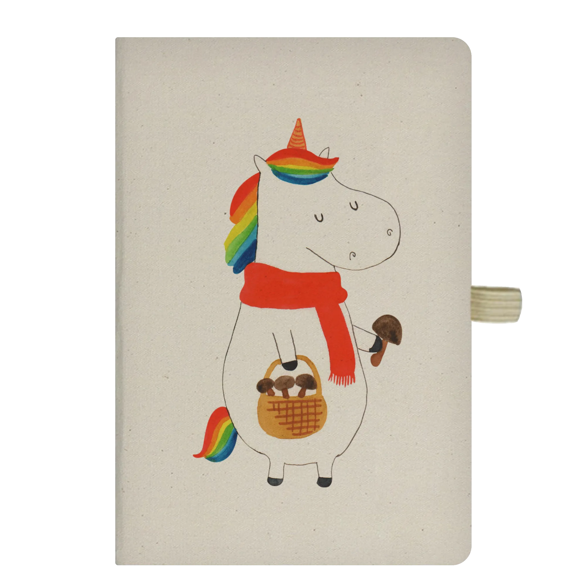 Ein Hauch von Magie für deinen Alltag: Das DIN A5 Baumwoll Notizbuch „Einhorn Pilz“ aus der Einhorn - Kollektion von Mr. & Mrs. Panda vereint liebevolles Design mit praktischer Ausstattung. Das handgezeichnete Einhorn-Motiv zeigt ein verspieltes Einhorn beim Pilzesammeln im Wald und zaubert dir ein Lächeln aufs Gesicht.