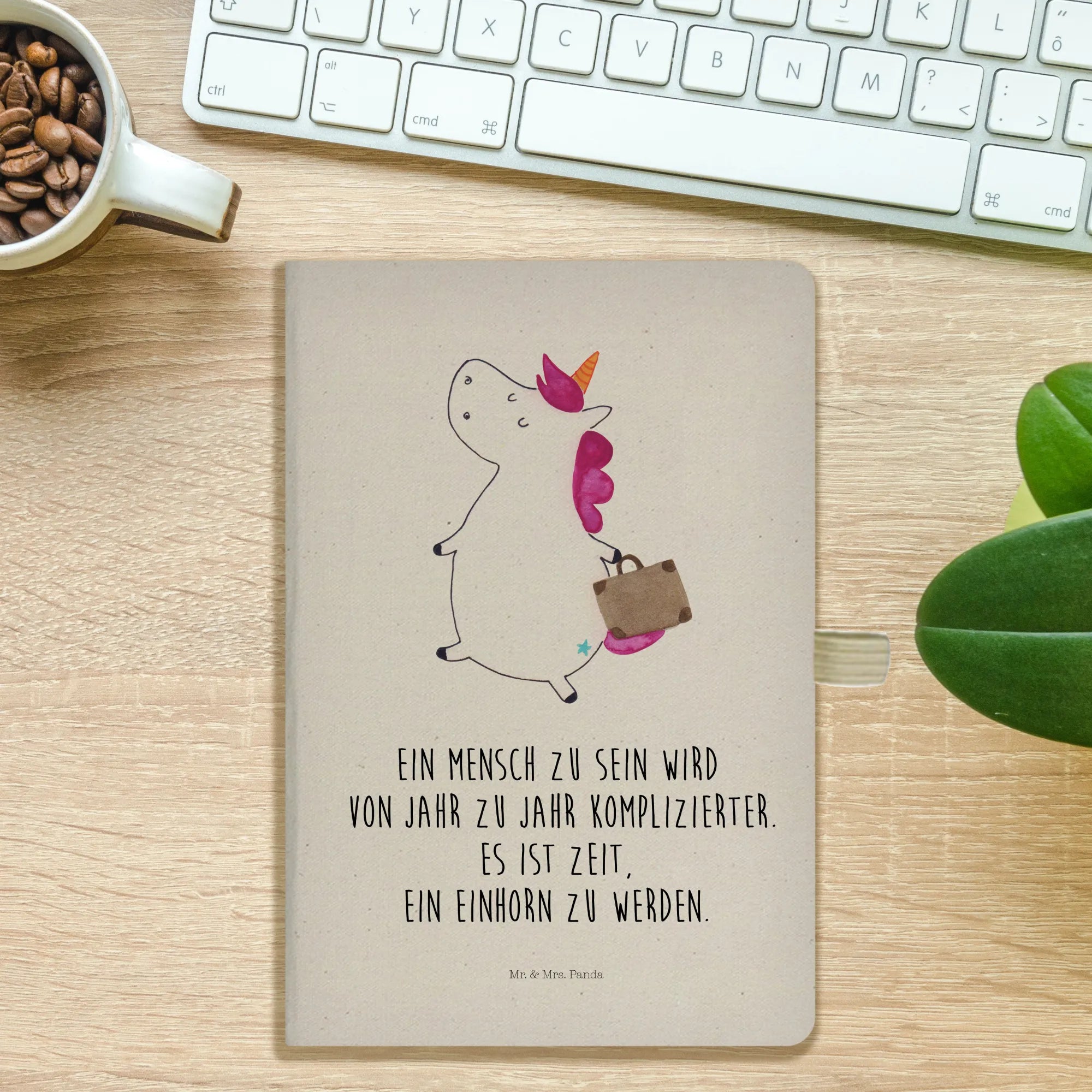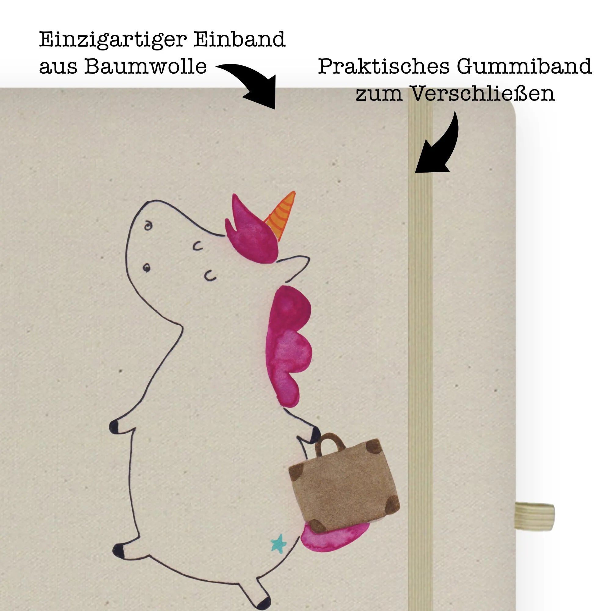 Bawełniany notes DIN A5 Jednorożec walizka - DIN A4 Baumwoll Notizbuch - z napisem