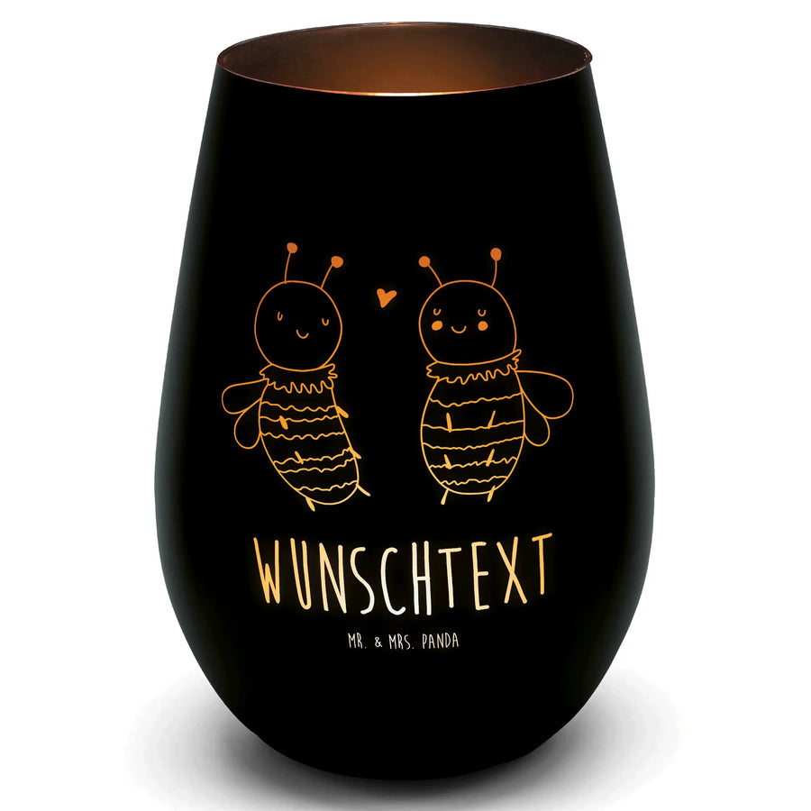 Gold Windlicht Personalisiert Biene Verliebt - Schwarz