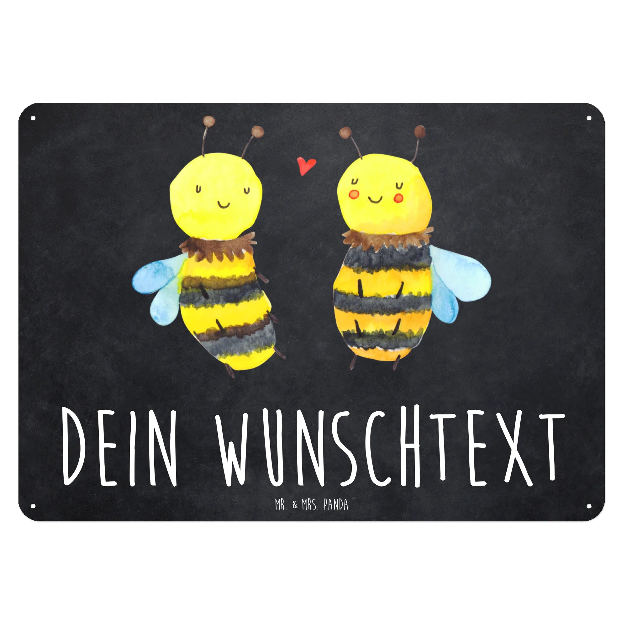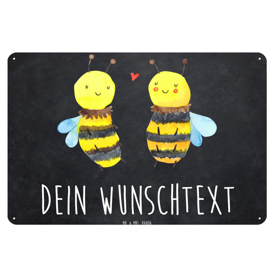 Die zwei süßen Bienen, die zärtlich umeinander schwirren, verkörpern das Glück einer innigen Beziehung und erhellen jeden Raum, in dem sie hängen. Das personalisierte Blechschild aus hochwertigem, edlem Stahlblech wird garantiert zum Blickfang in deiner Einrichtung.
