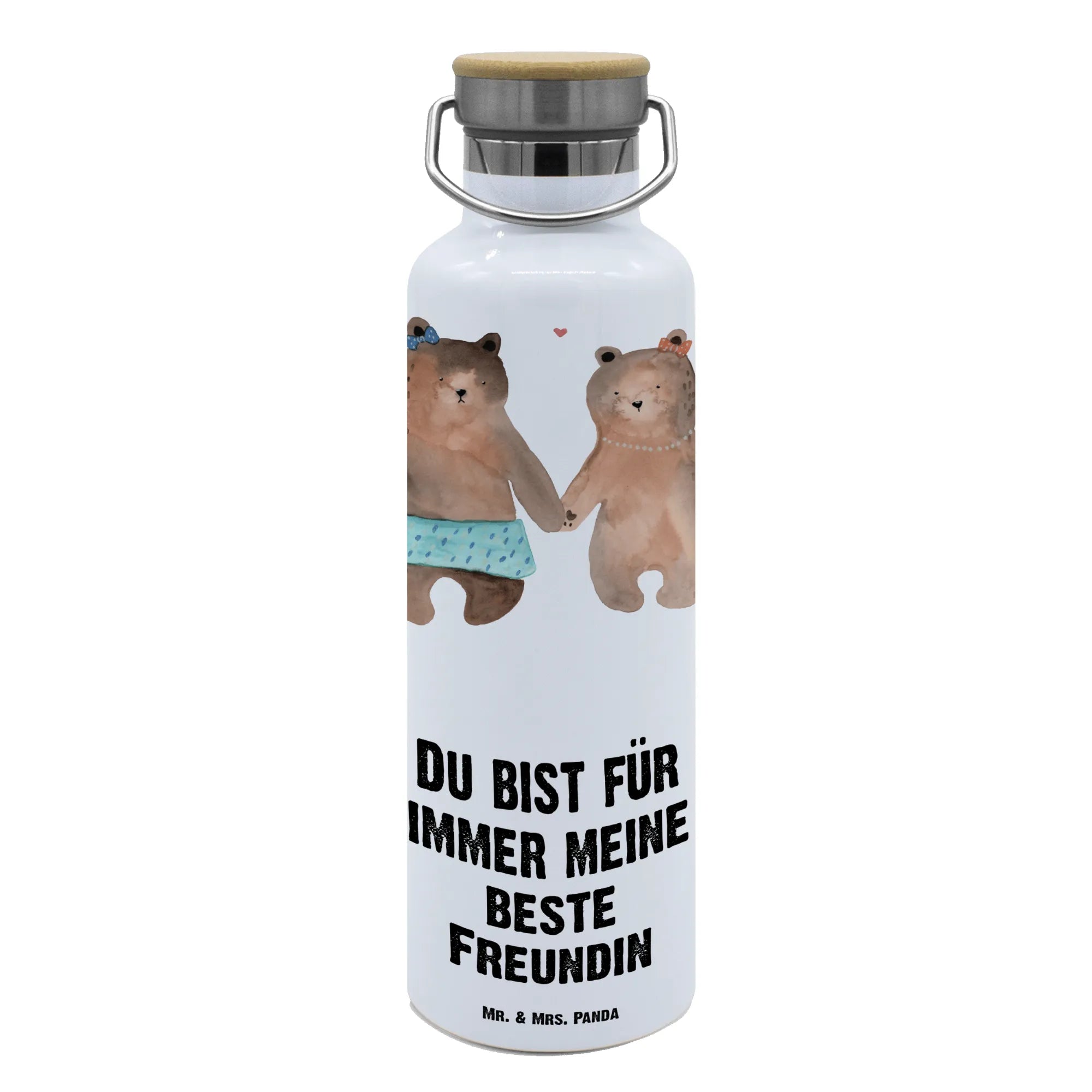 Die Trinkflasche Bär Freundin aus der Kollektion Bär von Mr. & Mrs. Panda ist das perfekte Geschenkrequisit für alle, die das Besondere lieben und ihre Freundschaften zelebrieren möchten! Mit einem herzlichen Motiv, das zwei süße Bärenmädchen zeigt, die sich an den Händen halten, drückt sie aus: 'Du bist für immer meine beste Freundin'. Egal, ob zum Geburtstag, zur Einschulung, oder einfach als liebevolle Aufmerksamkeit zwischendurch – diese wunderschöne Edelstahl-Trinkflasche überzeugt nicht nur durch ihr bezauberndes Design, sondern auch durch praktische Eigenschaften. Die doppelwandige Konstruktion sorgt dafür, dass deine Getränke lange warm oder kalt bleiben, perfekt für den Alltag, das Büro oder die nächste Wanderung!