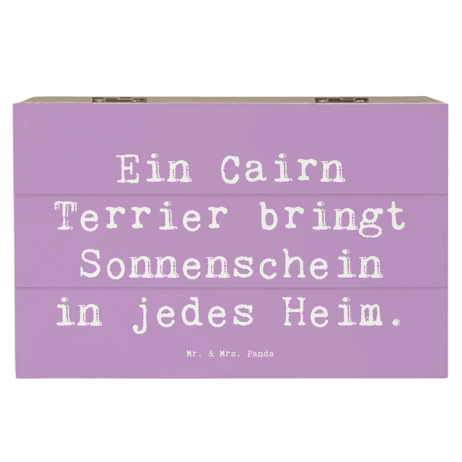 Die wunderschöne Holzkiste von Mr. & Mrs. Panda ist nicht nur ein praktischer Aufbewahrungsort, sondern auch ein stylisches Dekorationsstück für dein Heim. Mit ihrem niedlichen Motiv des Cairn Terriers und dem liebevollen Spruch "Ein Cairn Terrier bringt Sonnenschein in jedes Heim." ist sie das perfekte Geschenk für jeden Hundefan.