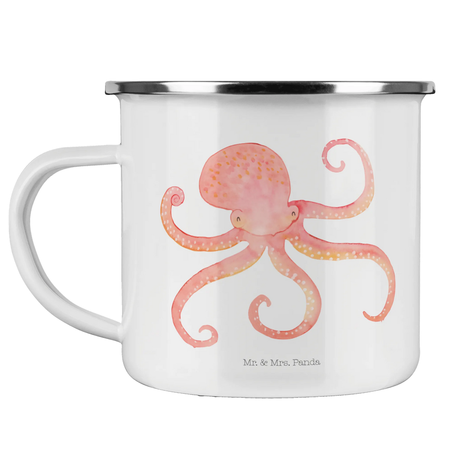 Kempingowy kubek emaliowany Ośmiornica - bez napisu - Biały