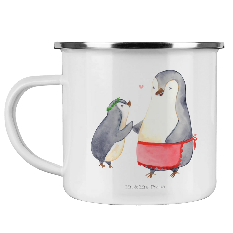 Kempingowy kubek emaliowany Pingwin z dzieckiem - bez napisu - Biały