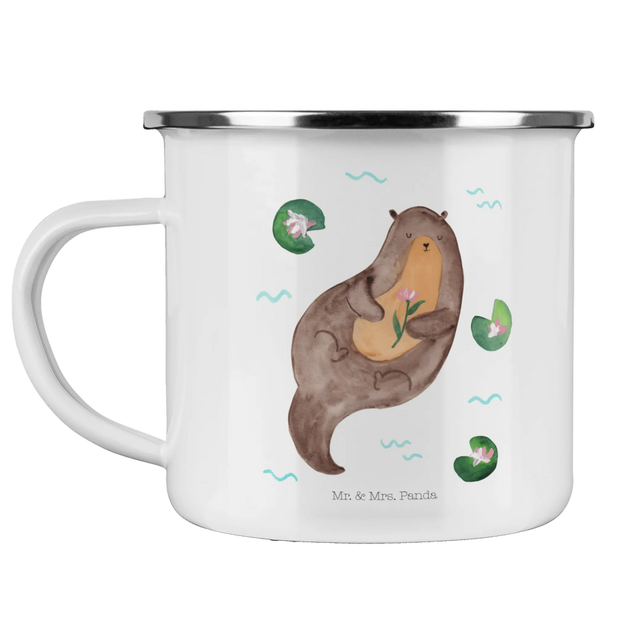 Kempingowy kubek emaliowany wydra lilia wodna - bez napisu - Biały