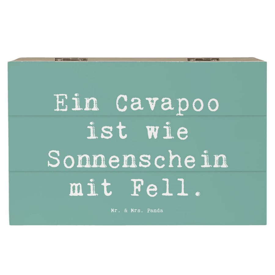 Die Holzkiste mit dem wunderschönen Motiv eines Cavapoo aus der exklusiven Hunderassen-Kollektion von Mr. & Mrs. Panda ist das perfekte Geschenk für alle Hundefans! Mit dem liebevollen Spruch "Ein Cavapoo ist wie Sonnenschein mit Fell." zaubert diese Kiste jedem ein Lächeln ins Gesicht.