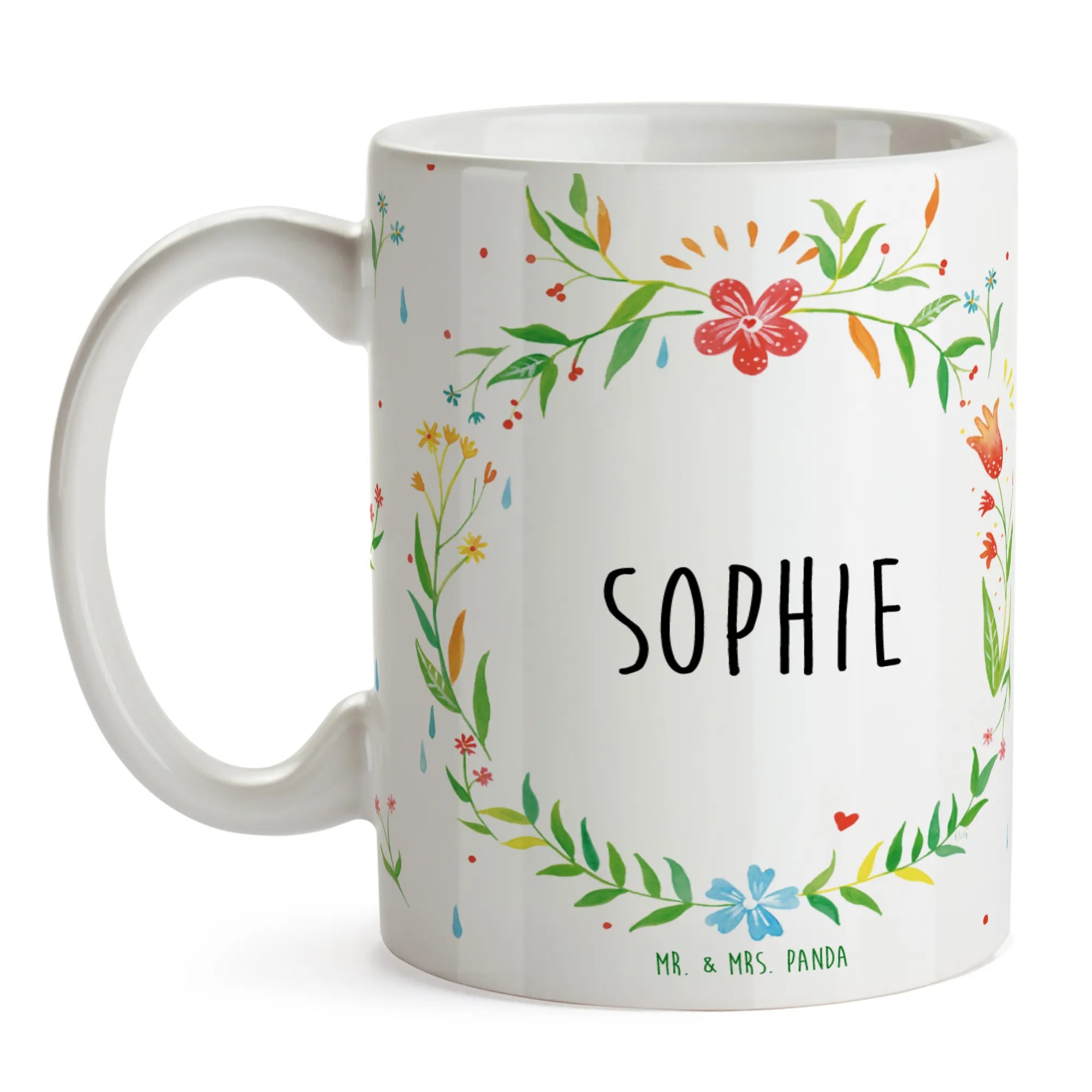 Mit zarter Blumenranke und dem liebevoll gesetzten Schriftzug „Sophie“ ist diese Keramiktasse aus unserer Forenames-Kollektion ein kleines Kunstwerk für den Alltag. Ob als Kaffeetasse, Teetasse oder Bürotasse – sie macht überall eine gute Figur. Perfekt als Geschenk zum Geburtstag, Namenstag, Muttertag, zur bestandenen Prüfung oder einfach als liebevolle Aufmerksamkeit.