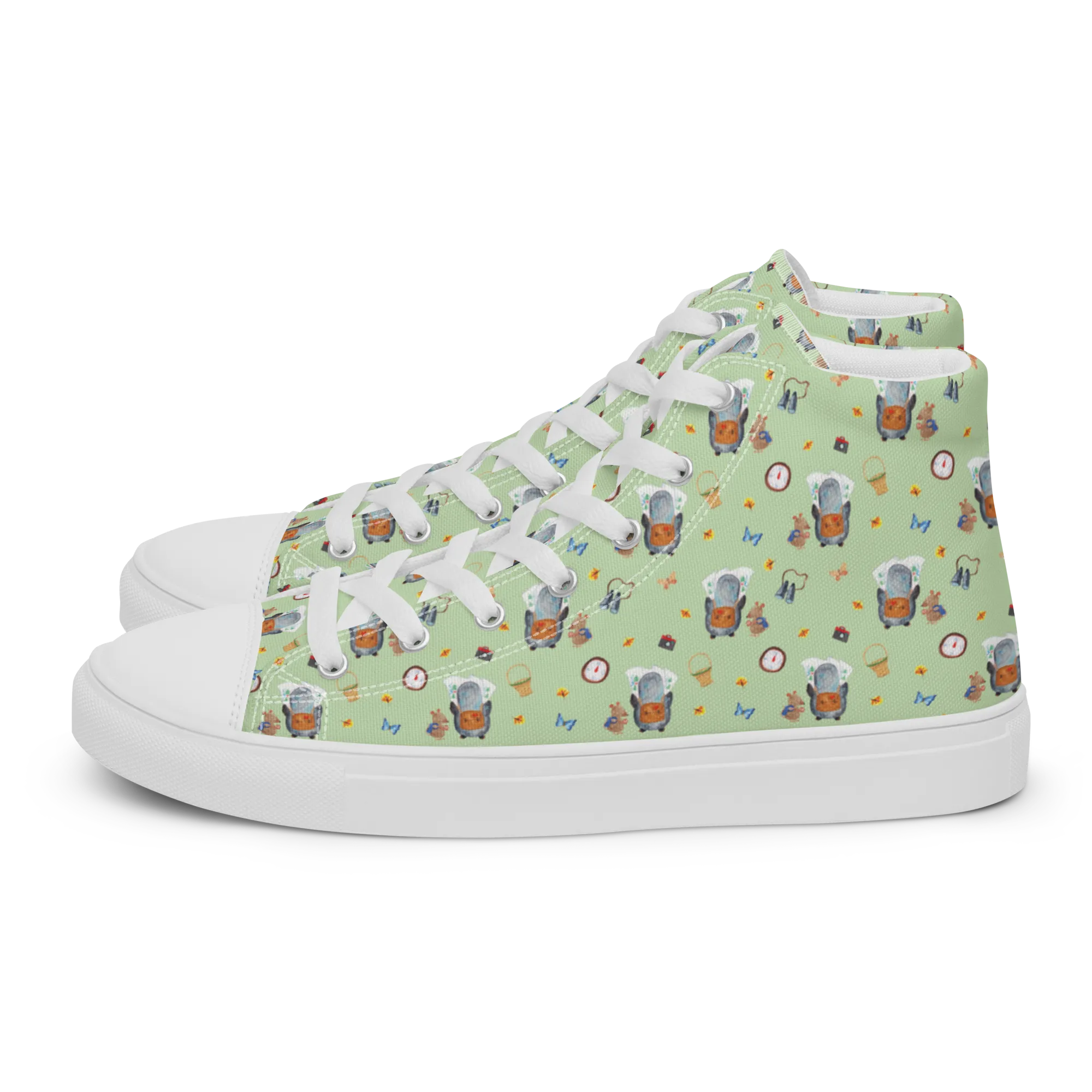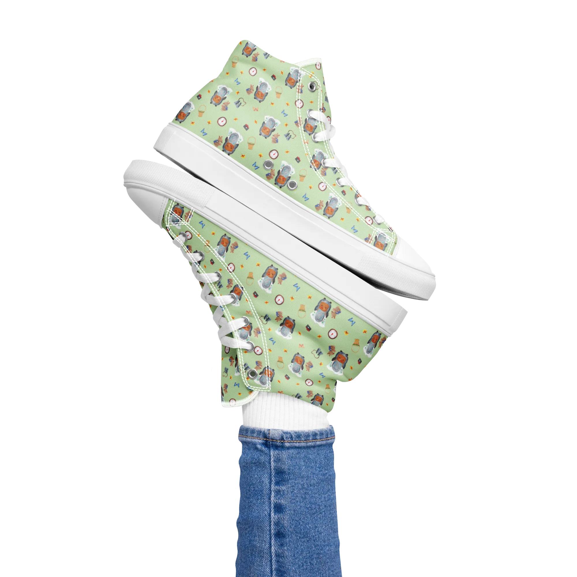Ein besonderes Motiv: Der neugierige Pinguin blickt auf eine detaillierte Landkarte, während die schlaue Maus den Kompass prüft. Das handgezeichnete Aquarellmotiv macht jeden Sneaker zu einem Unikat und erinnert an Roadtrips, Wanderungen und kleine alltägliche Ausflüge.