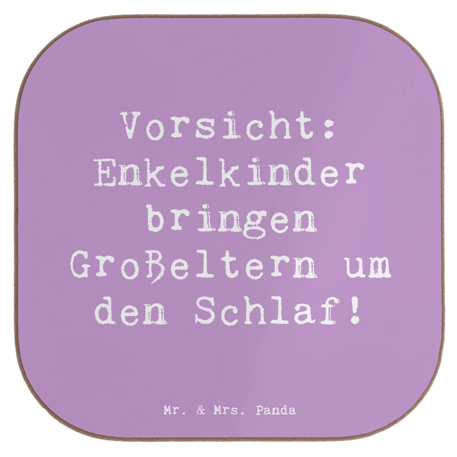 Vorsicht, liebe Großeltern! Unser quadratischer Untersetzer aus der Mr. & Mrs. Panda Familienkollektion bringt Herz und Humor auf Deinen Tisch. Mit dem frechen Spruch „Vorsicht: Enkelkinder bringen Großeltern um den Schlaf!“ zaubert er sofort ein Lächeln und erinnert liebevoll an die ganz besondere Beziehung zwischen Omas, Opas und ihren Enkelkindern. 😊