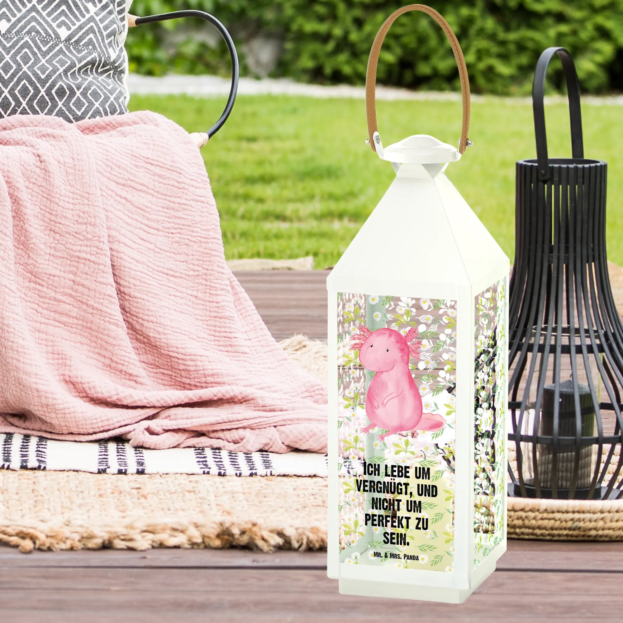 Dekoracyjna latarnia aksolotl null - z napisem