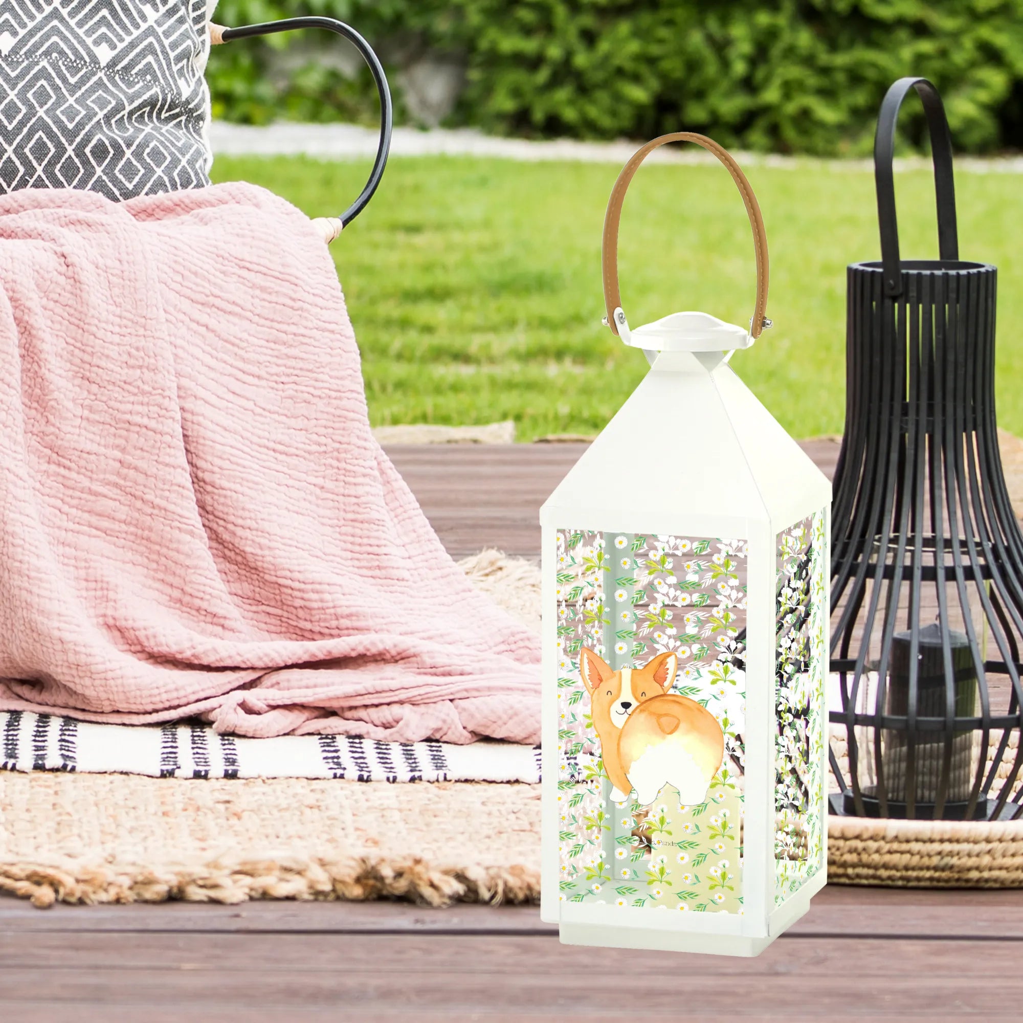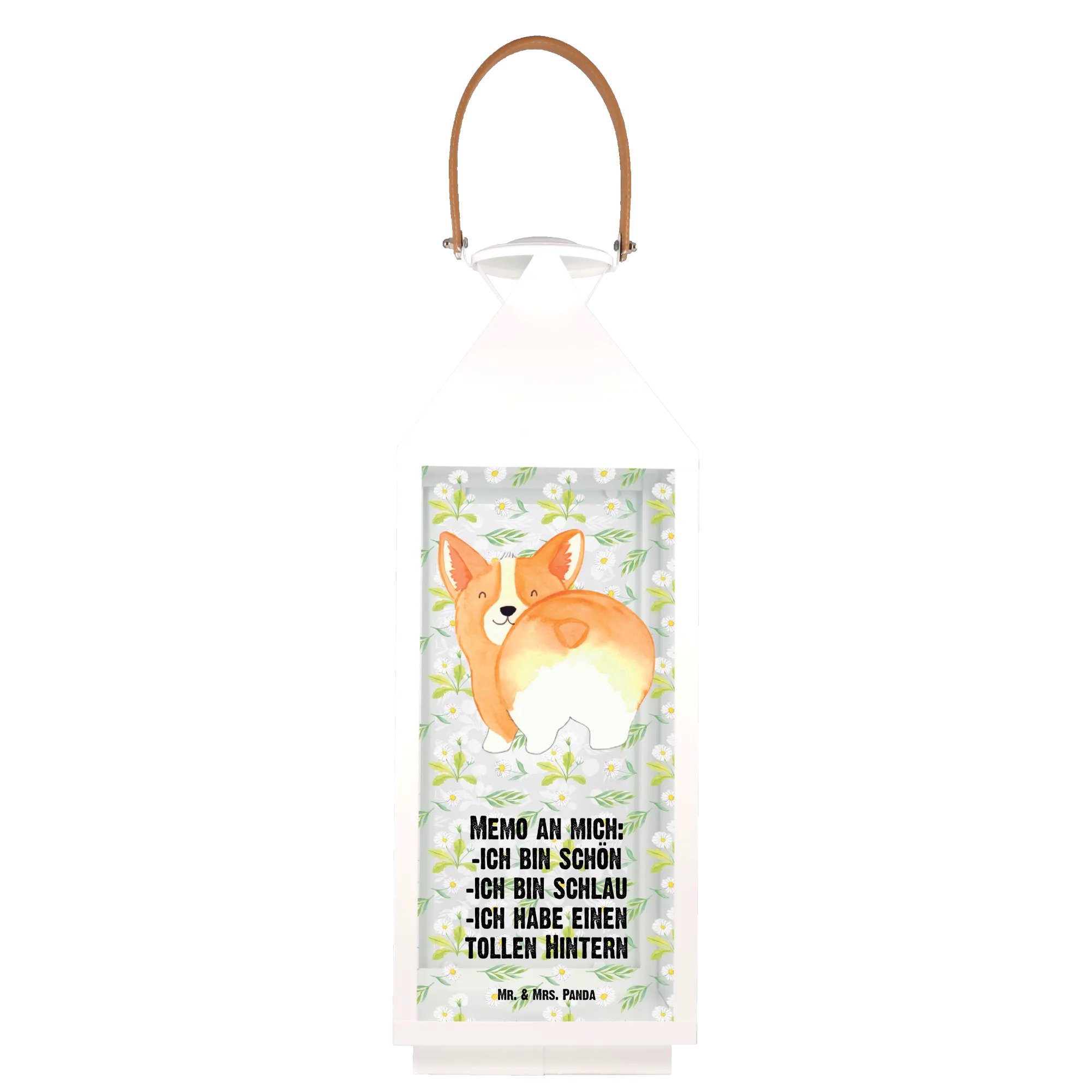 Dekoracyjna latarnia Corgi tyłek - S - z napisem