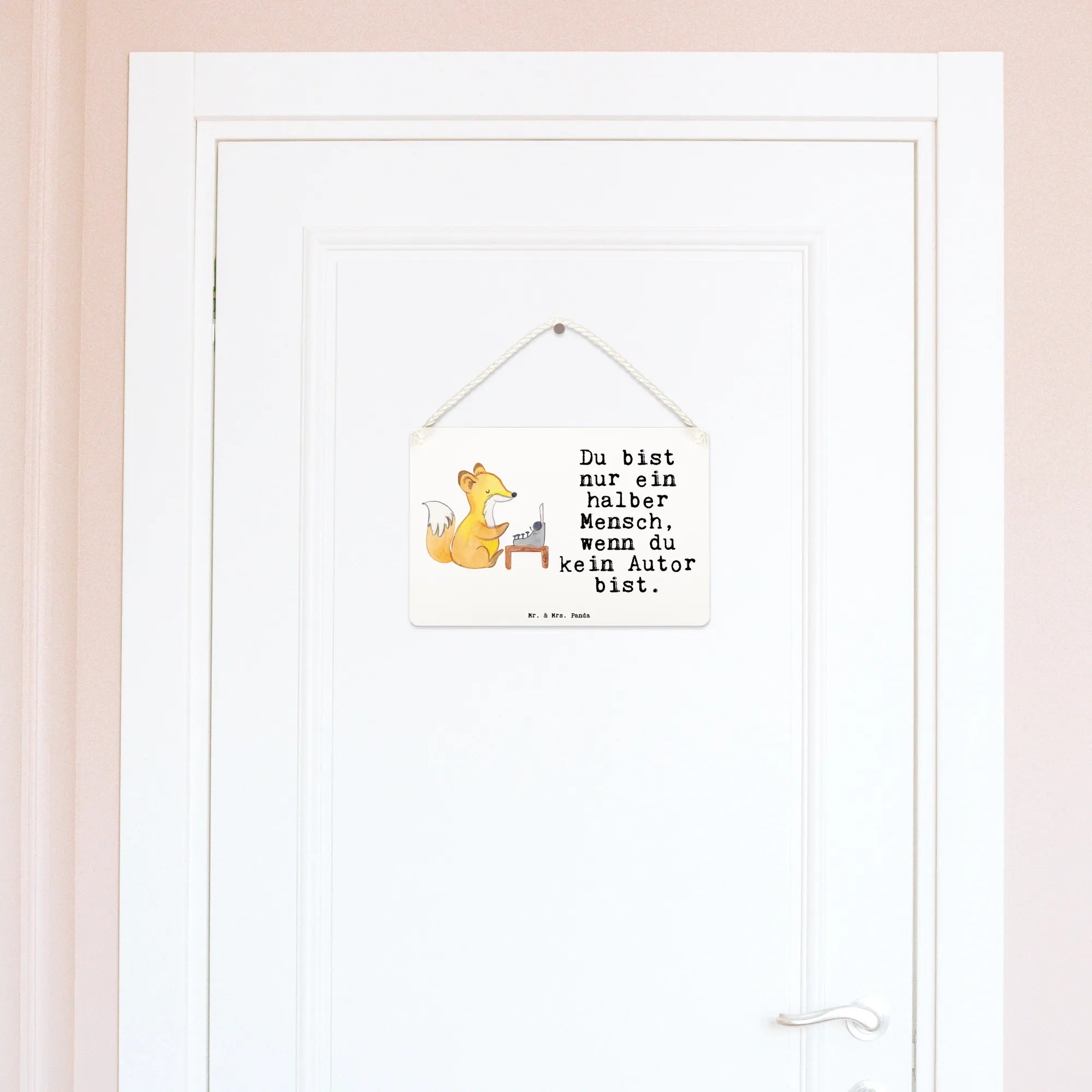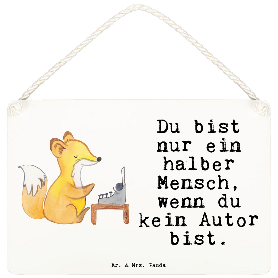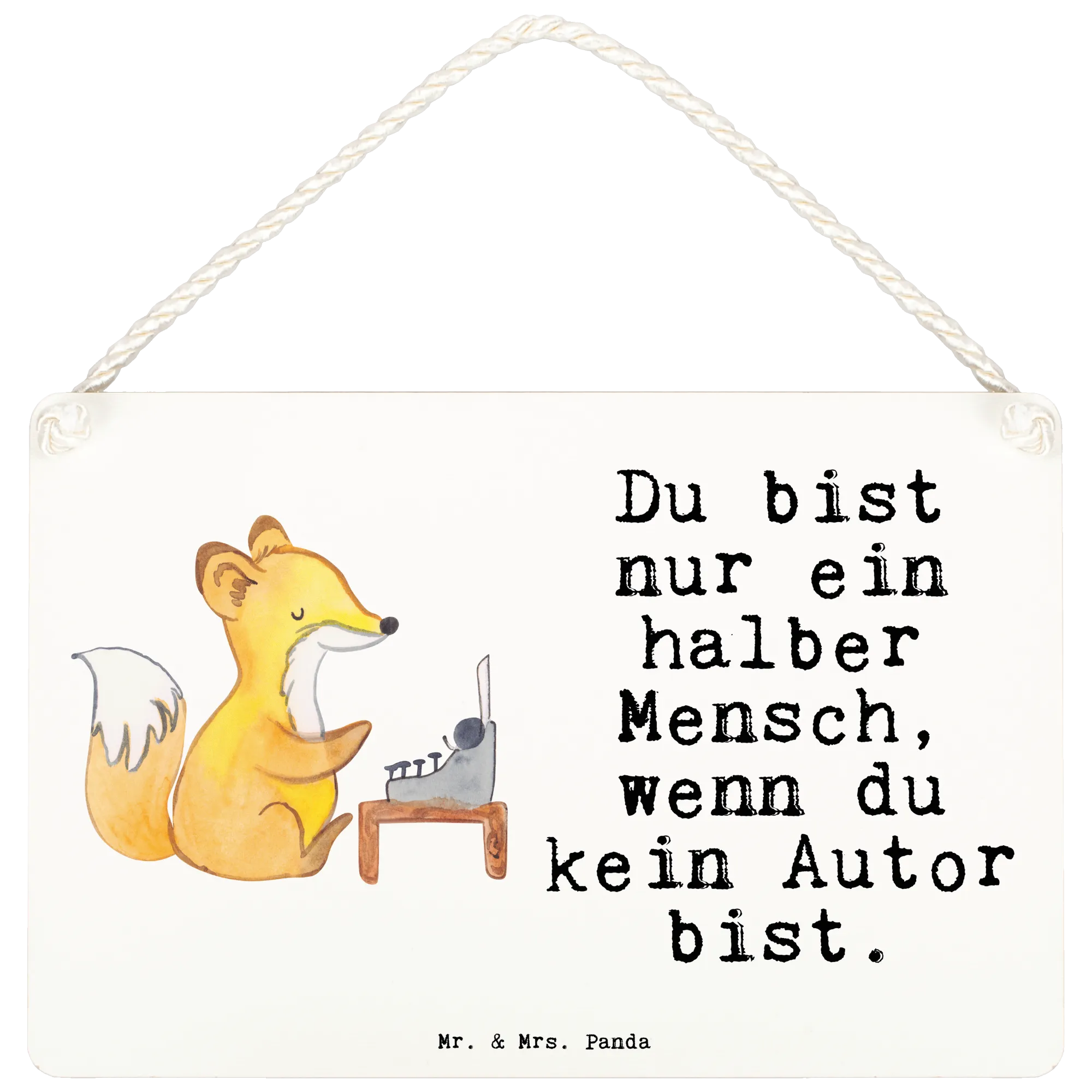 Das Deko Schild 'Autor mit Herz' aus der Berufe Kollektion von Mr. & Mrs. Panda ist das perfekte Geschenk für alle kreativen Köpfe und leidenschaftlichen Schriftsteller. Mit einem süßen Motiv, das einen Fuchs an einer Schreibmaschine zeigt, strahlt es Herzlichkeit und Inspiration aus.