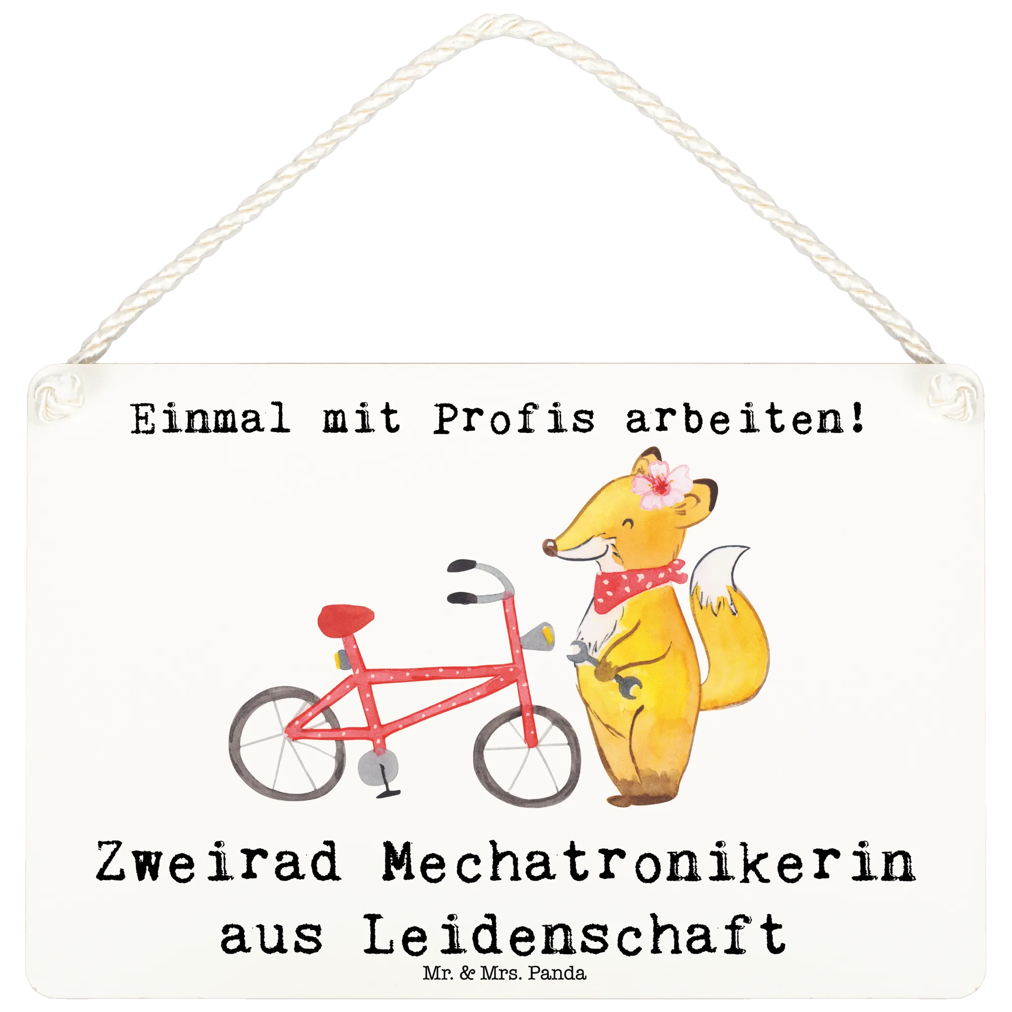 Entdecke das wunderbare Deko Schild "Zweirad Mechatronikerin aus Leidenschaft" von Mr. & Mrs. Panda! Dieses liebevoll gestaltete Holzschild ist die perfekte Deko für alle, die mit Leidenschaft an Zweirädern arbeiten oder einfach eine besondere Verbindung zu diesem Beruf haben. Mit einem bezaubernden Motiv, das eine weibliche Figur eines Fuchses zeigt, der ein Fahrrad repariert, bringt dieses Schild eine fröhliche Atmosphäre in jedes Zuhause oder Büro.