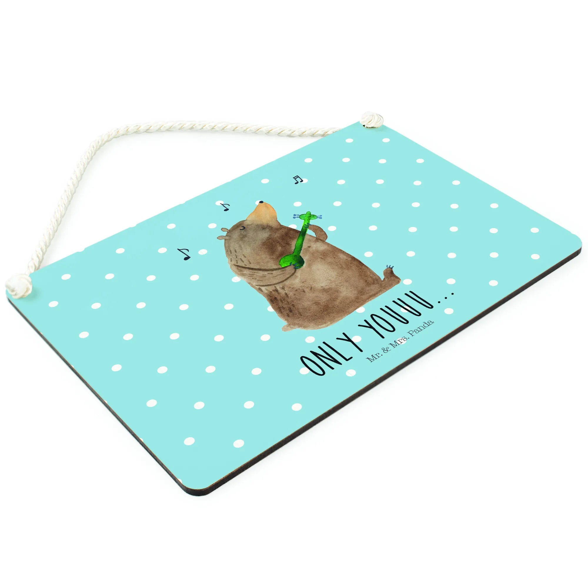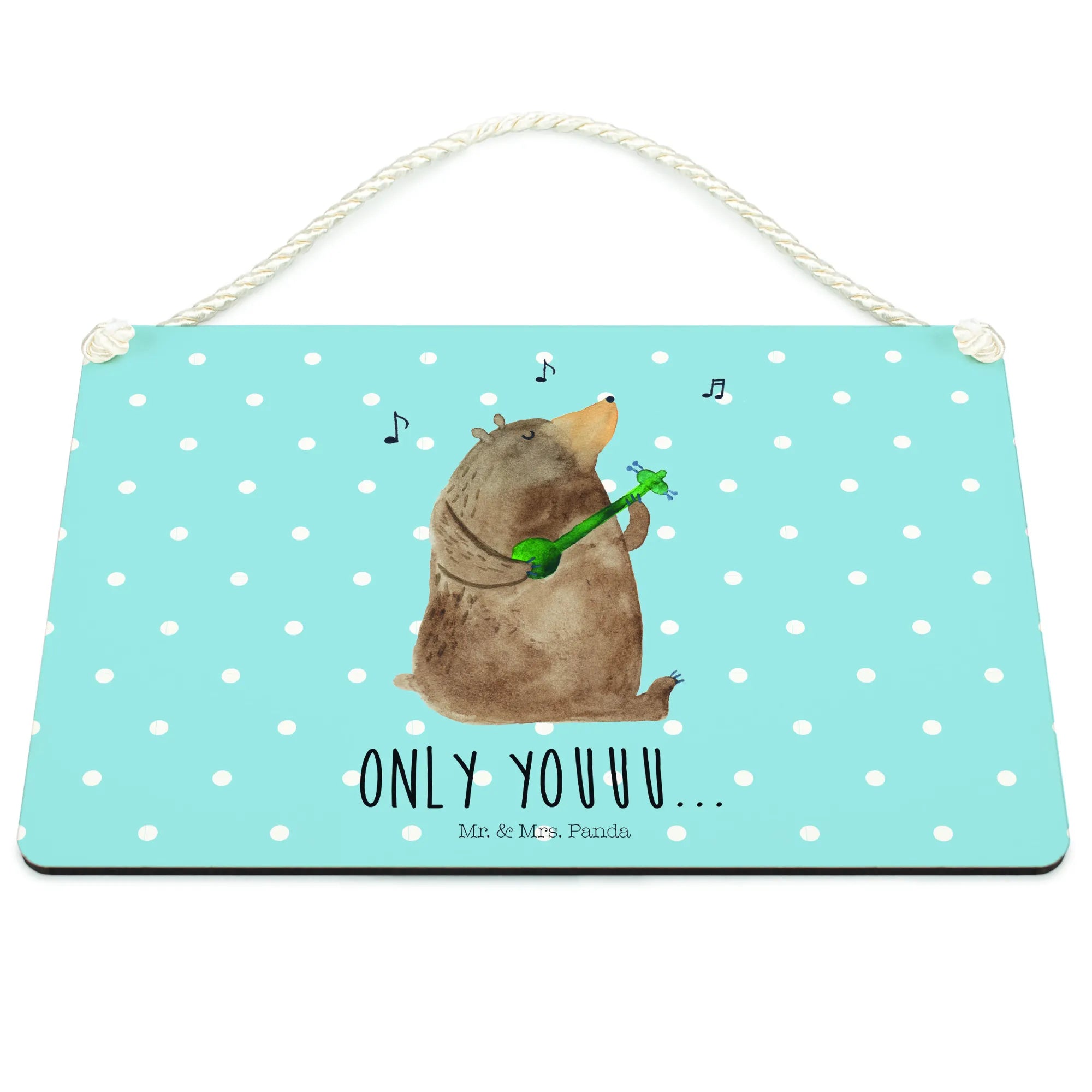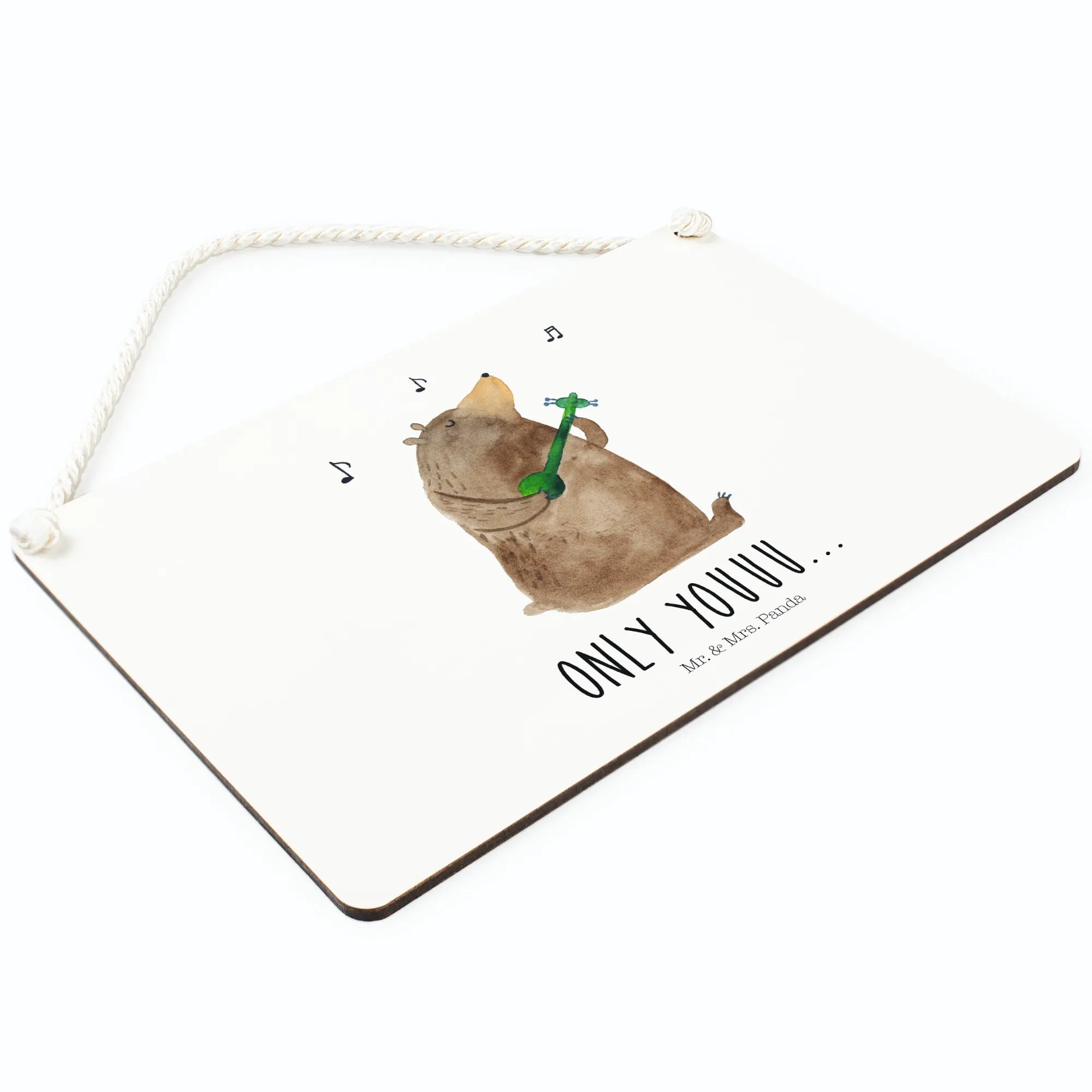 Dieses charmante Wandschild vereint süße Illustration und praktische Funktion. Der kleine Bär, der auf seiner Gitarre spielt, ist perfekt für alle, die Musik und behagliche Deko lieben. Die handgezeichnete Aquarell-Optik von Mrs. Panda verleiht dem Motiv Wärme und Persönlichkeit, sodass es in Wohnzimmer, Flur, Musikzimmer oder am Proberaum eine wunderschöne Stimmung zaubert. 🎸🐻