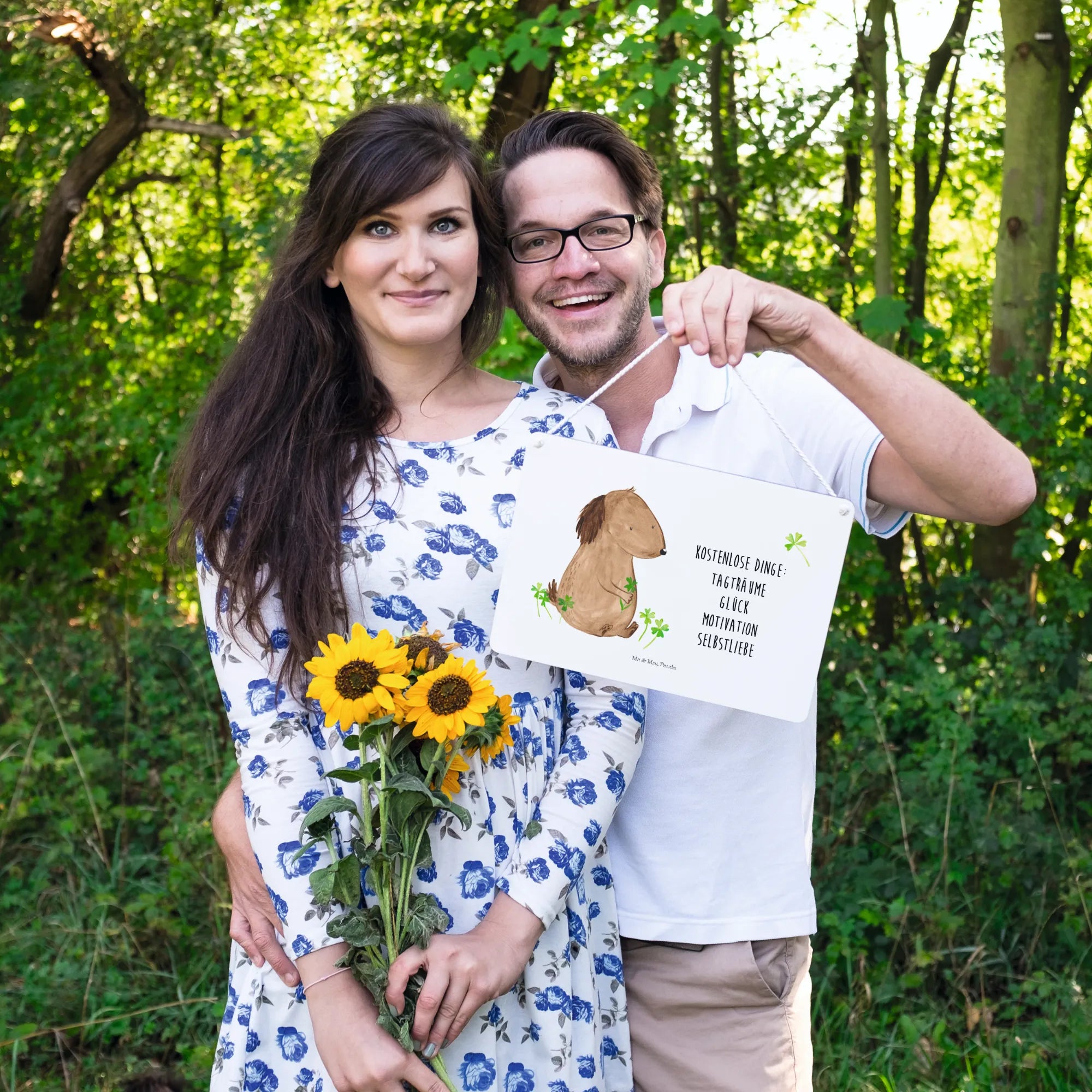 Dekoracyjny znak pies koniczyna - z napisem - Hundeglück