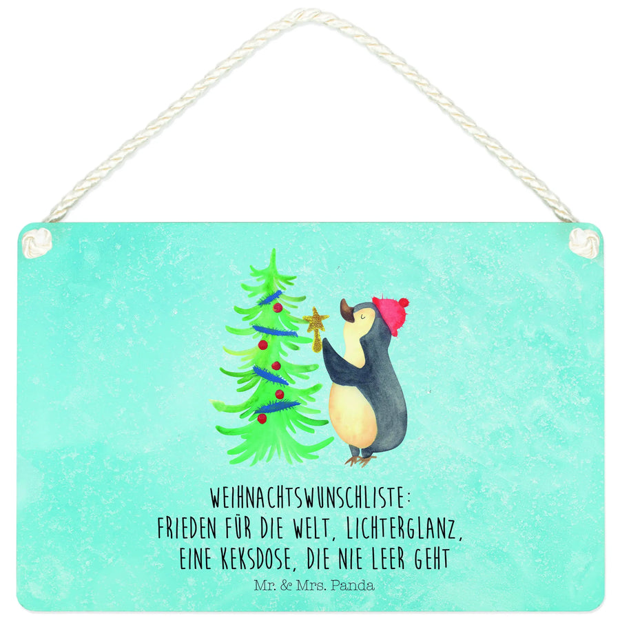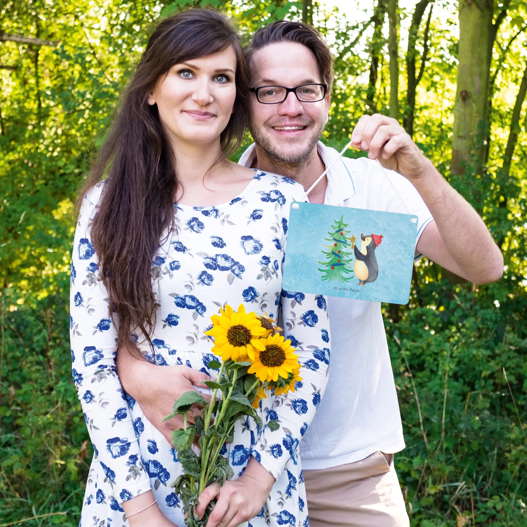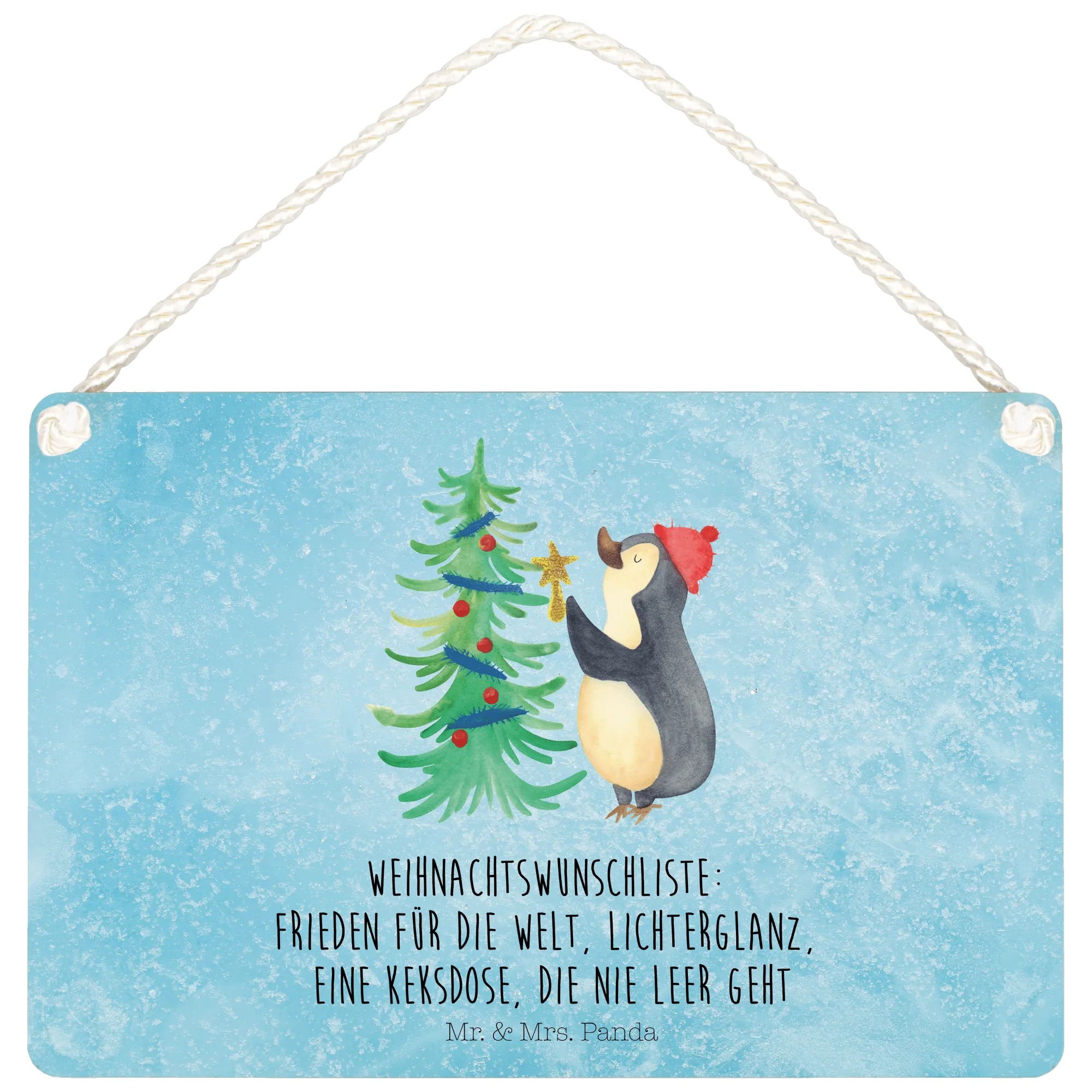 Dekoracyjny znak Pingwin choinka - DIN A4 - z napisem - lodowoniebieski