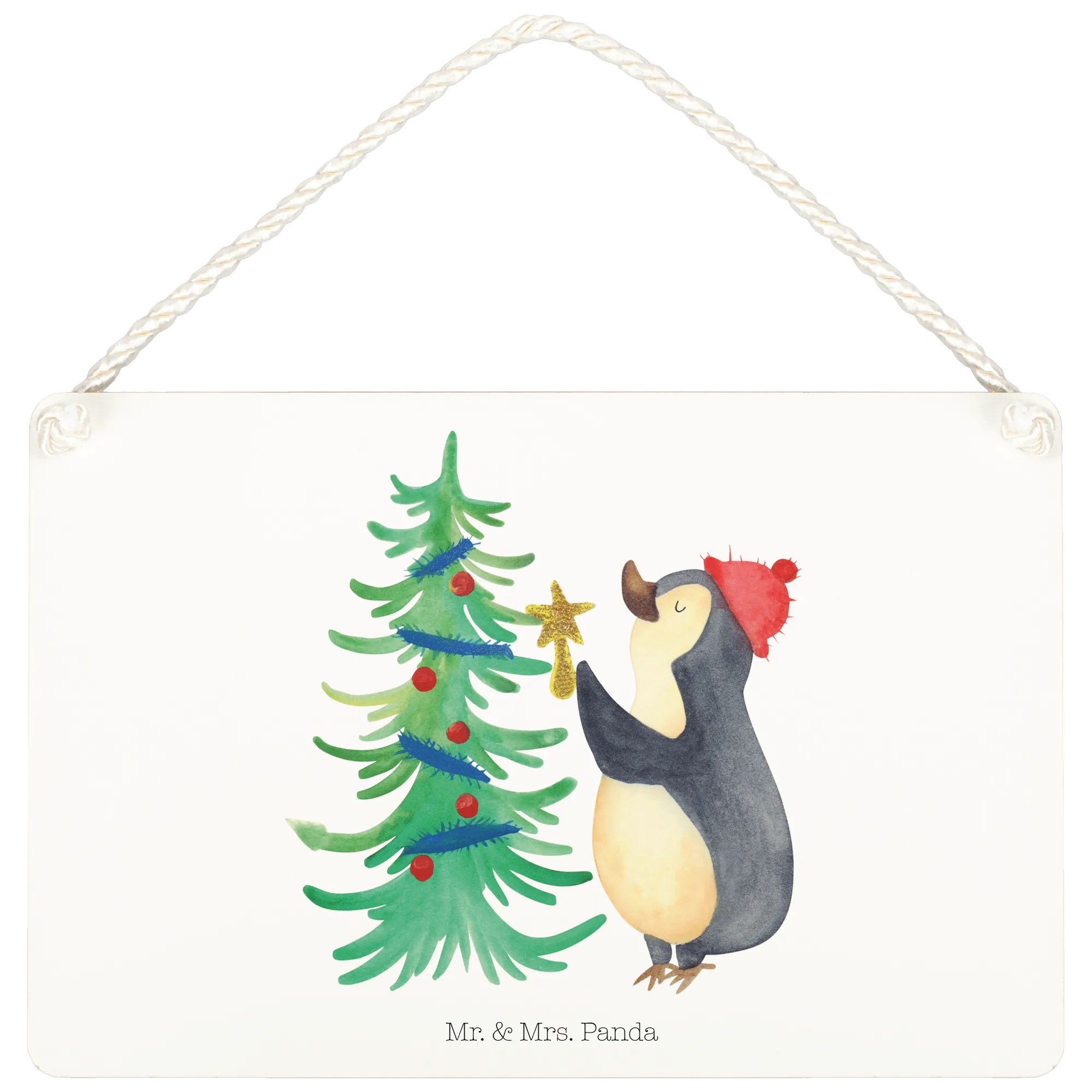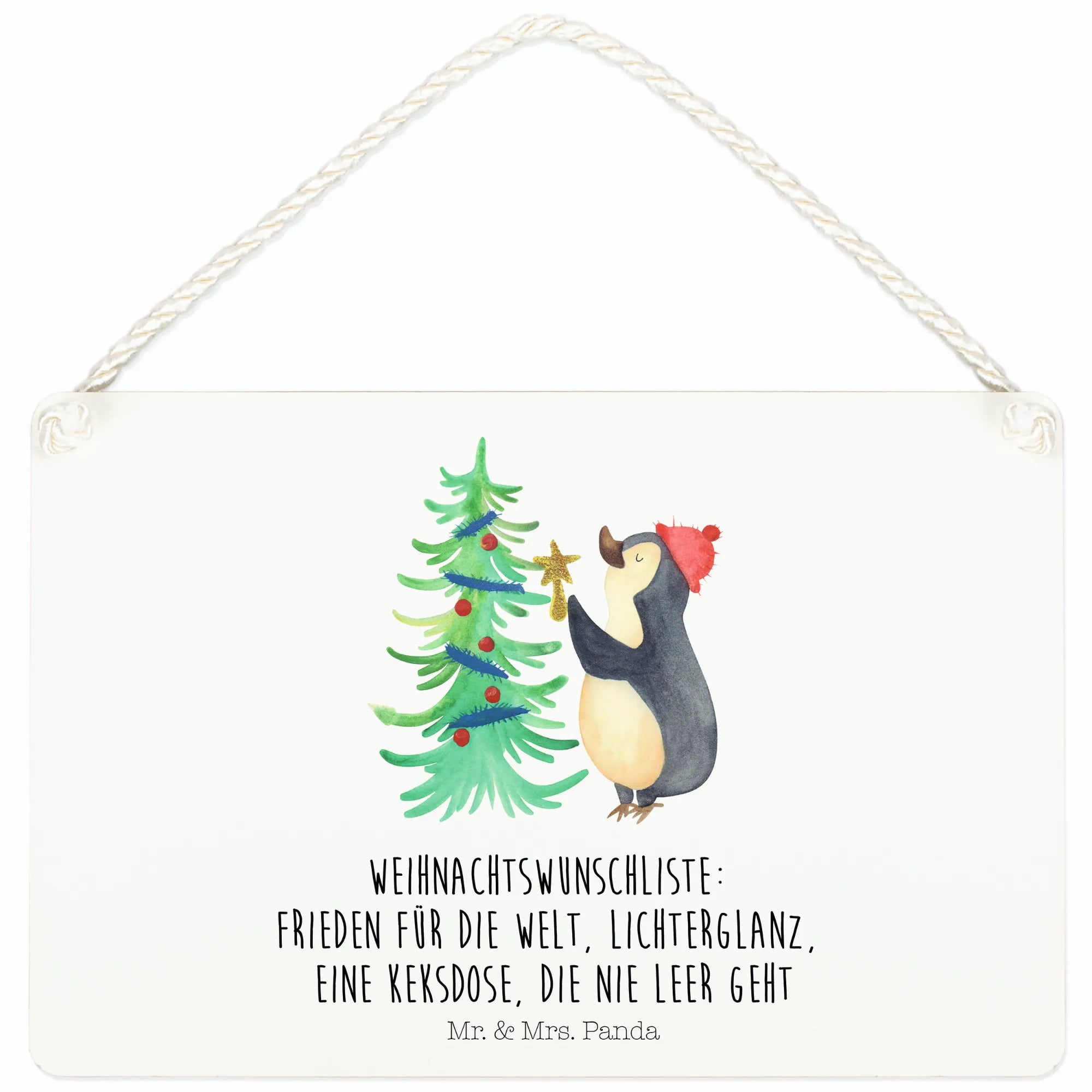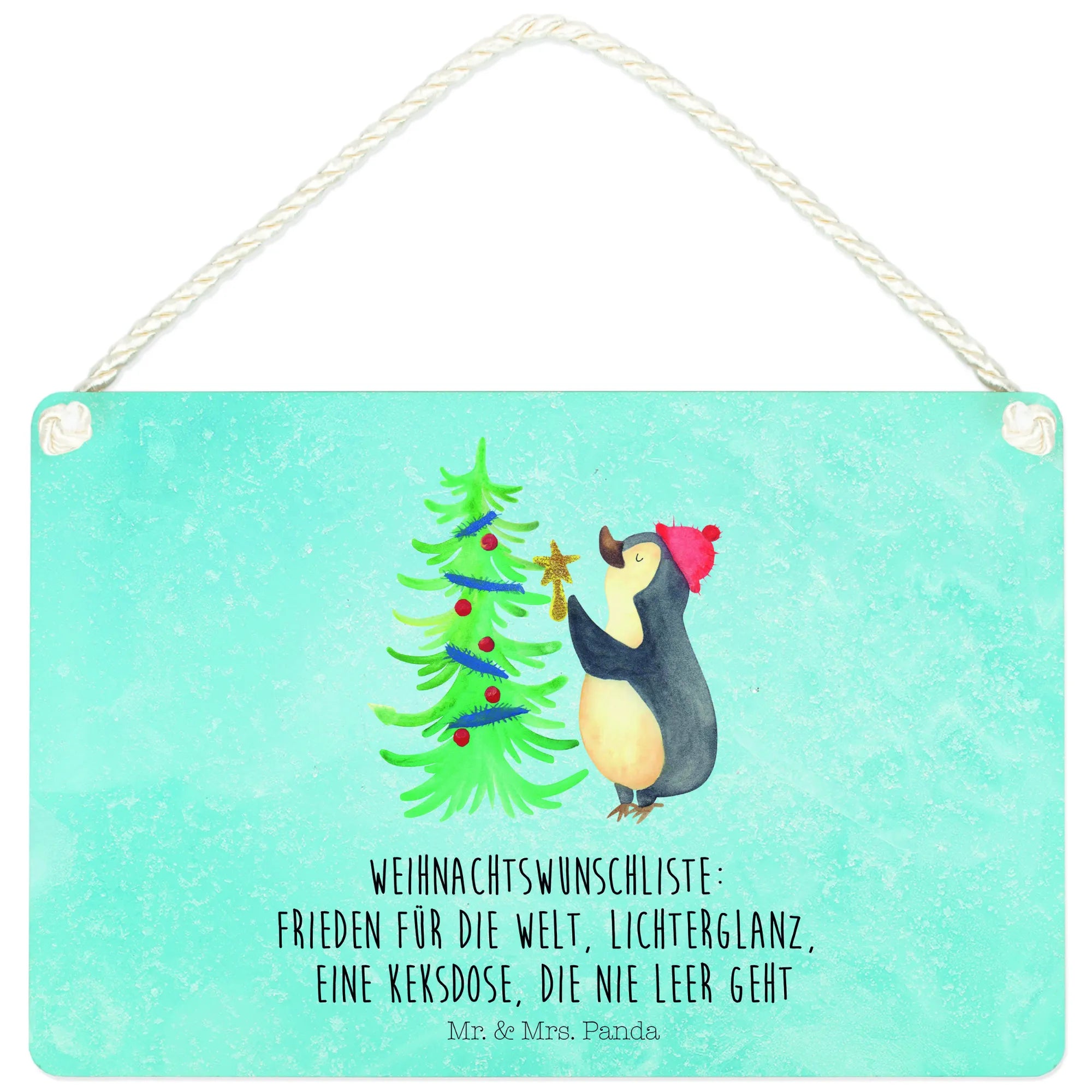 Dekoracyjny znak Pingwin choinka - DIN A4 - z napisem - lodowoniebieski