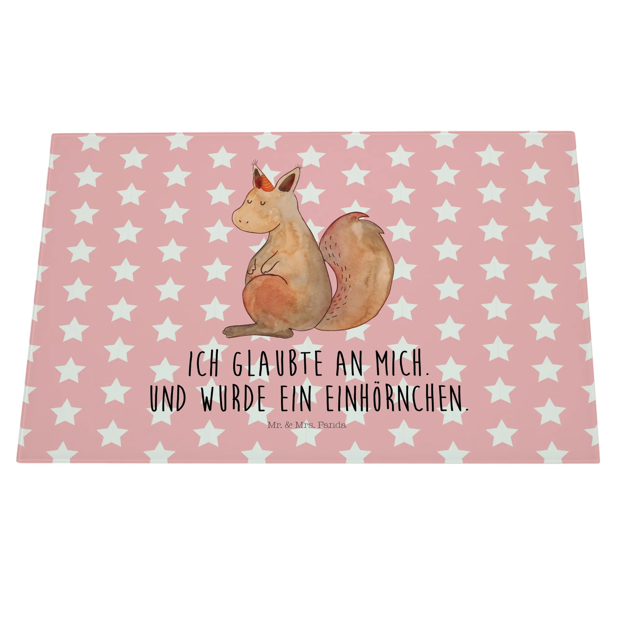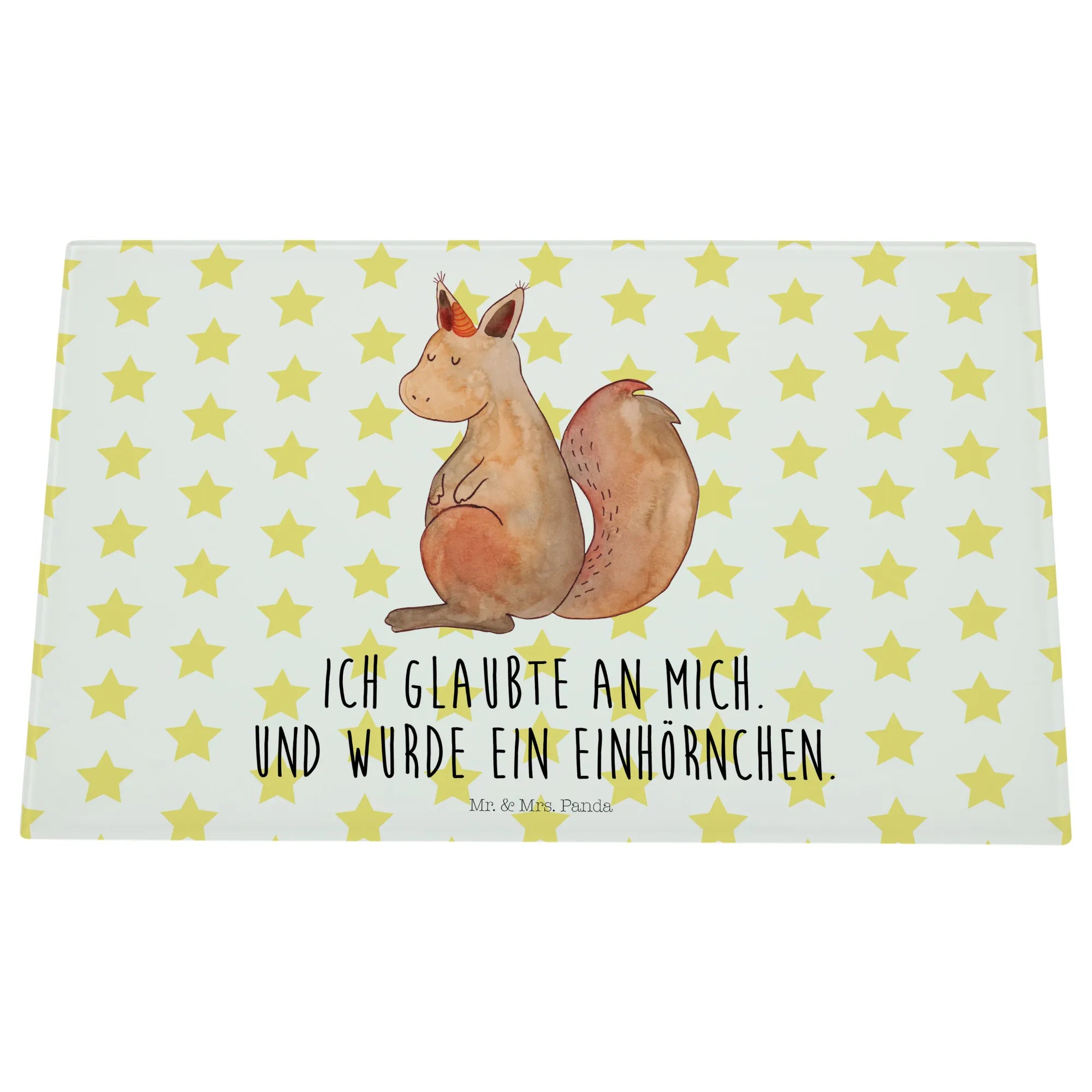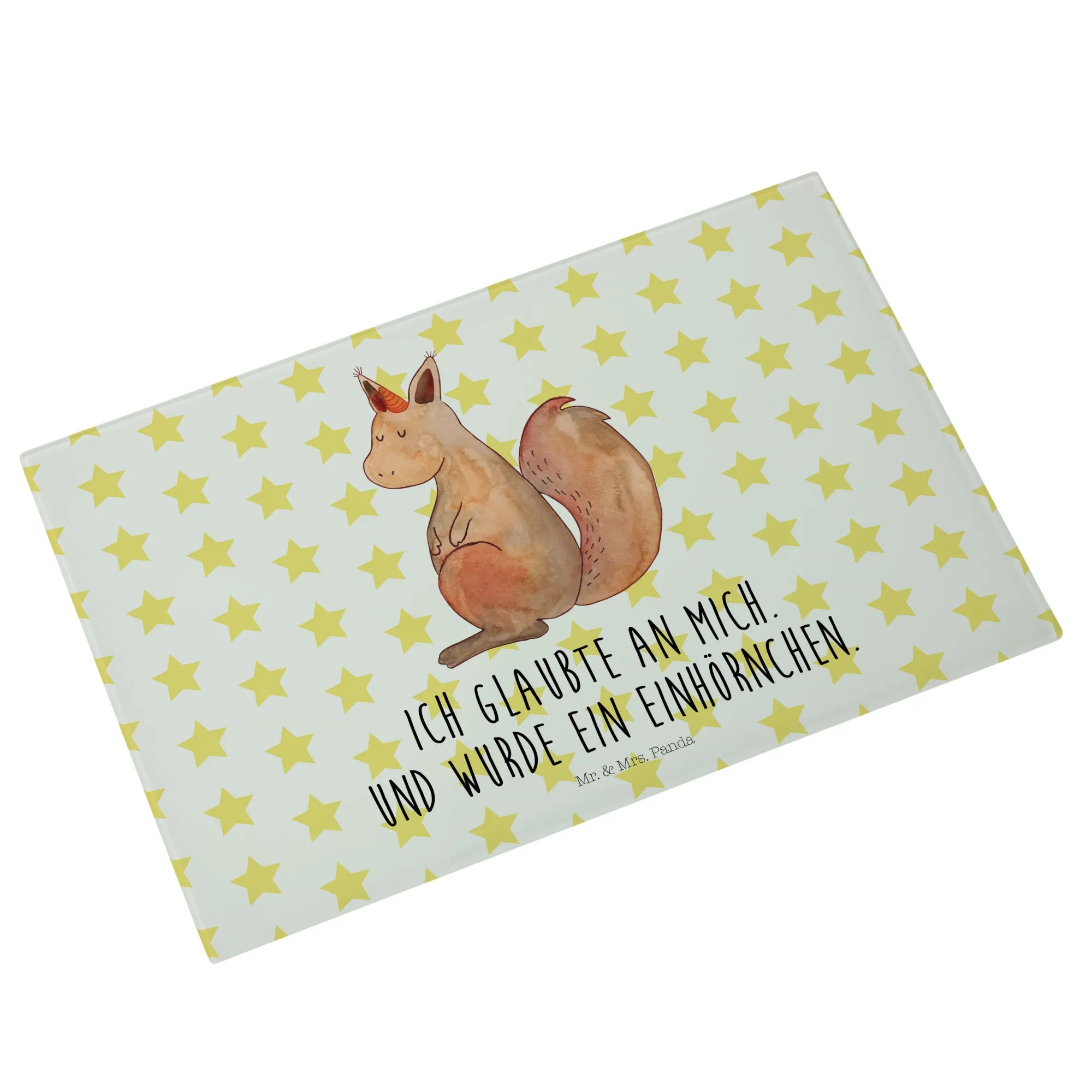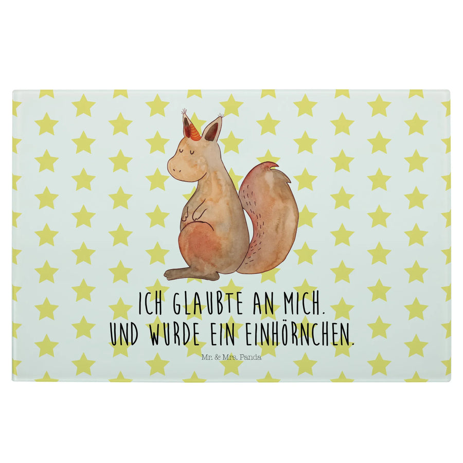 Średnia szklana deska do krojenia Jednorożec wiara - Medium Glas Schneidbrett - z napisem - biały