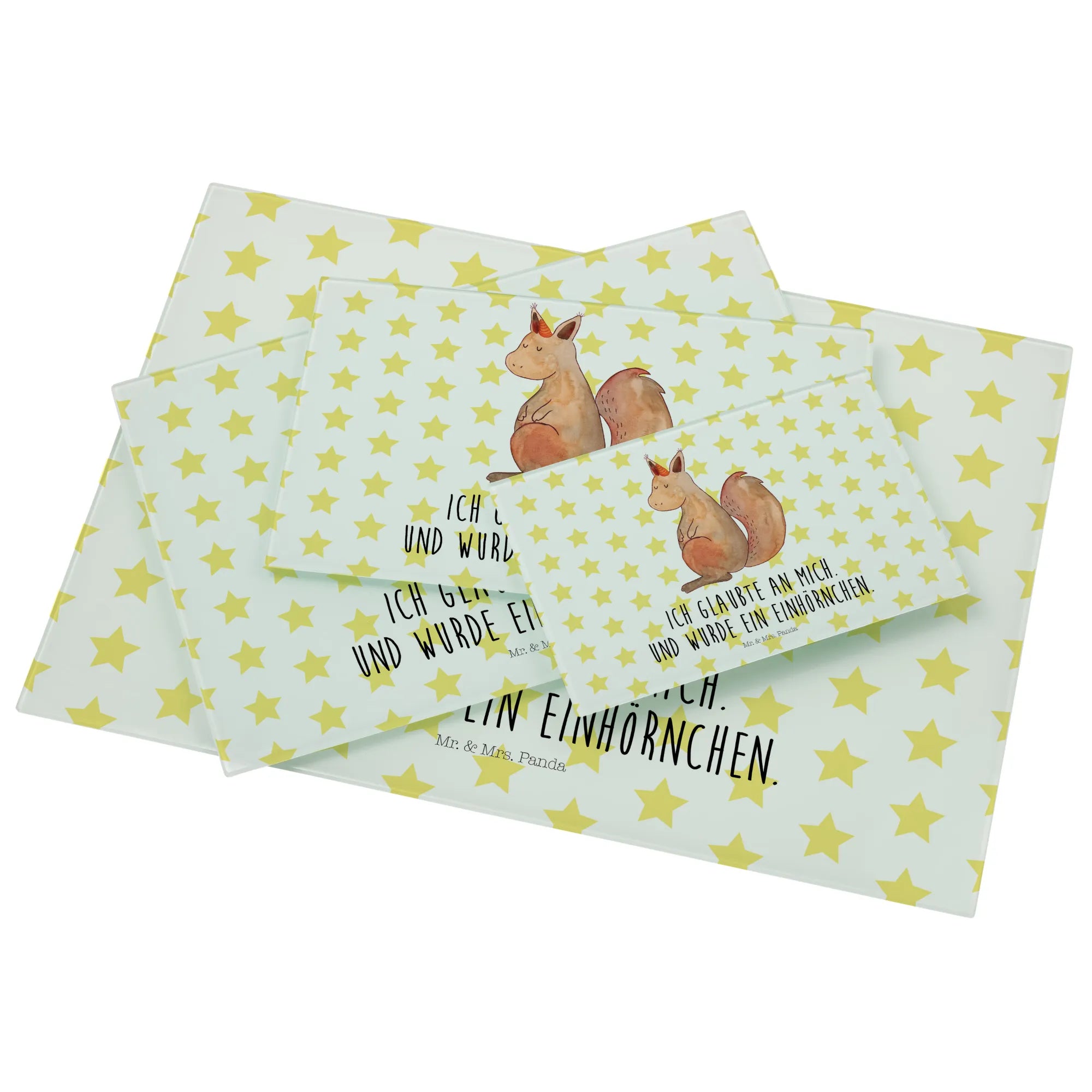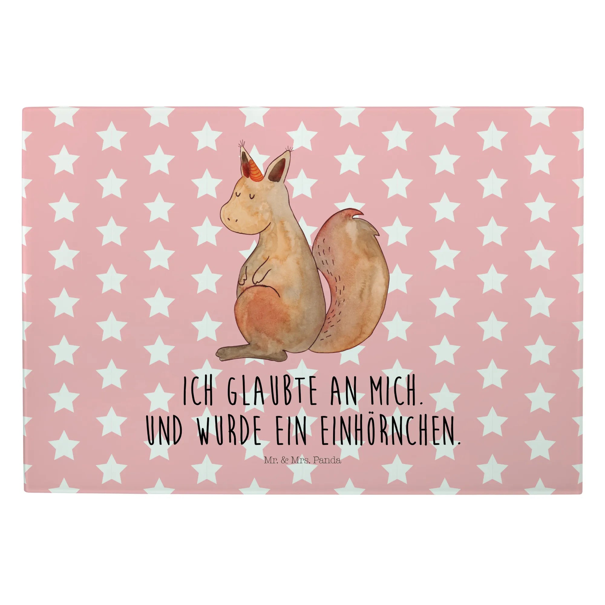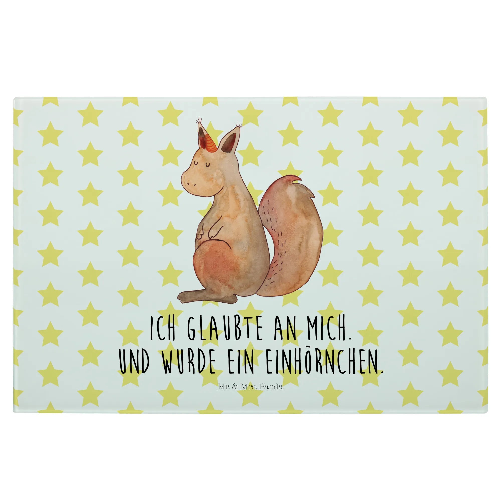 Średnia szklana deska do krojenia Jednorożec wiara - Medium Glas Schneidbrett - z napisem - biały