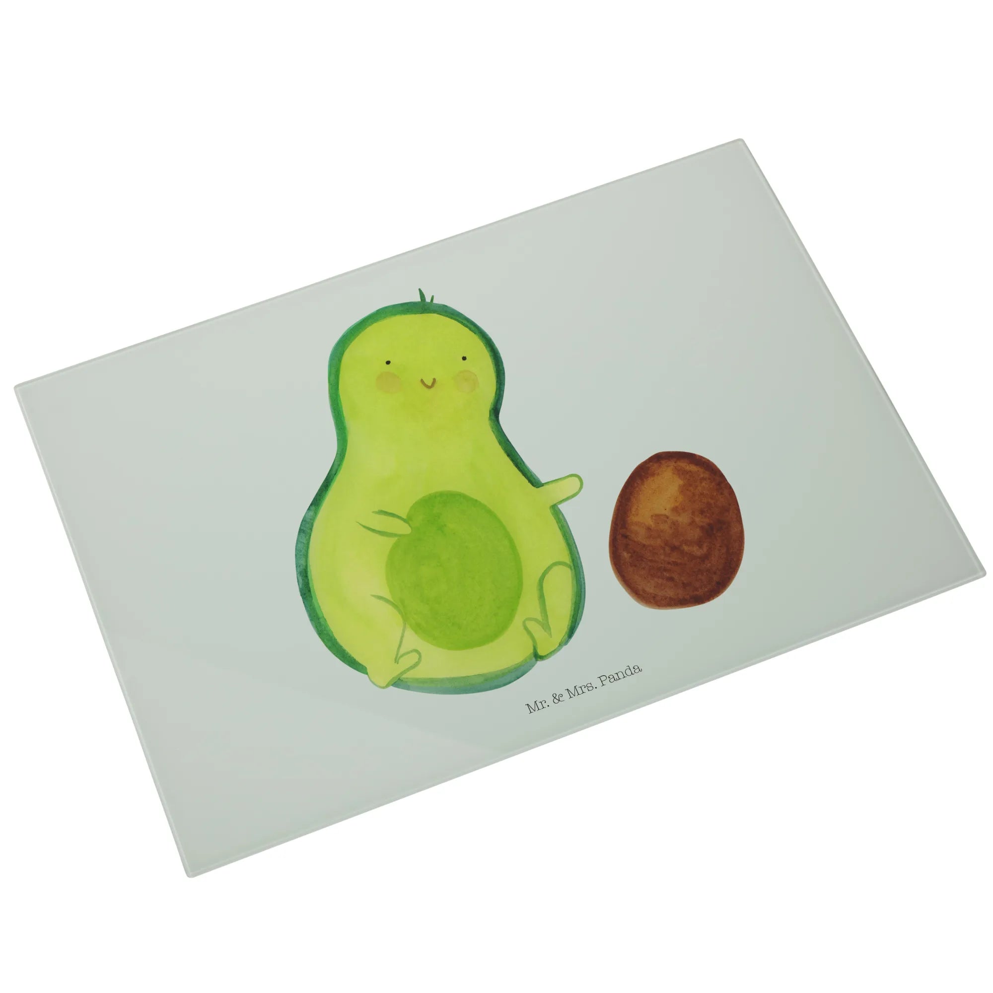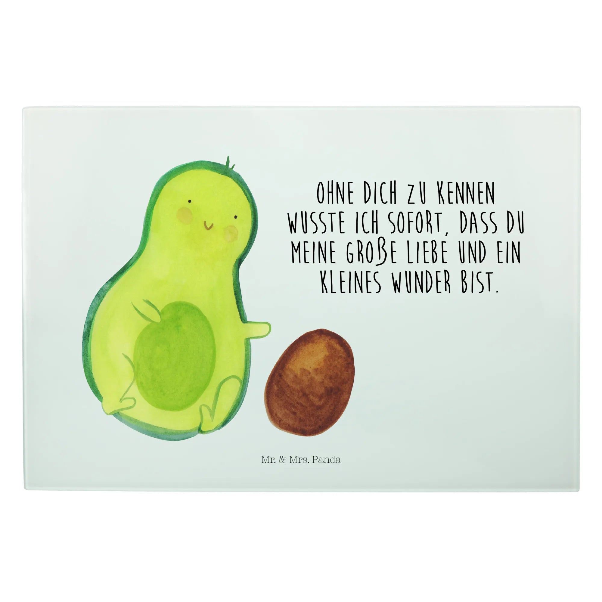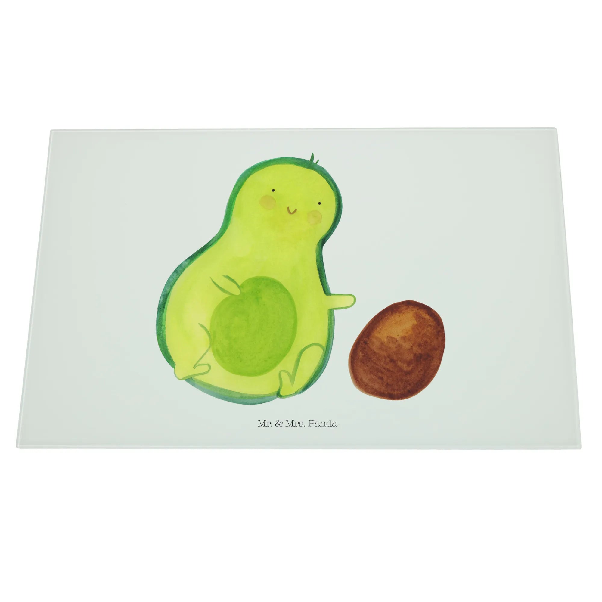 Średnia szklana deska do krojenia Awokado pestka toczy się - Medium Glas Schneidbrett - z napisem - biały
