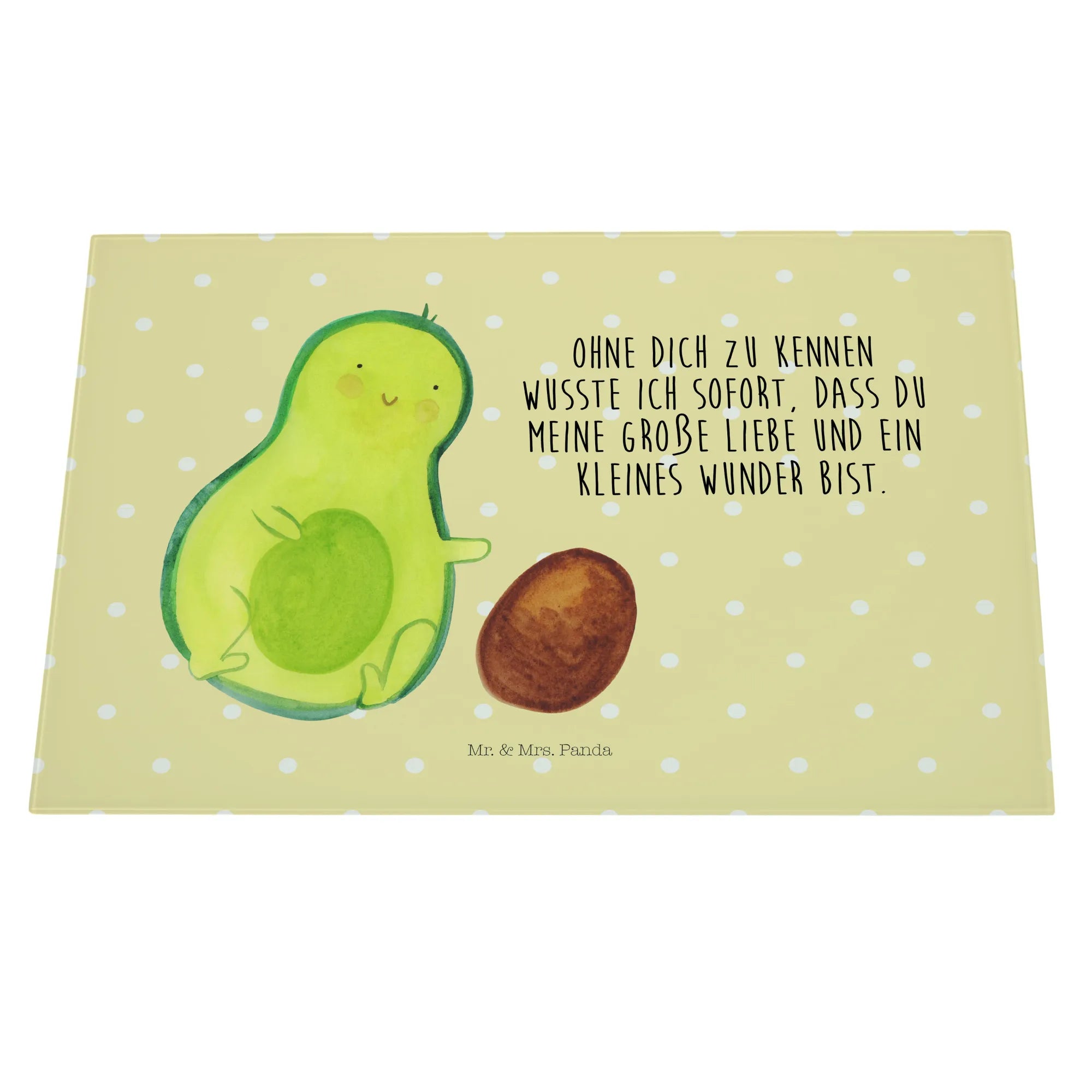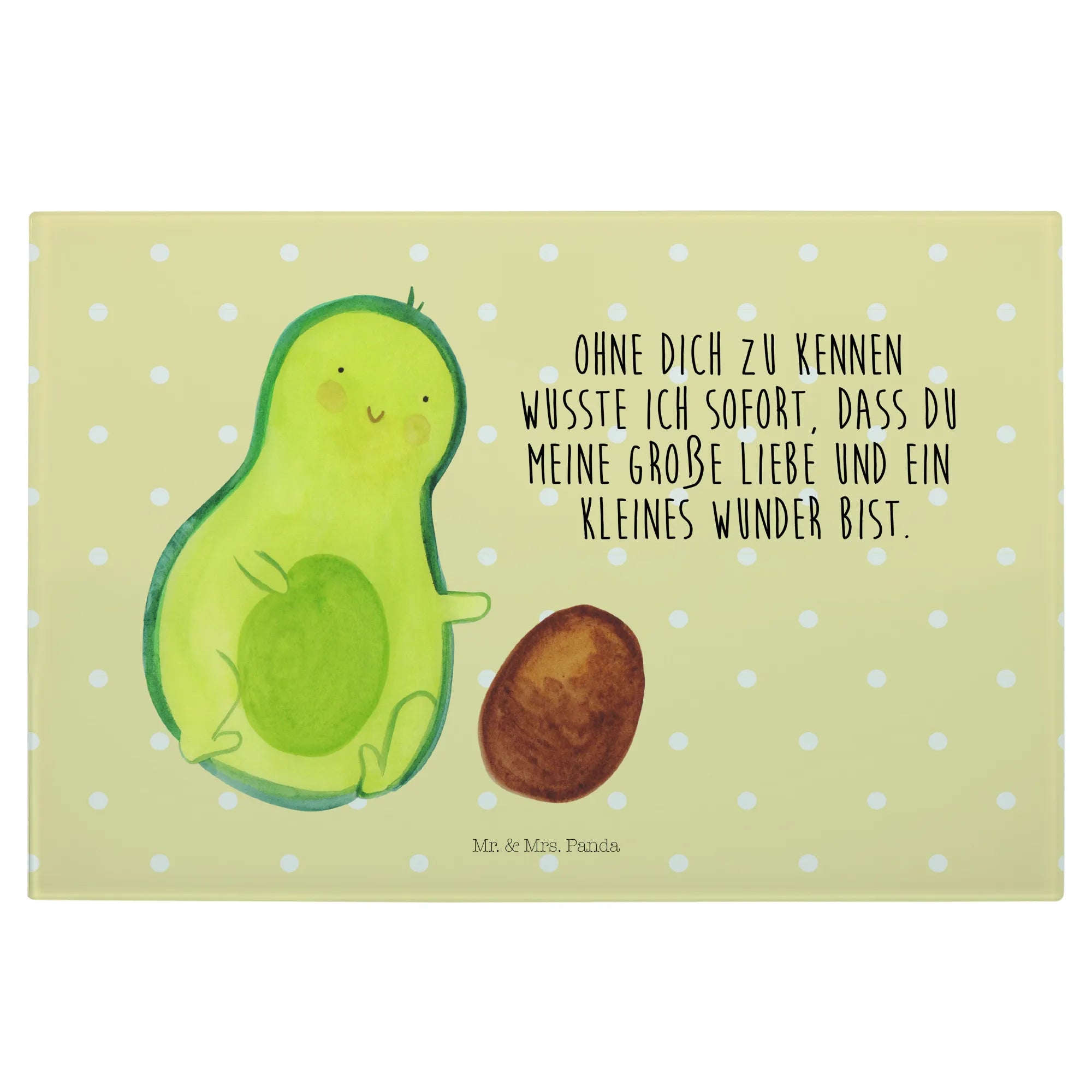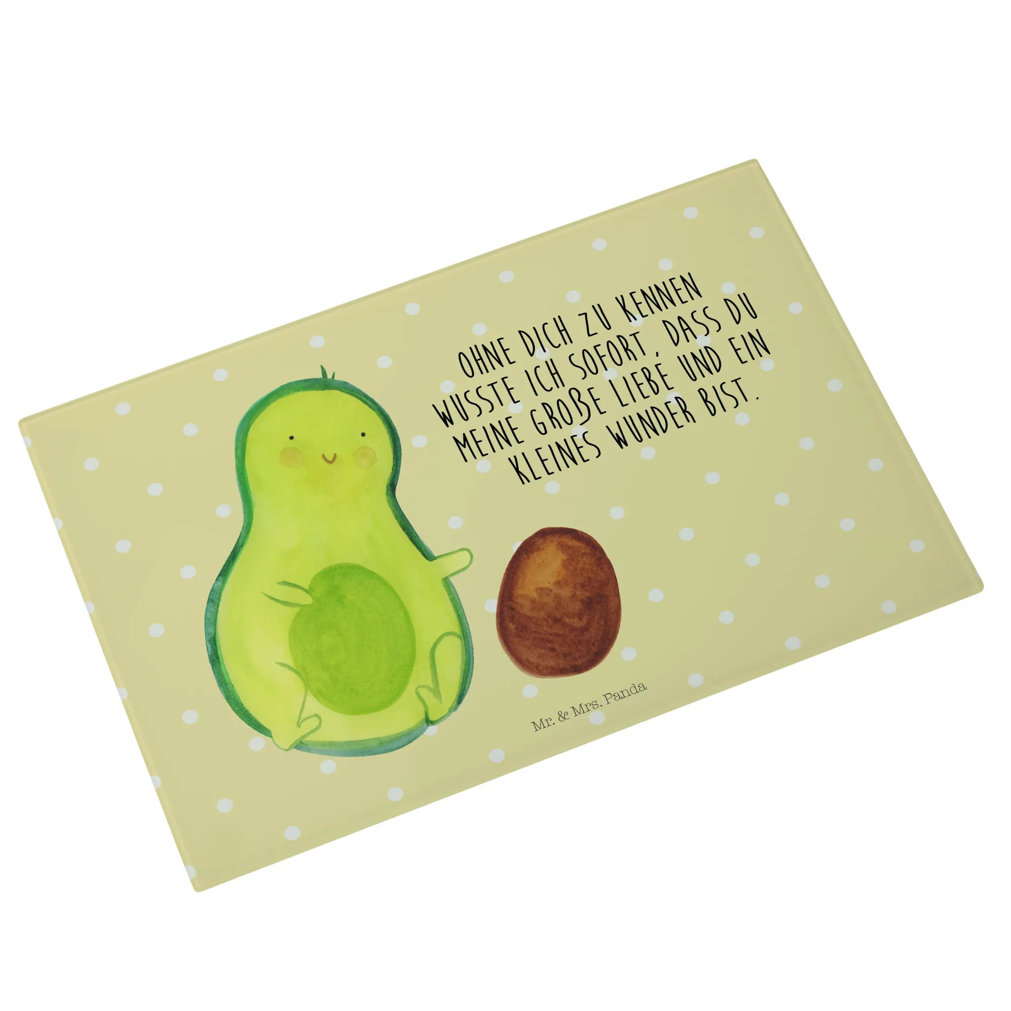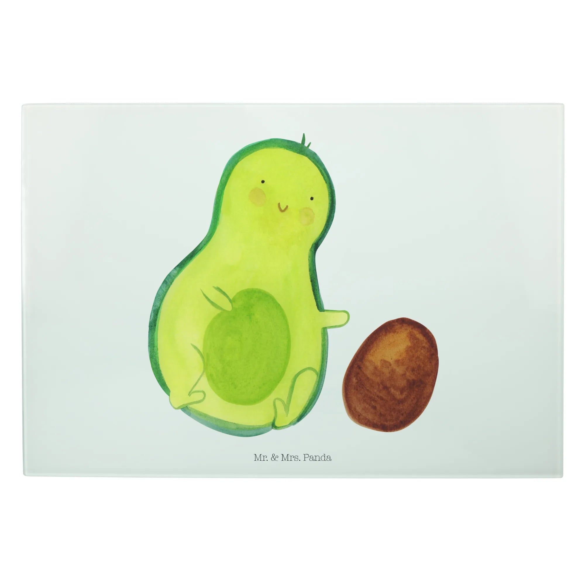 Średnia szklana deska do krojenia Awokado pestka toczy się - Medium Glas Schneidbrett - z napisem - biały