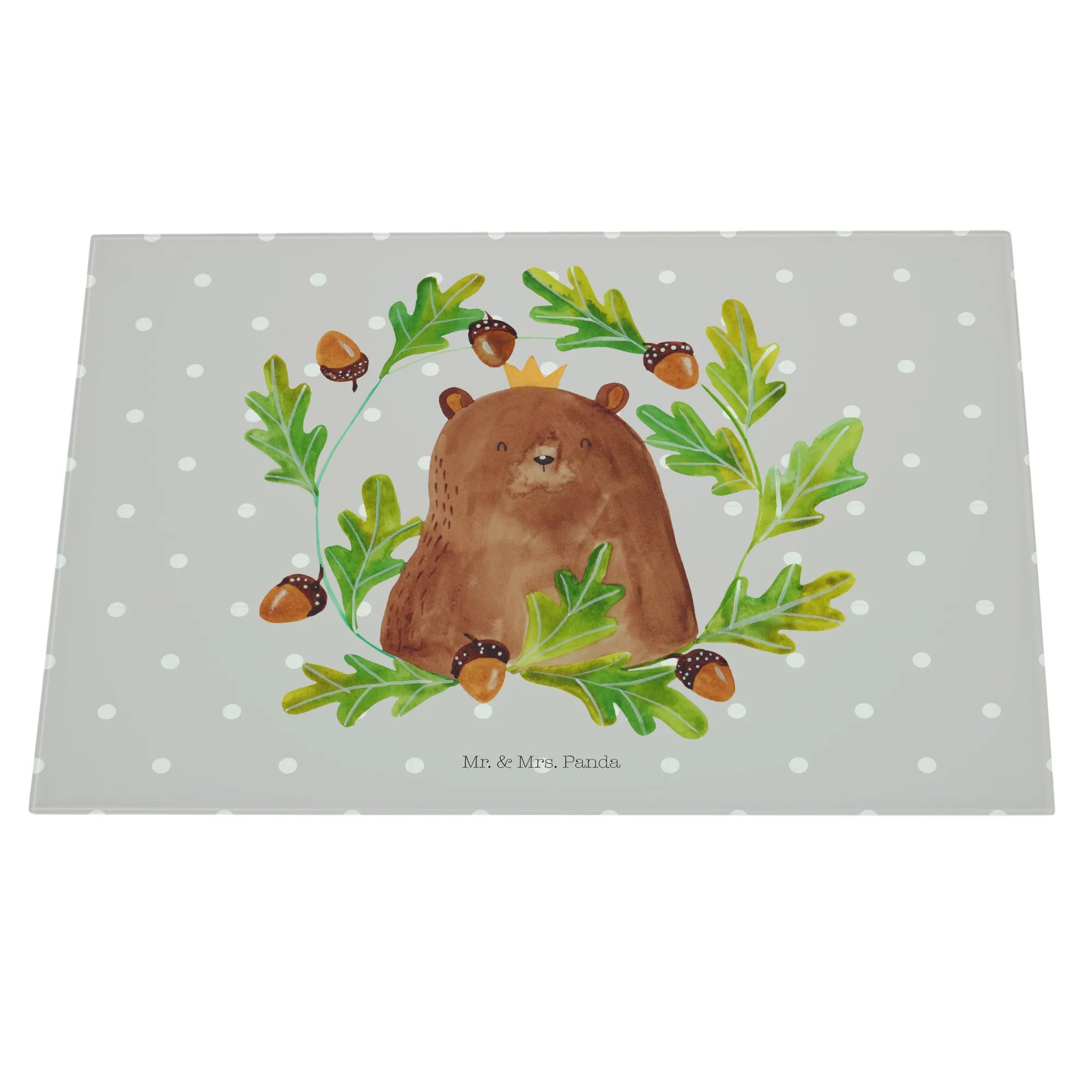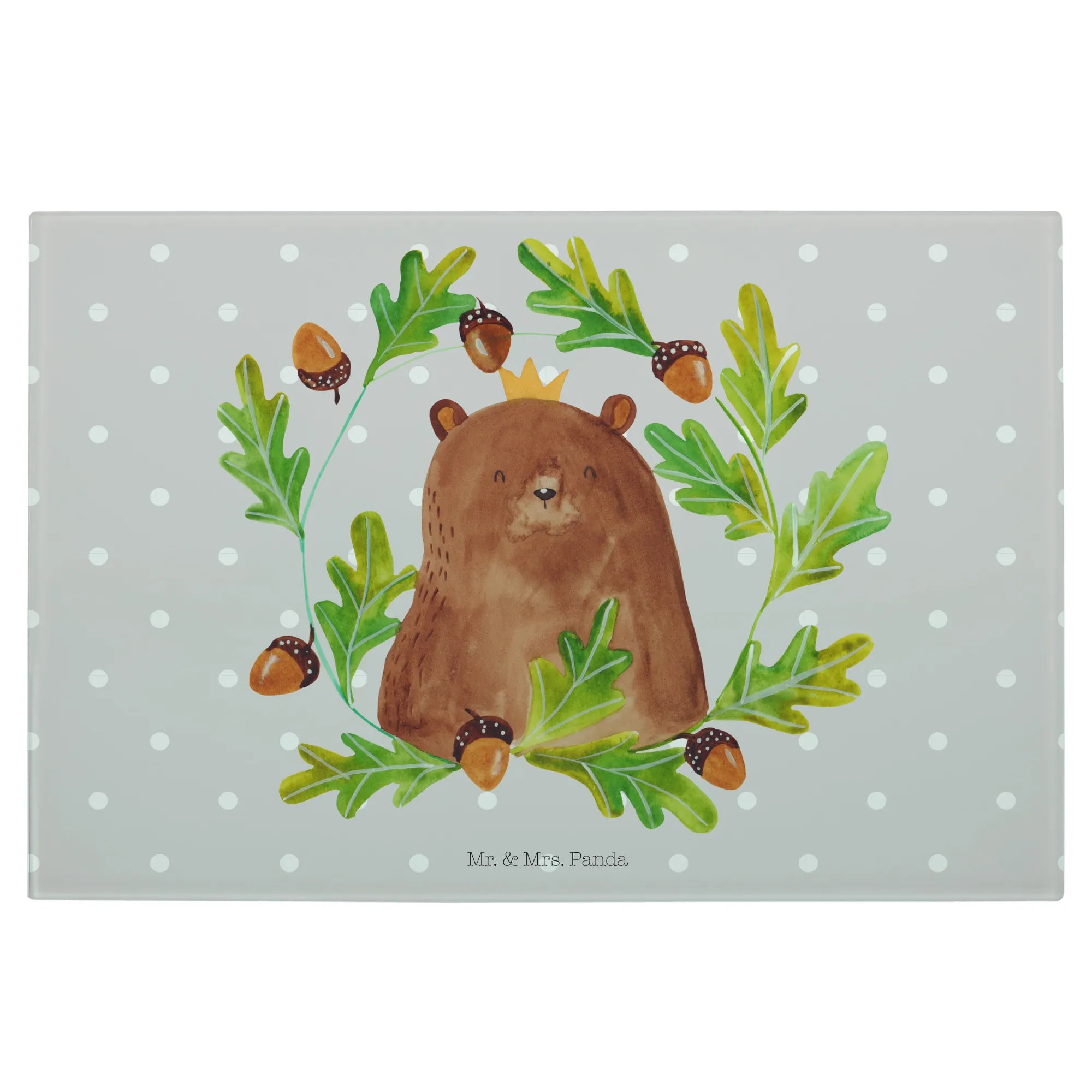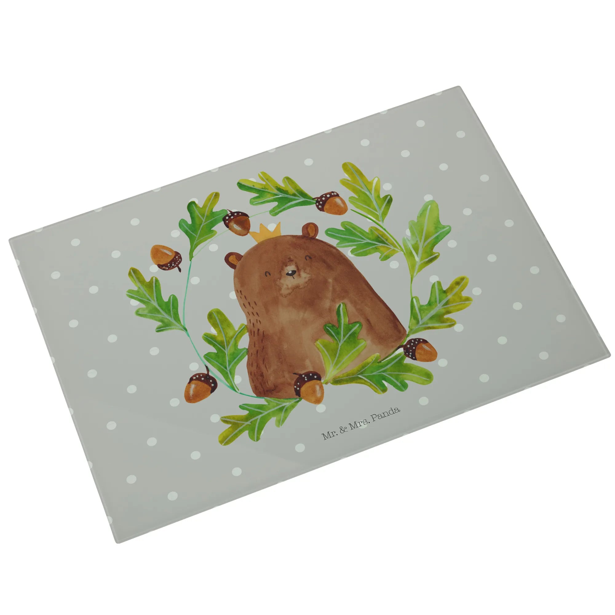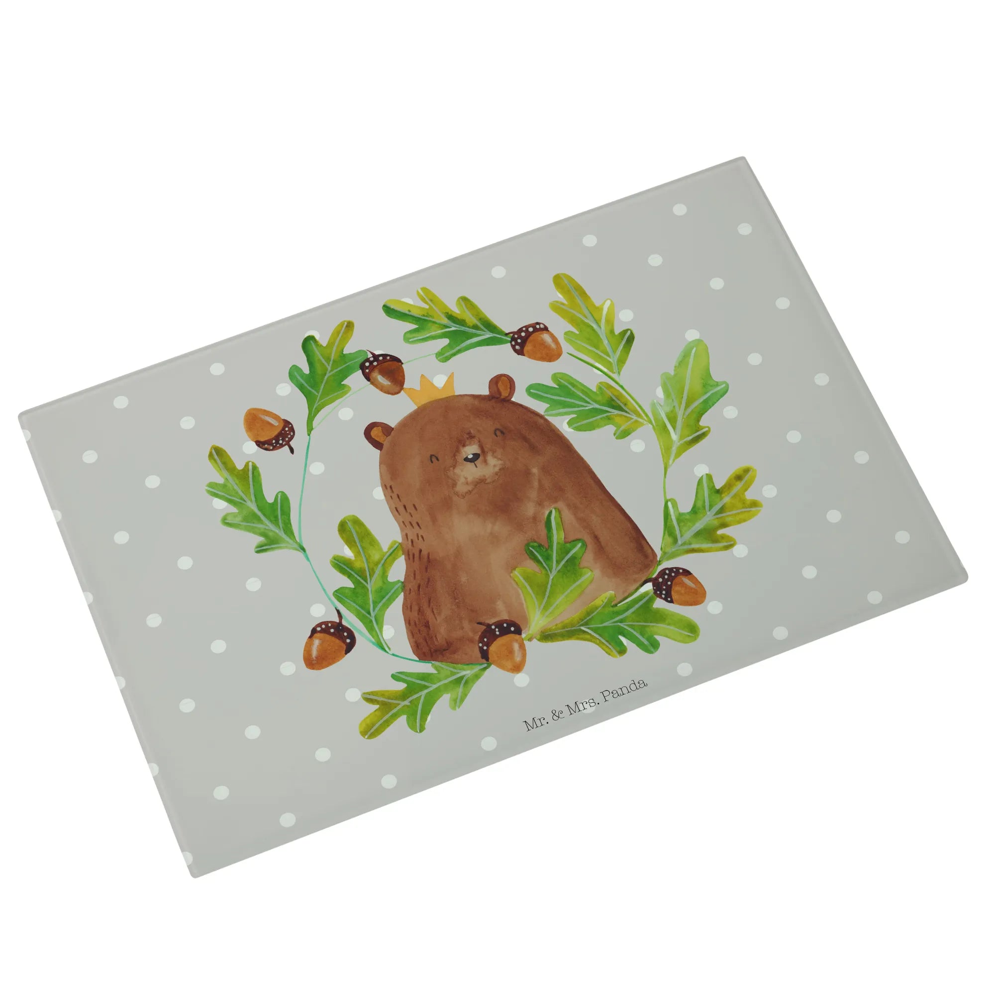 XL Szklana Deska do Krojenia Niedźwiedź król - Średnia szklana deska do krojenia - z napisem - Pastelowy szary