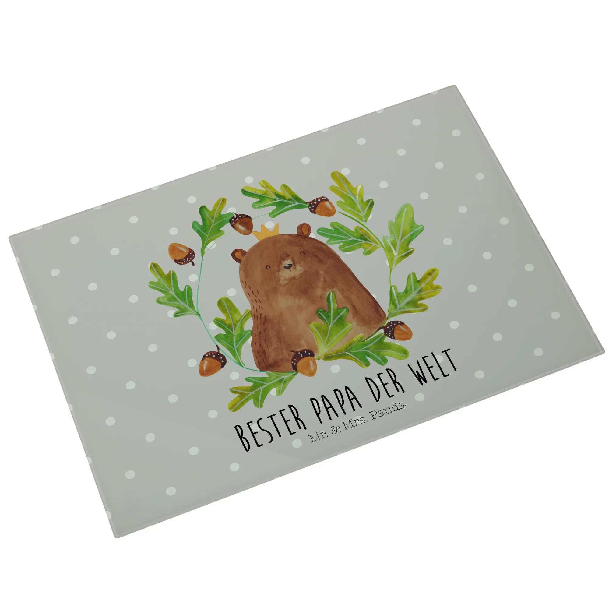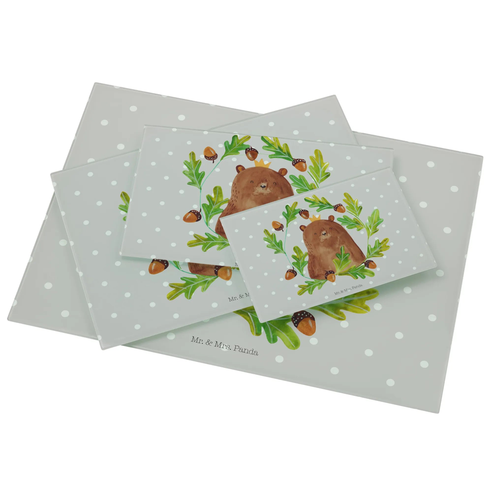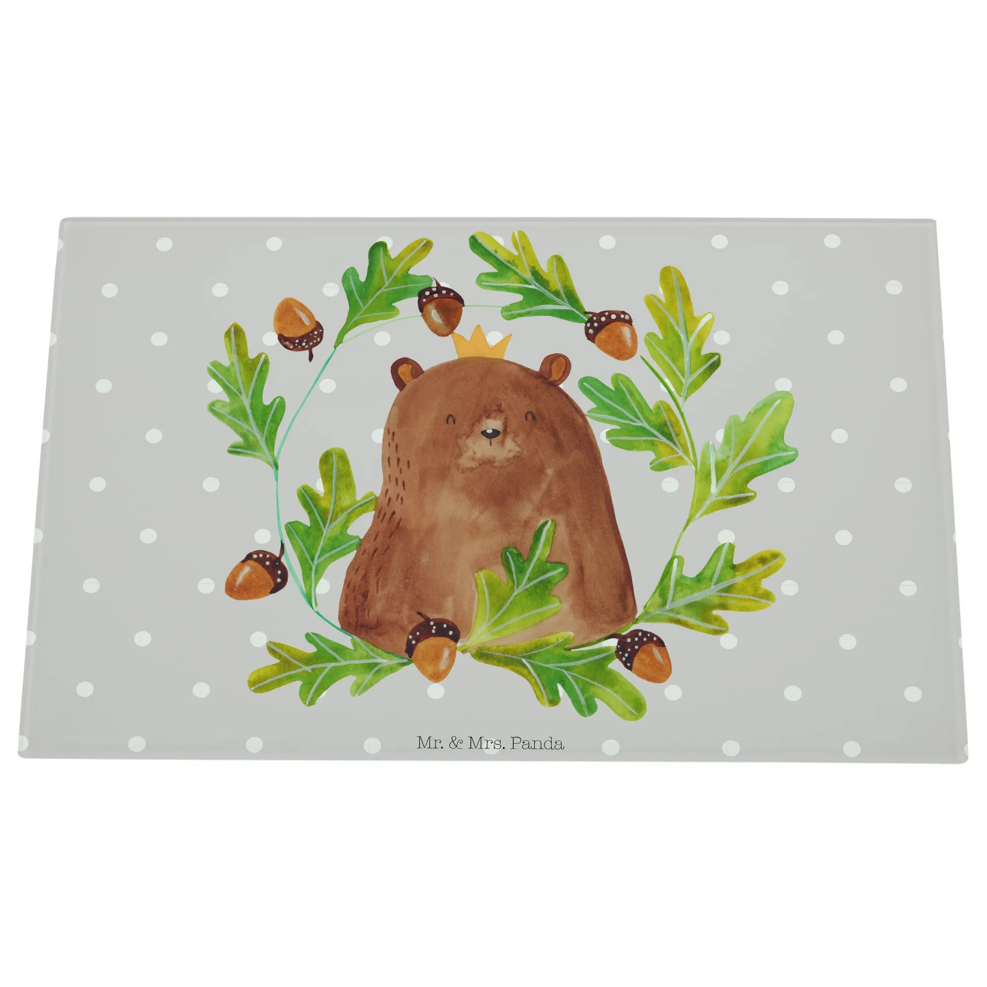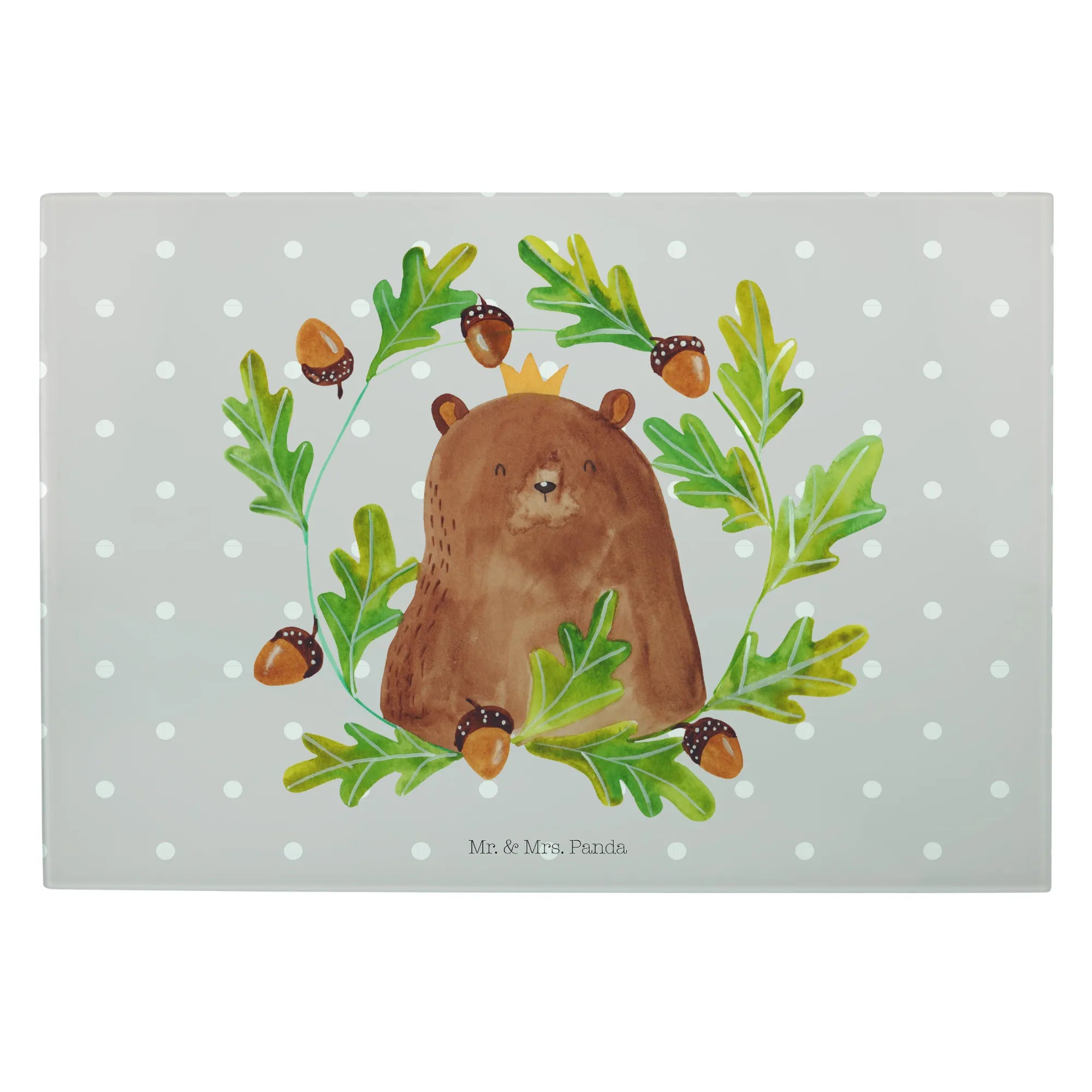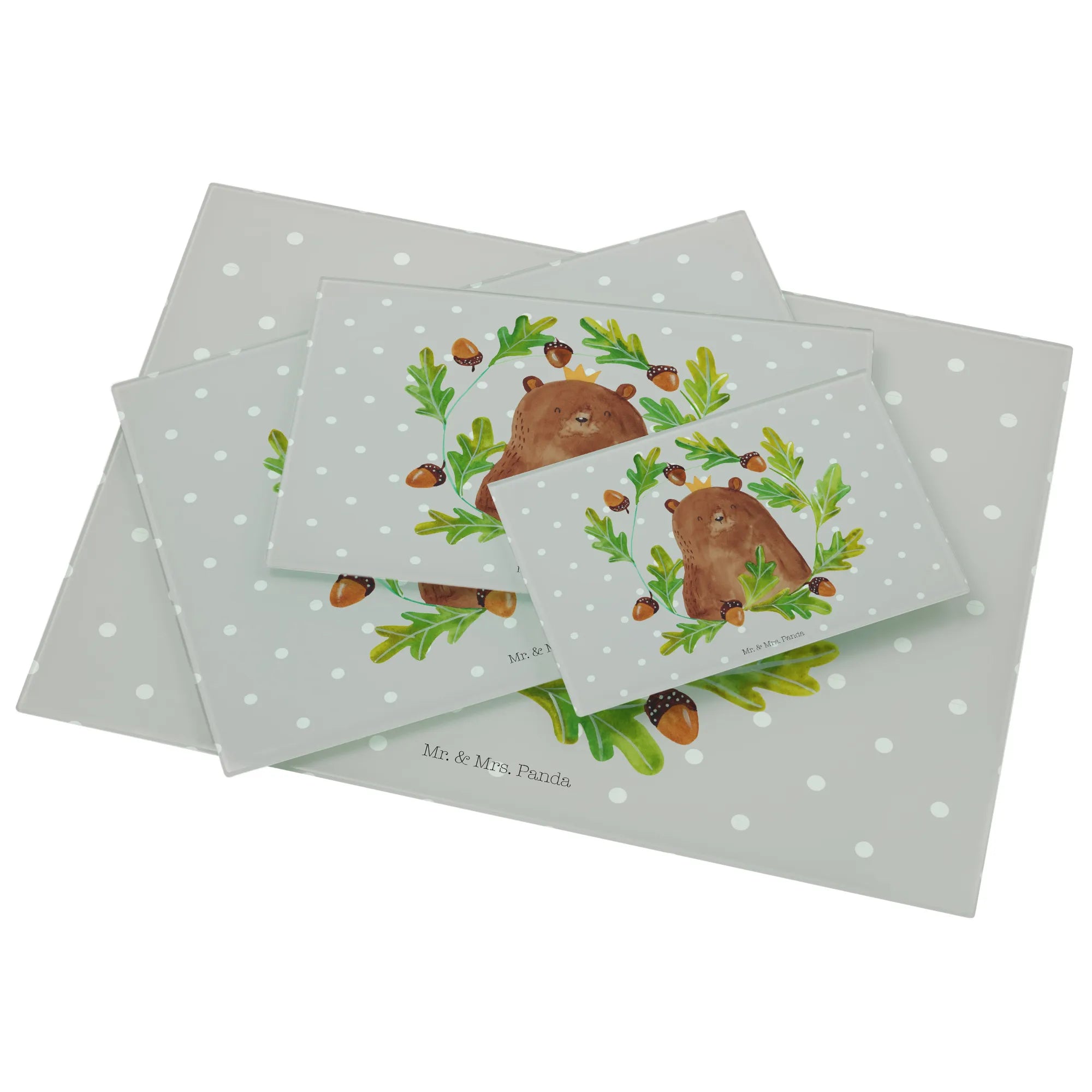 XL Szklana Deska do Krojenia Niedźwiedź król - Średnia szklana deska do krojenia - z napisem - Pastelowy szary