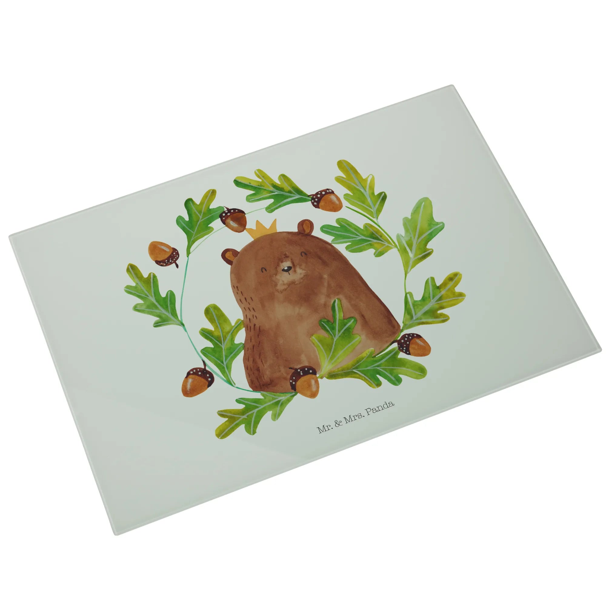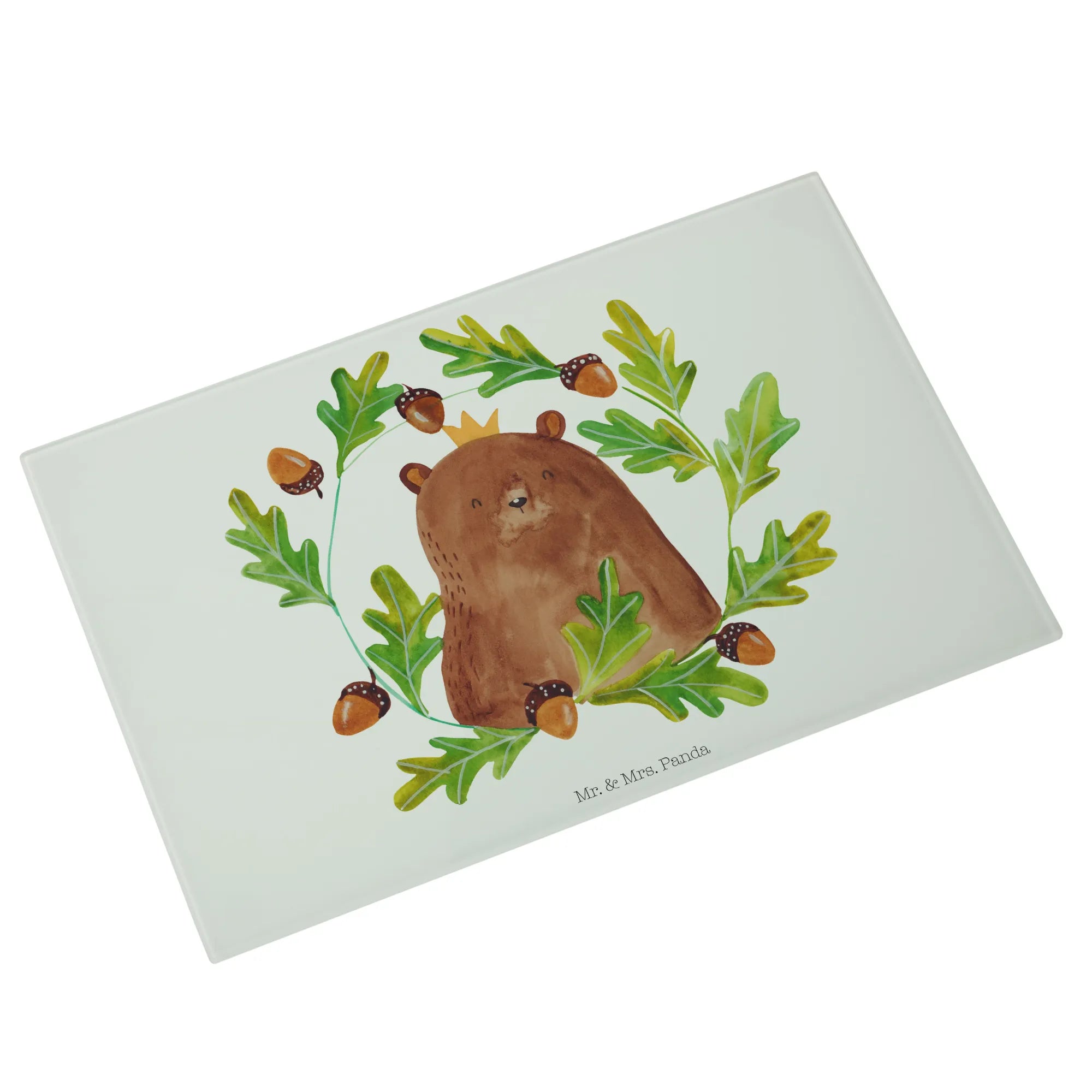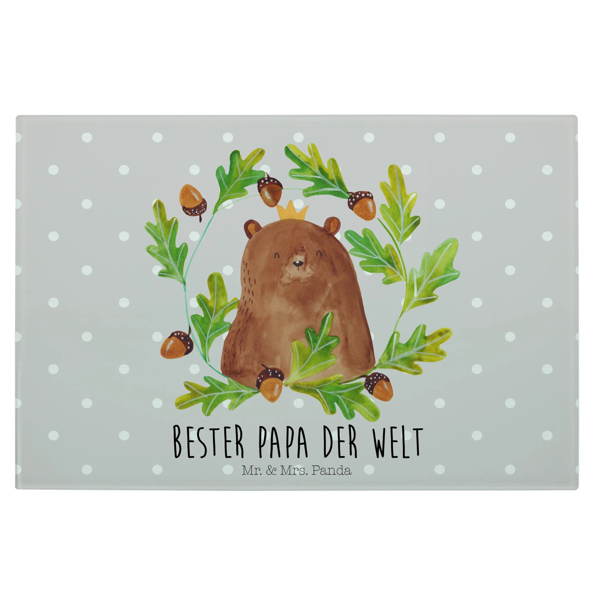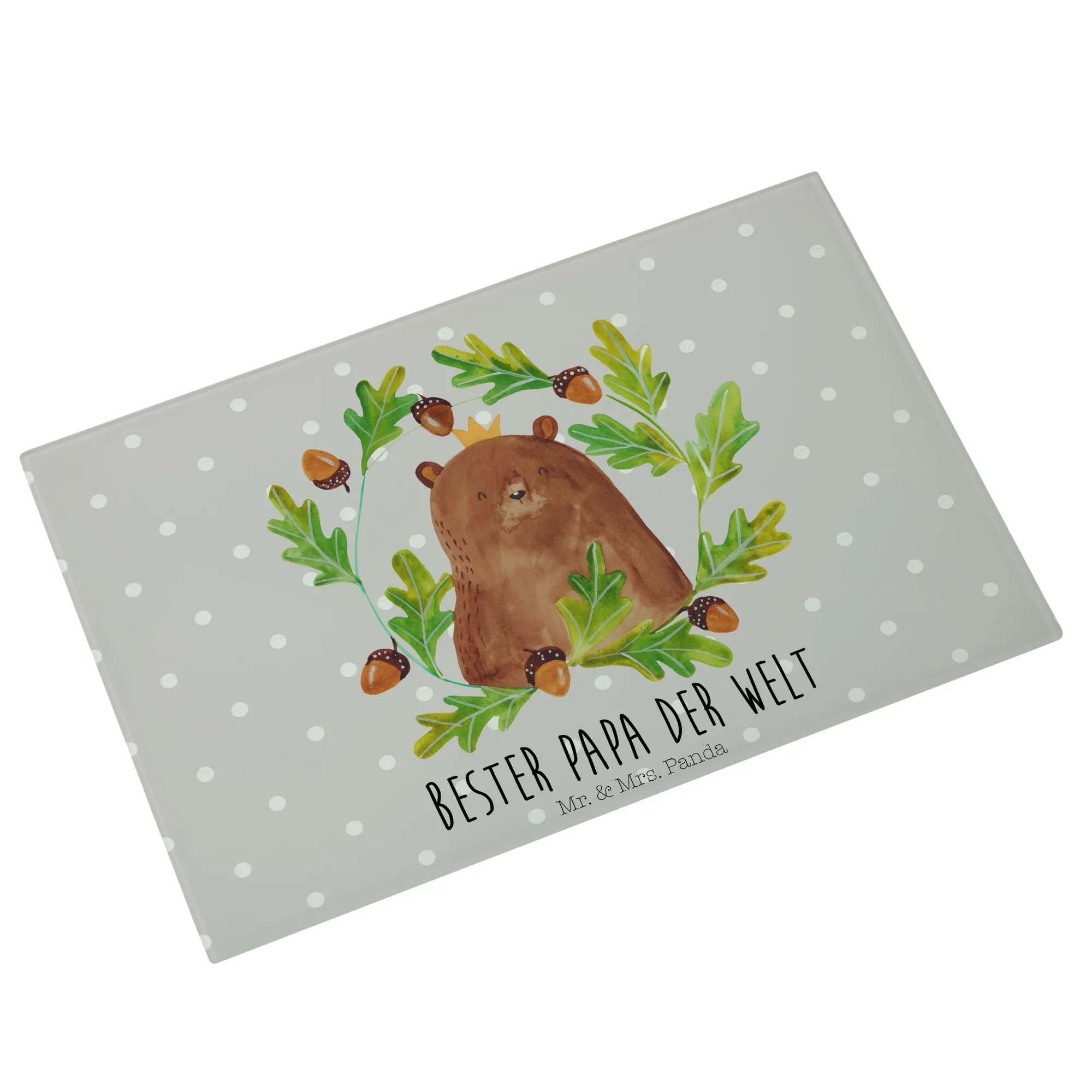 XL Szklana Deska do Krojenia Niedźwiedź król - Średnia szklana deska do krojenia - z napisem - Pastelowy szary