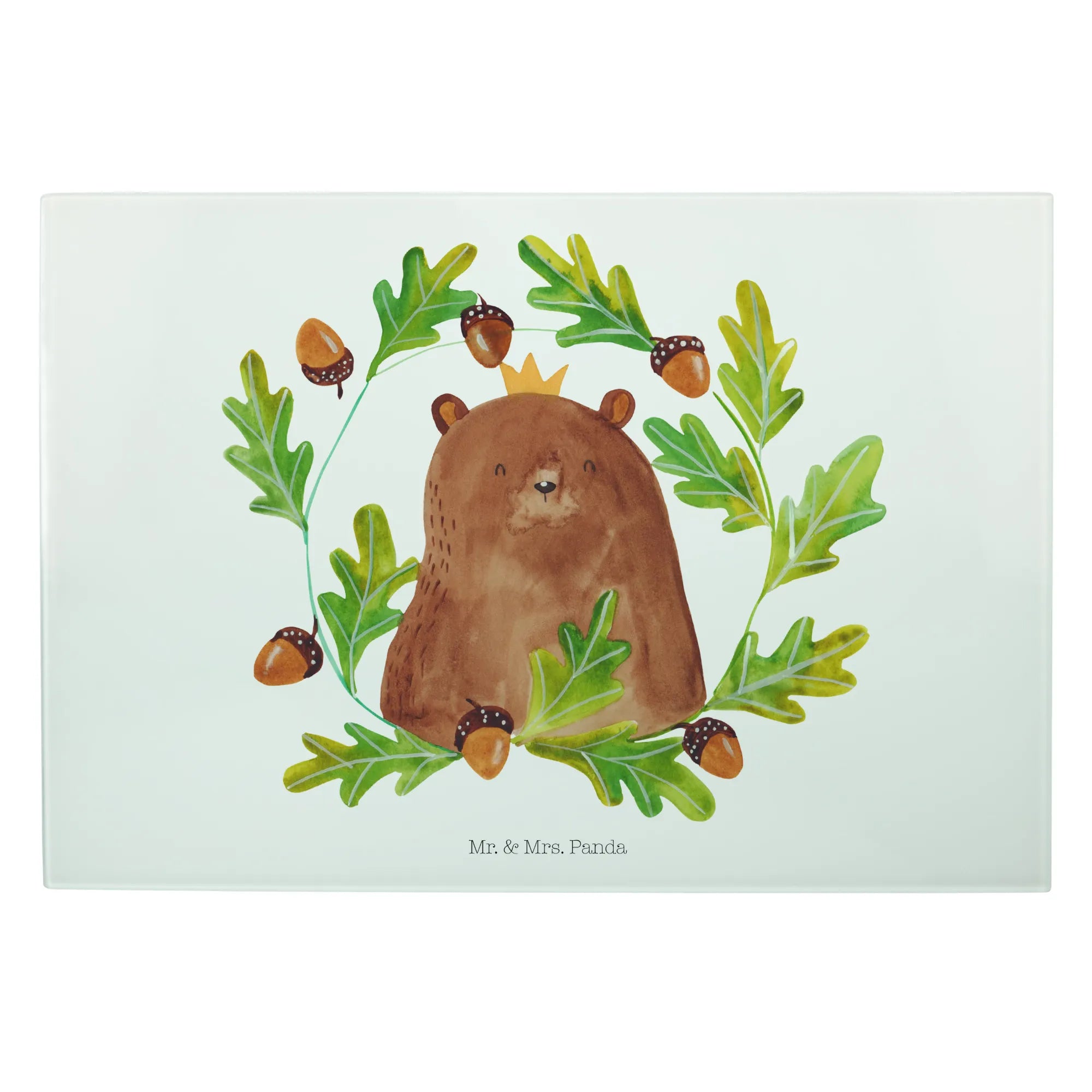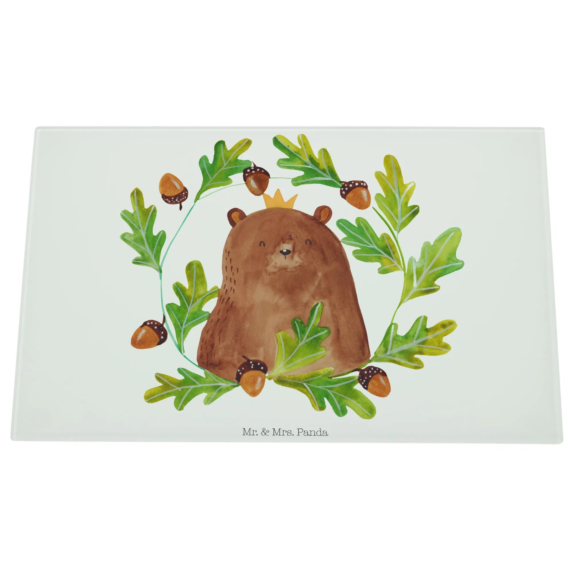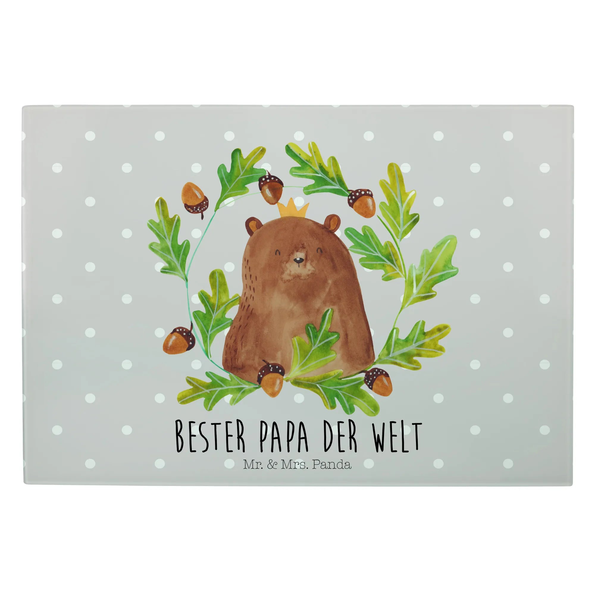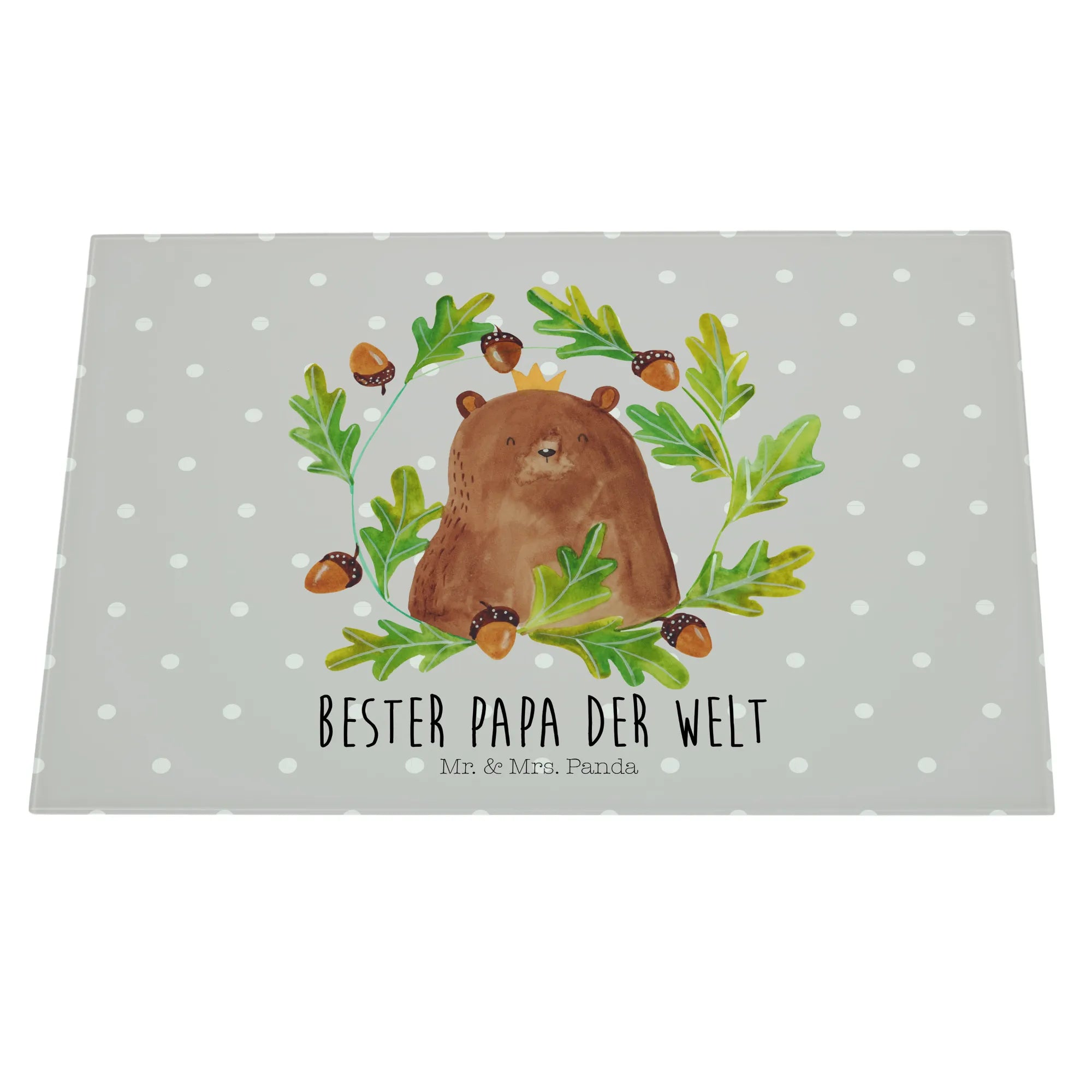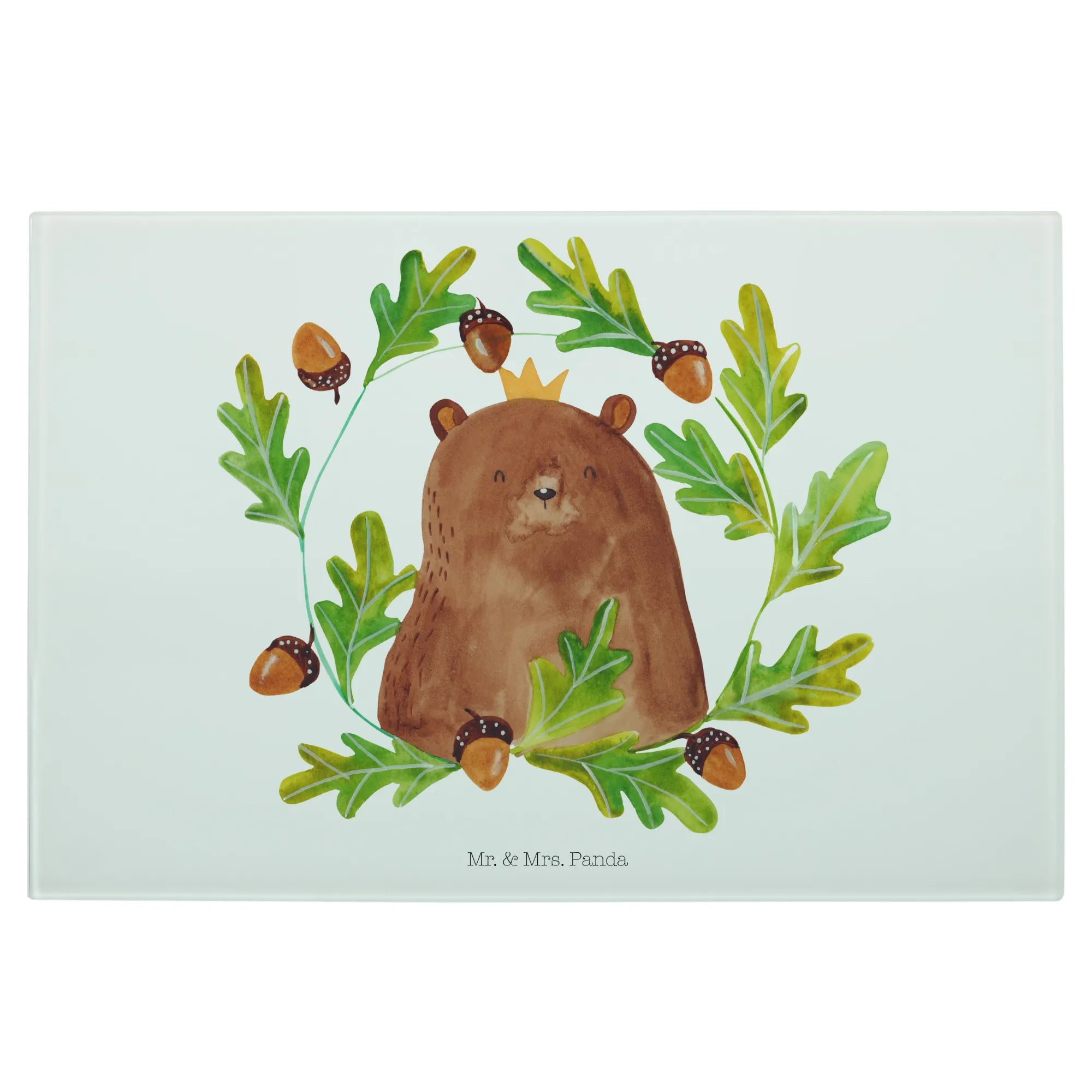 XL Szklana Deska do Krojenia Niedźwiedź król - Średnia szklana deska do krojenia - z napisem - Pastelowy szary