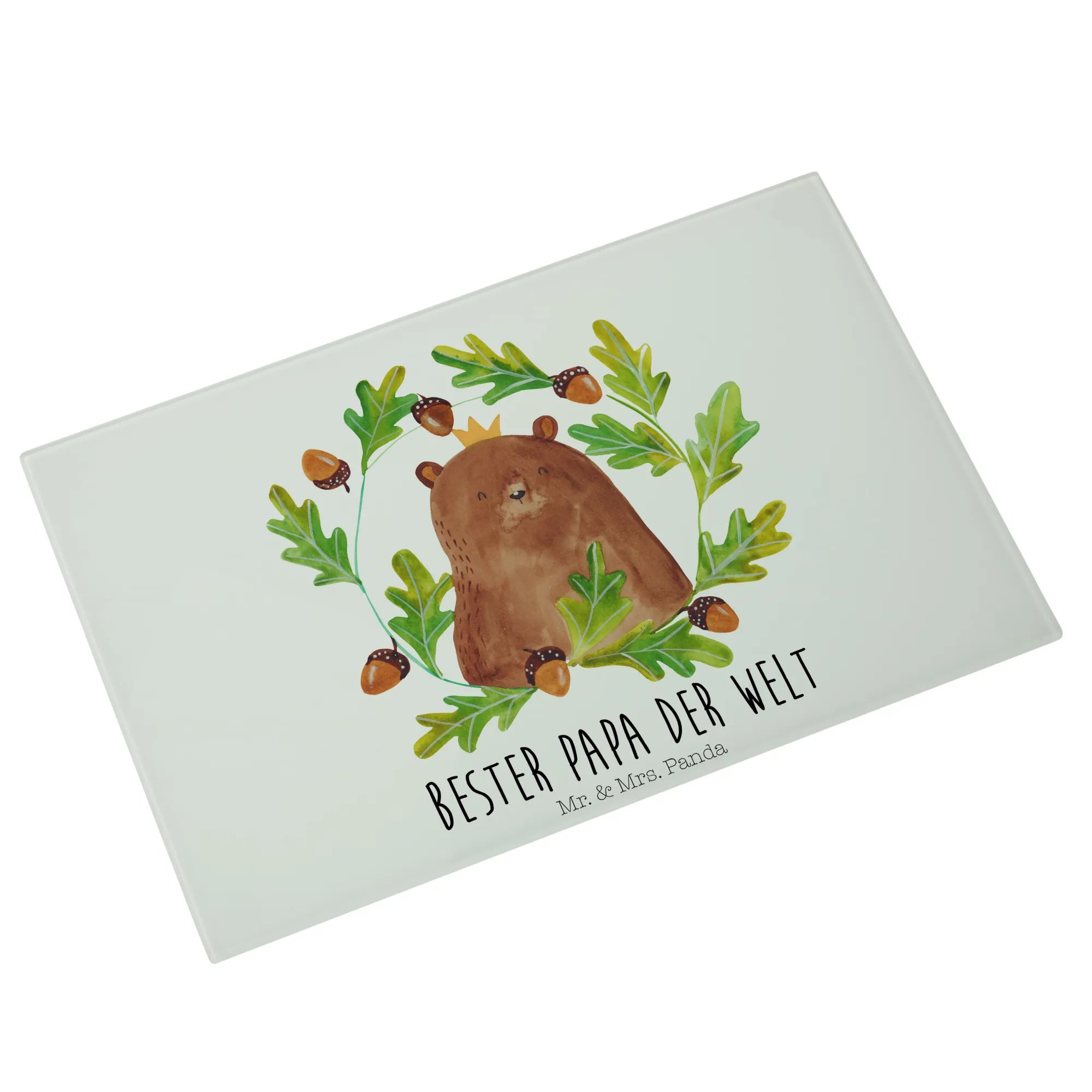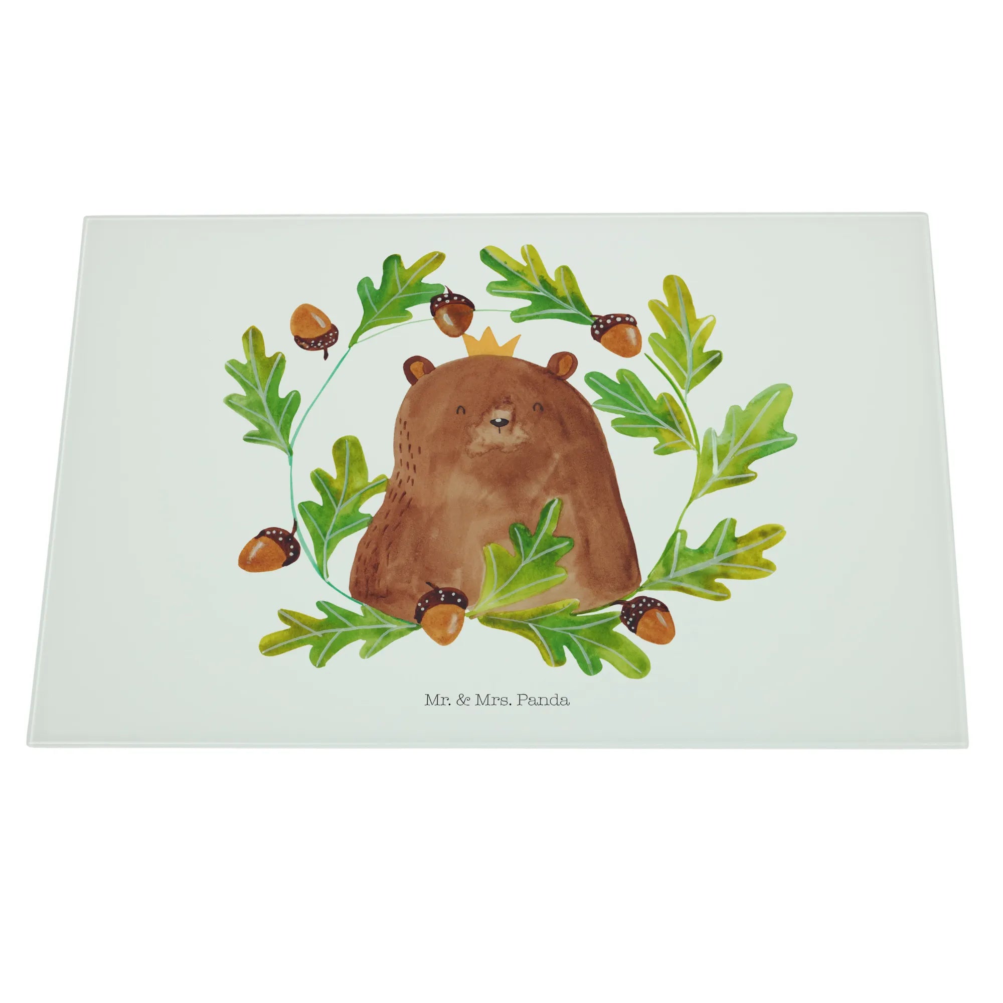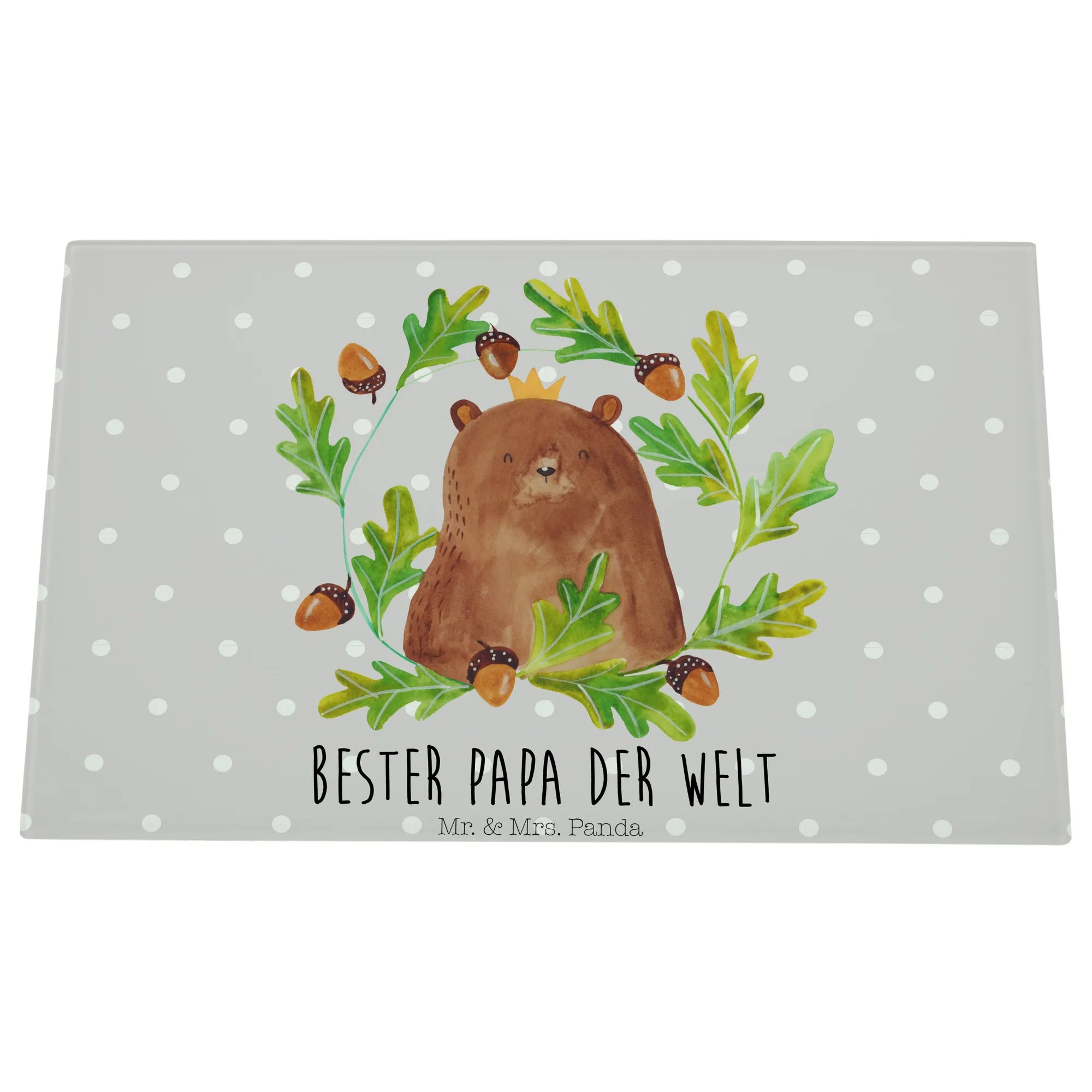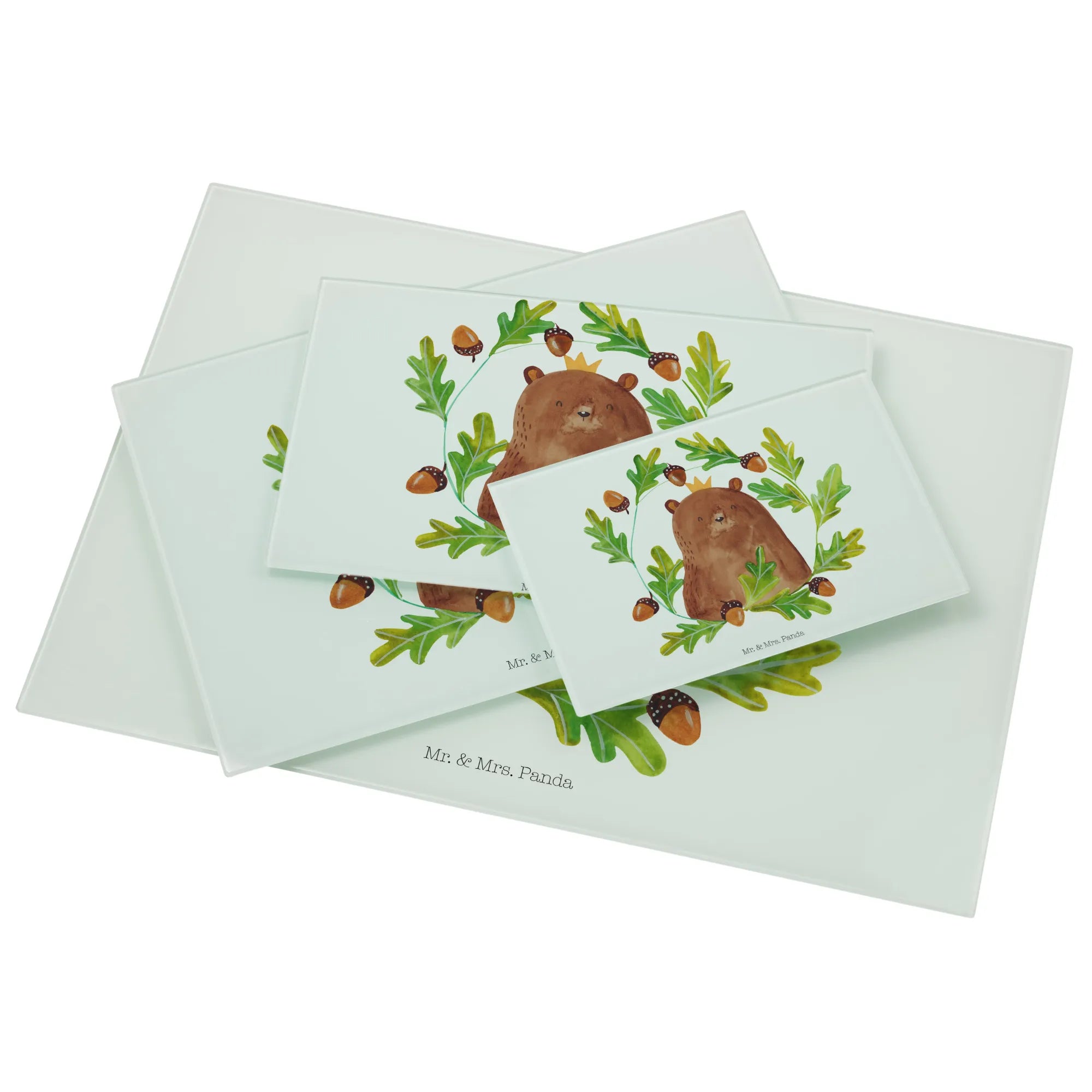 XL Szklana Deska do Krojenia Niedźwiedź król - Średnia szklana deska do krojenia - z napisem - Pastelowy szary